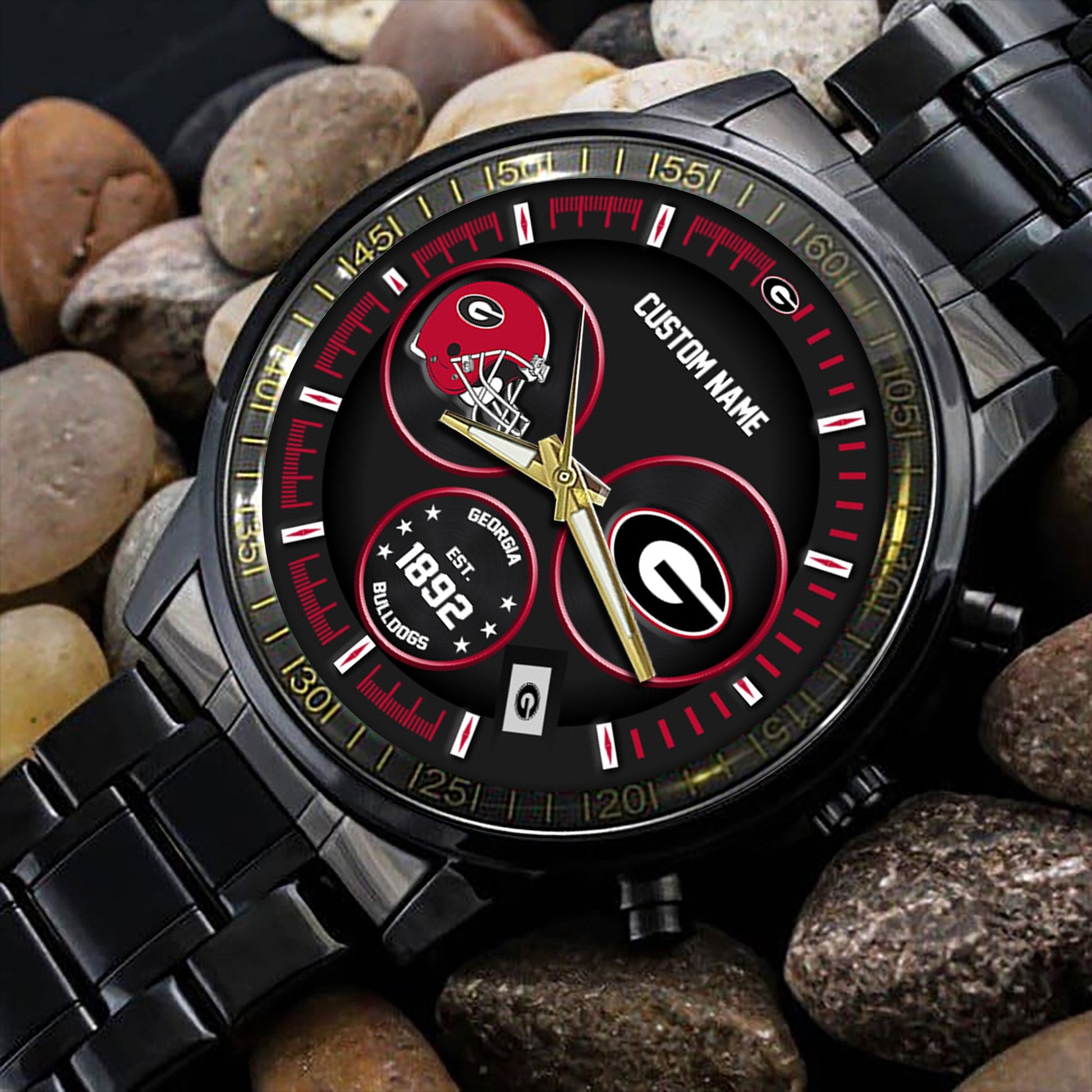 Georgia Bulldogs Black Stainless Steel Watch - Custom Name 58437