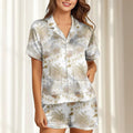 Gold Floral Satin Pajama Set, Elegant Gray Botanical Sleepwear, Women Loungewear, Vintage Matching Pjs, Birthday Gift For Her