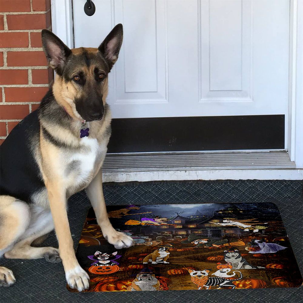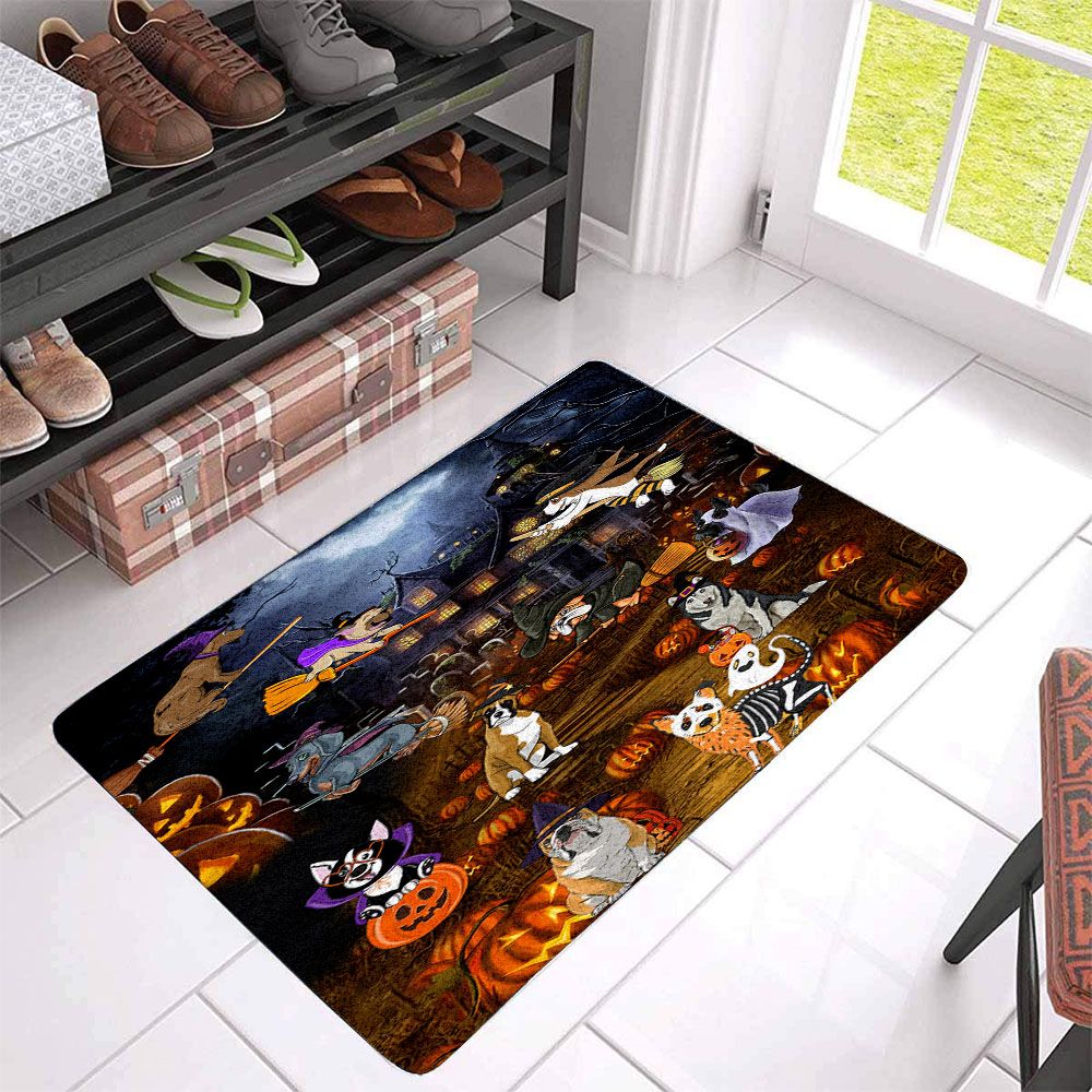 Halloween Dog Doormat - Cute Dog With Witch's Broom Scary Pattern Doormat - Presents For Dog Lovers