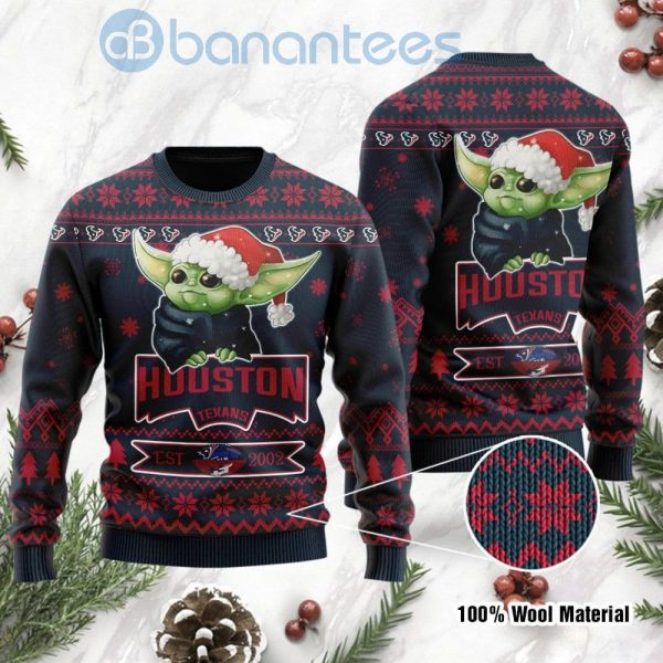 Houston Texans Cute Baby Yoda Grogu Ugly Christmas 3D Sweater