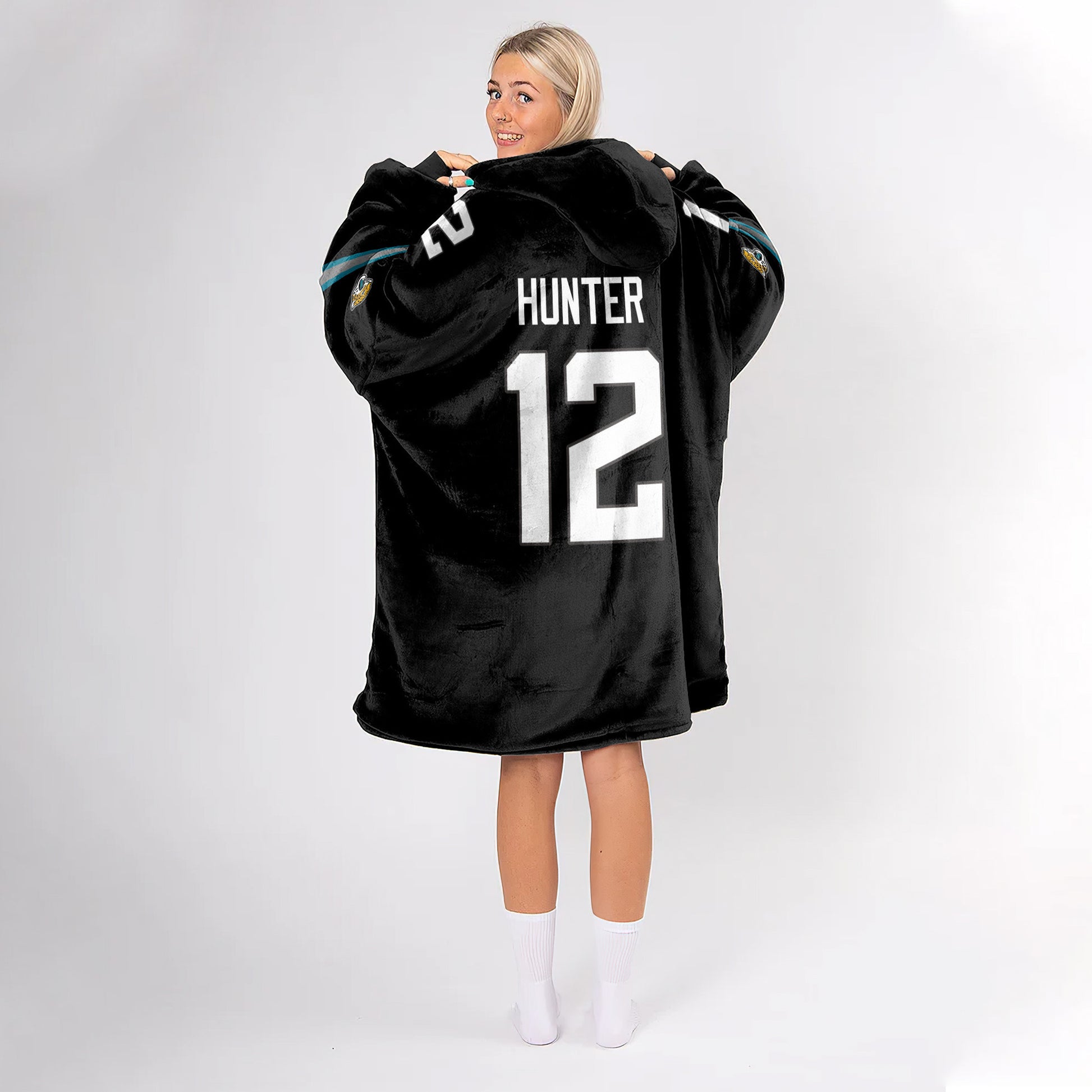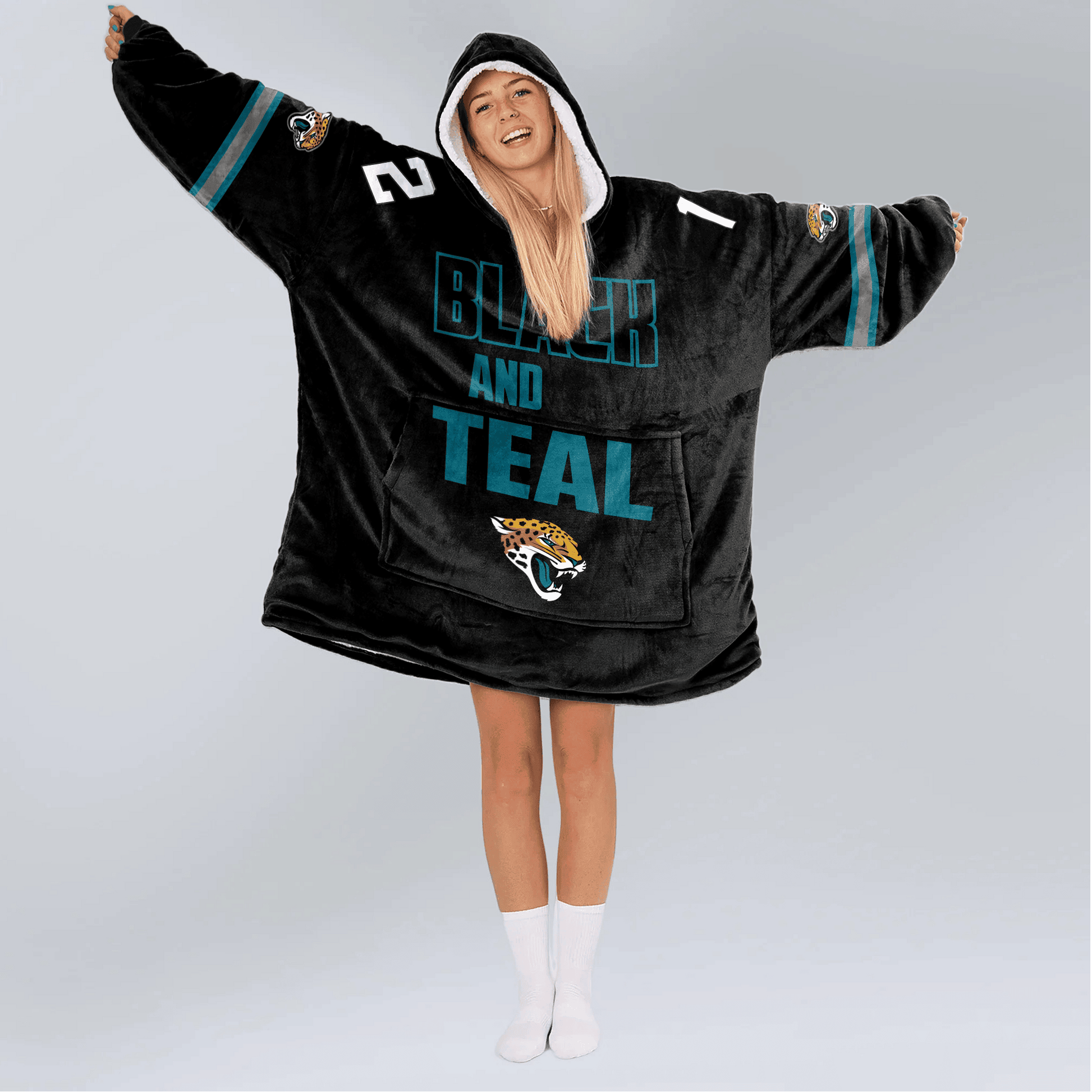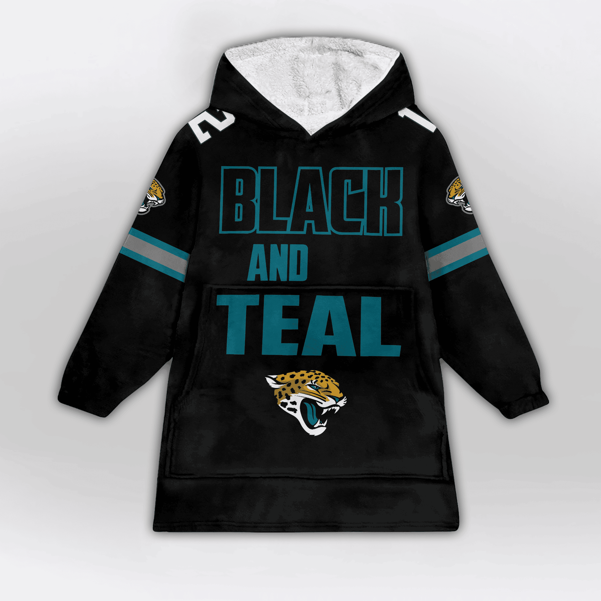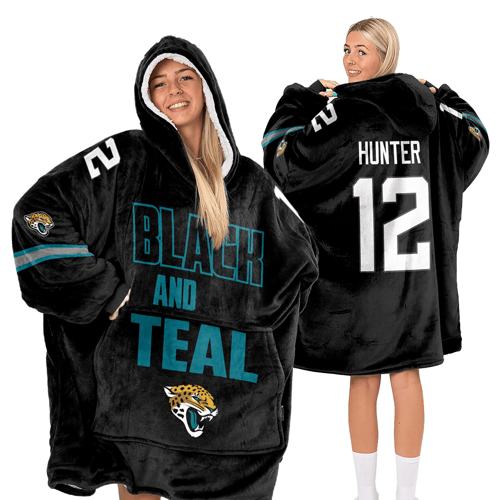 Adult Black And Teal 12 Jacksonville Football Unisex Blanket Hoodie