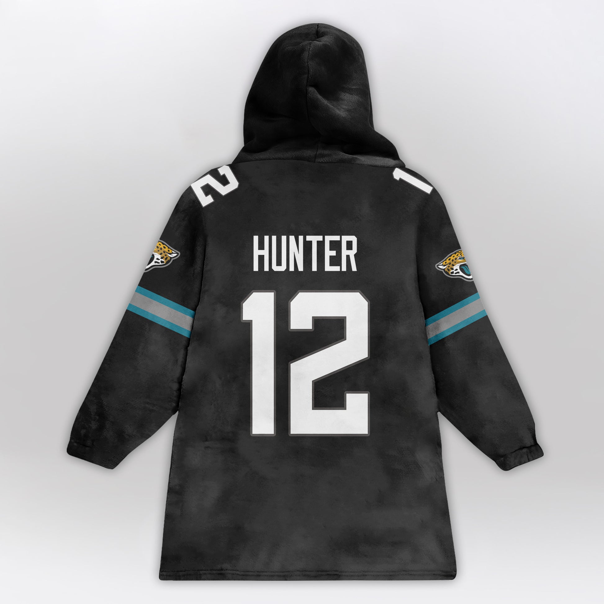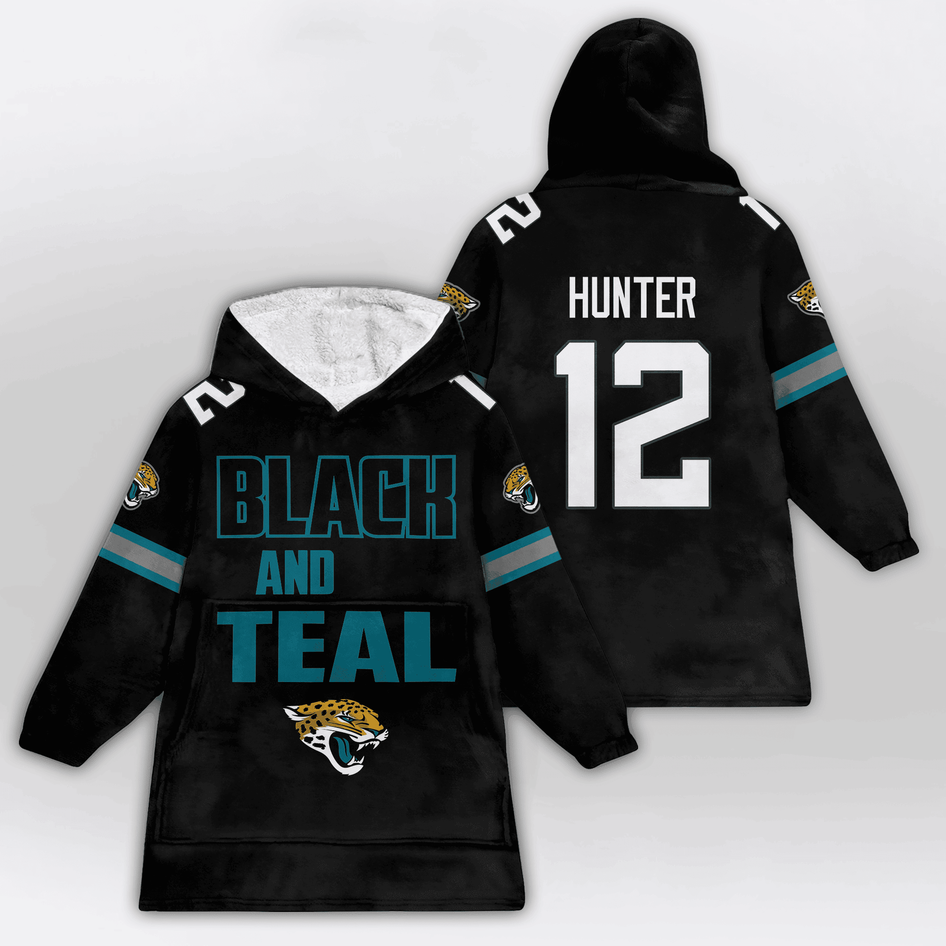 Kid Black And Teal 12 Jacksonville Football Unisex Blanket Hoodie