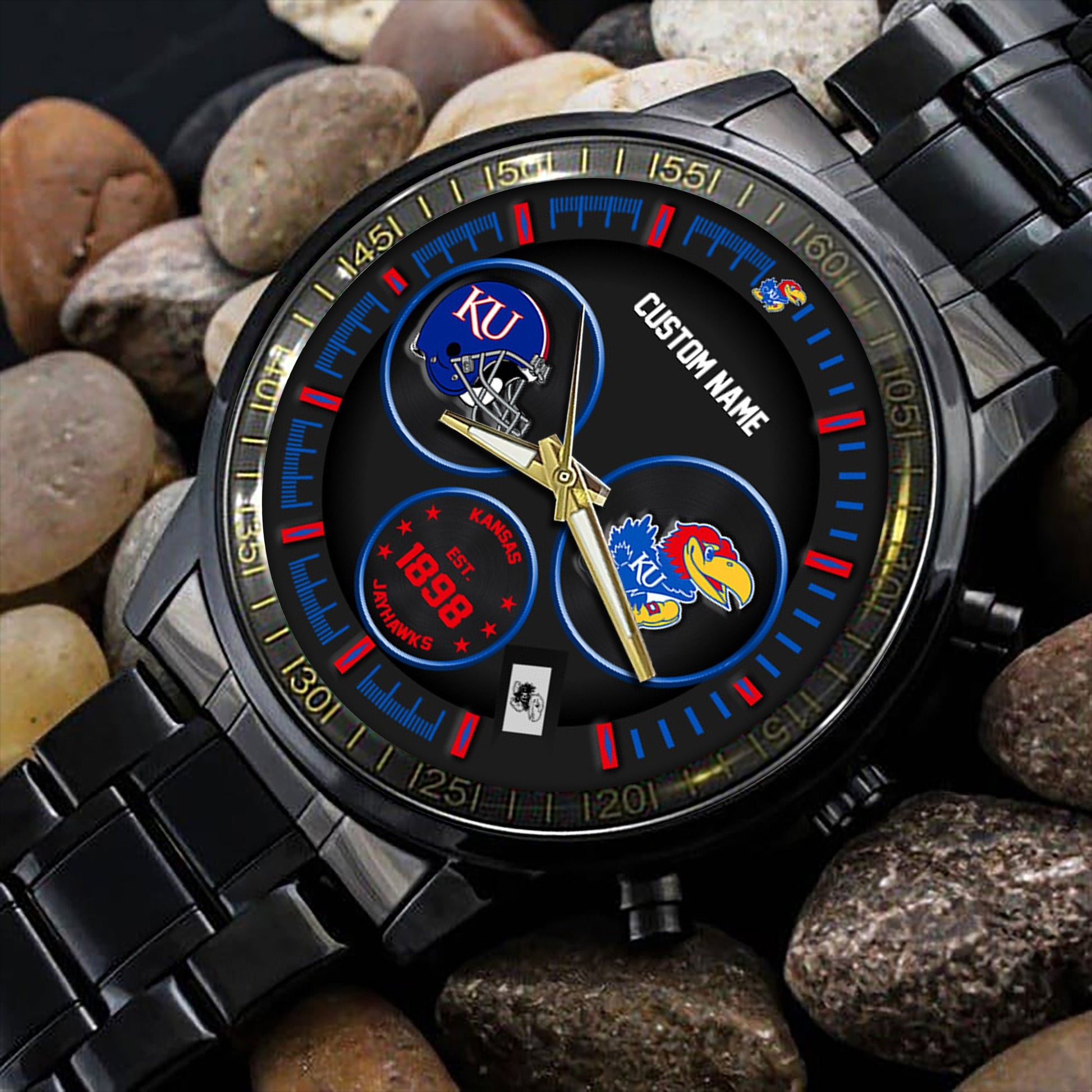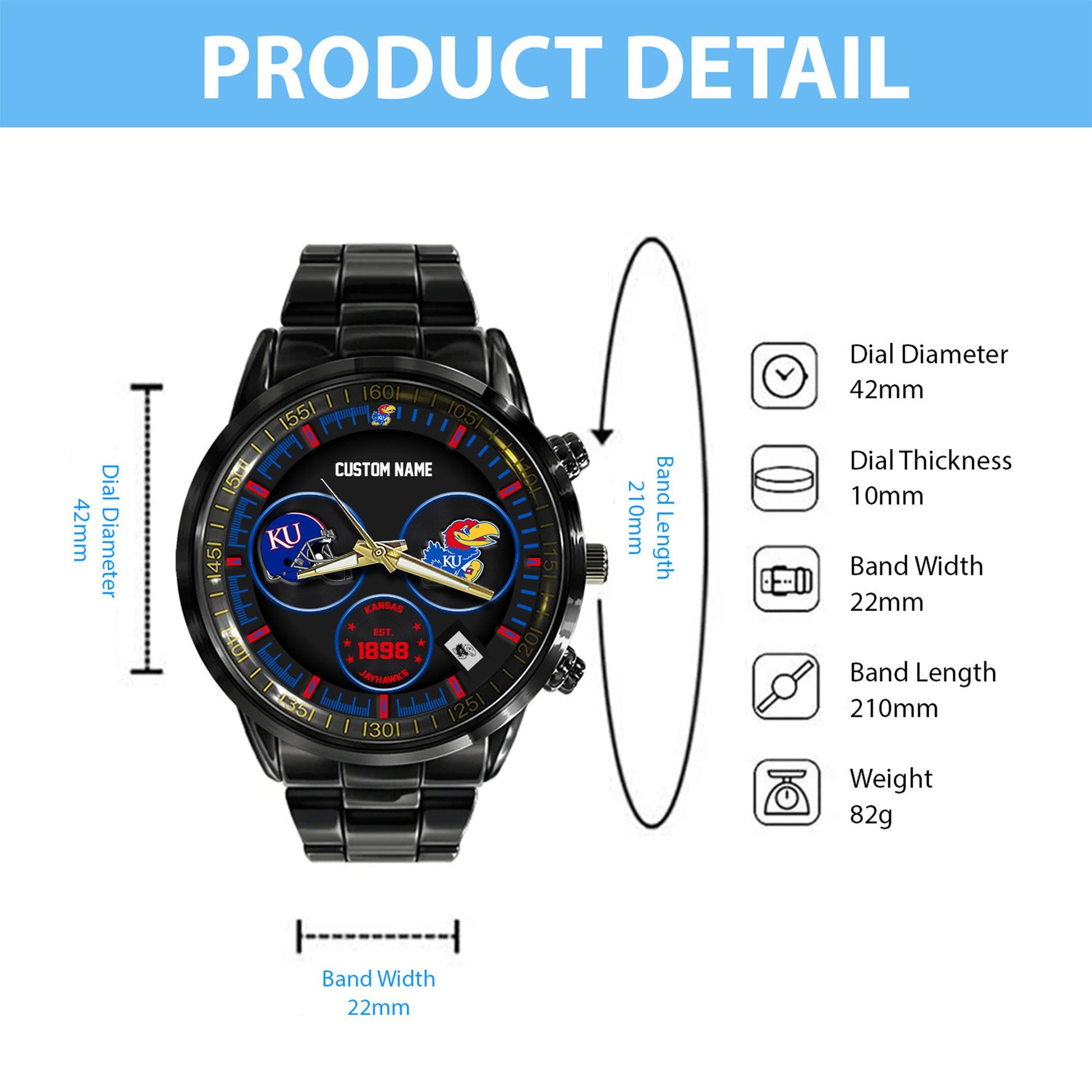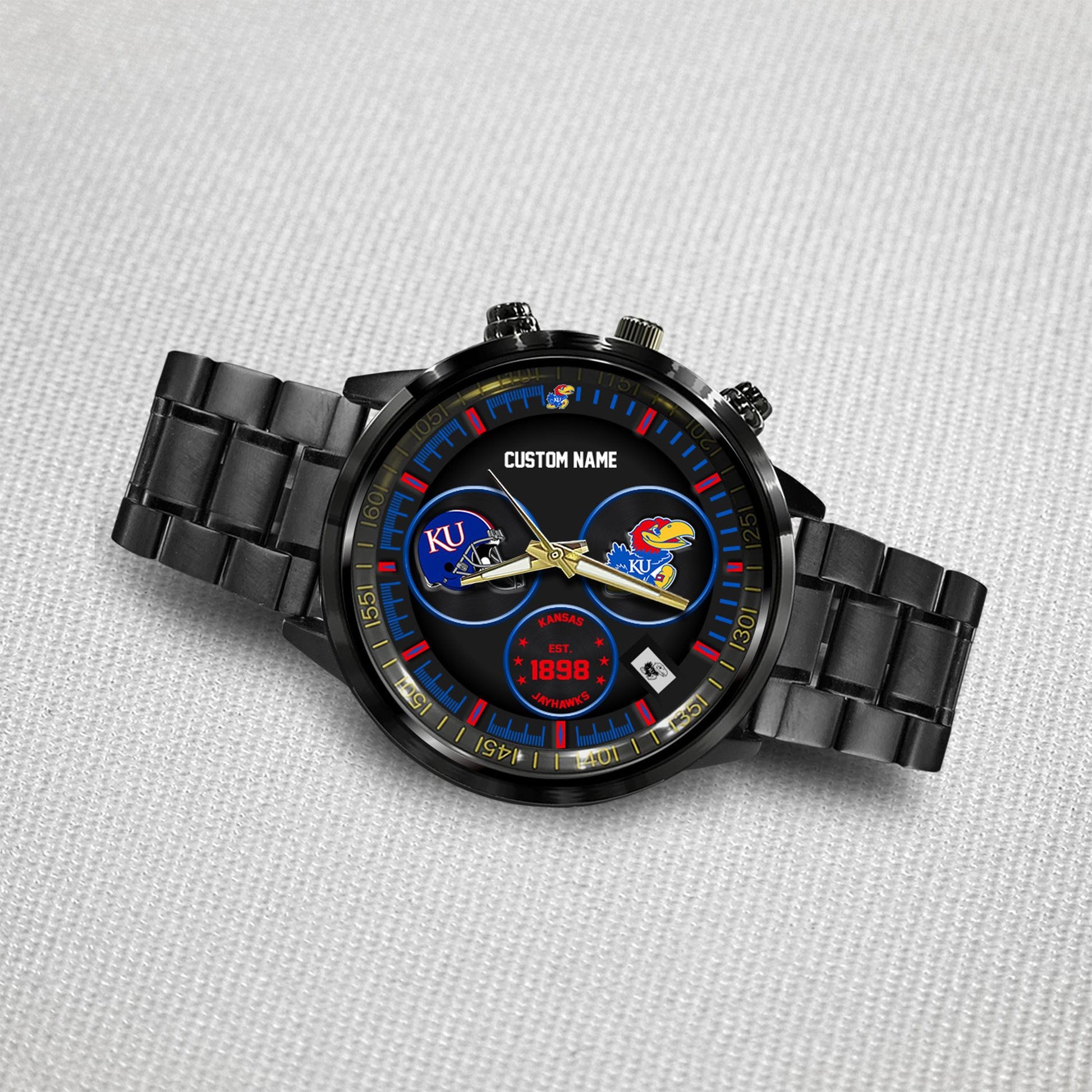 Kansas Jayhawks Black Stainless Steel Watch - Custom Name 58437