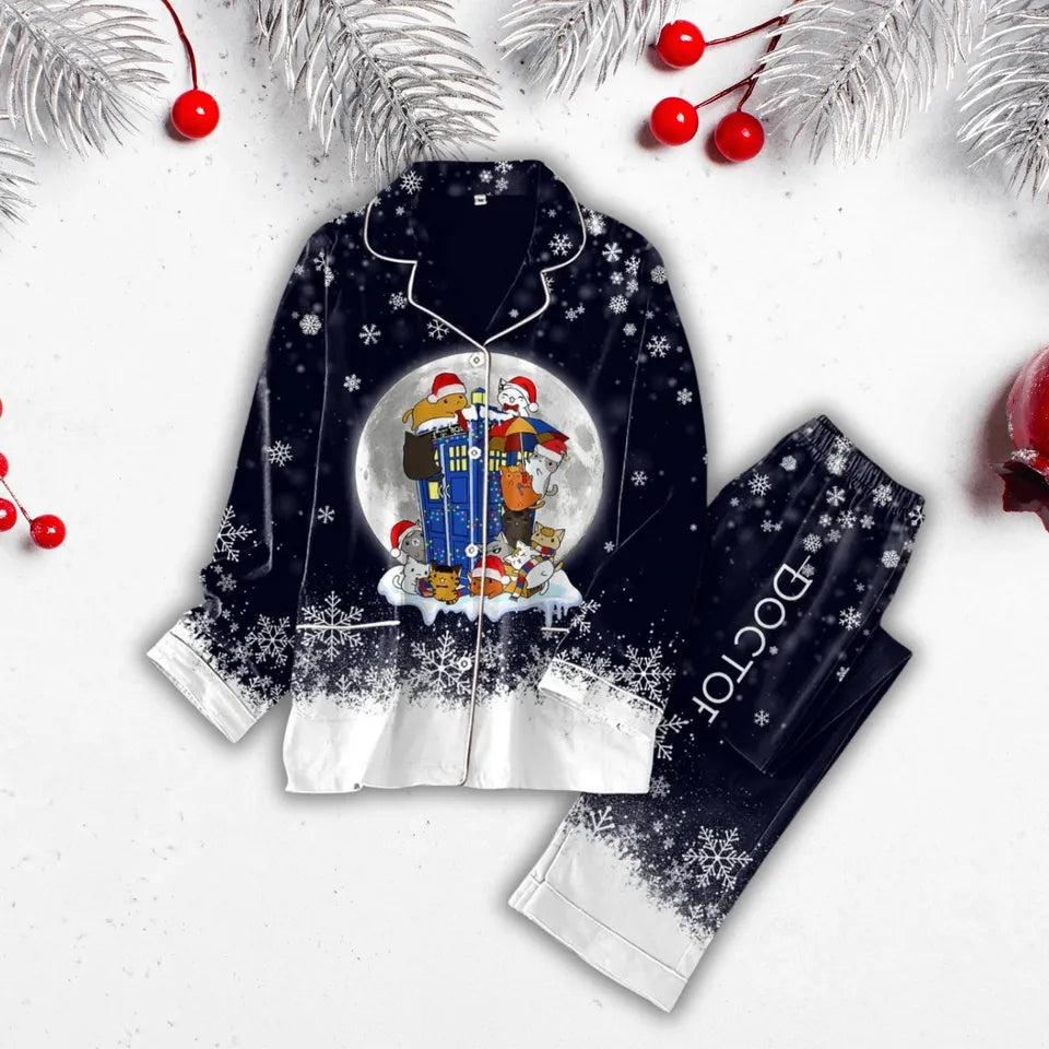 Kitten Who Dr Who Pajamas, Funny Kitten Tardis Box Pajamas, Doctor Who Christmas Pajamas Set, Cat Police Box Movie Pajamas, Women Pjs