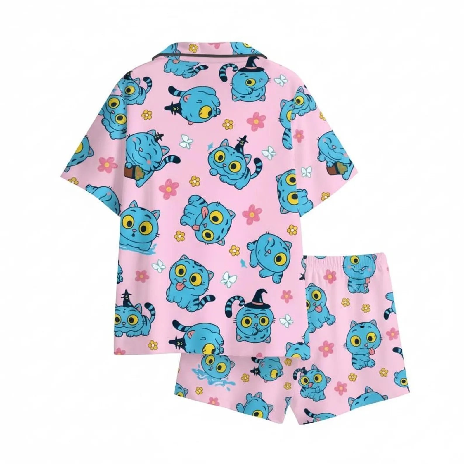 Kpop Demon Hunters Tiger Satin Pajamas Set, Derpy the Tiger Demon Hunter, Huntrix Pajamas, Demon Hunter Merch Pajamas - Gift for Fans