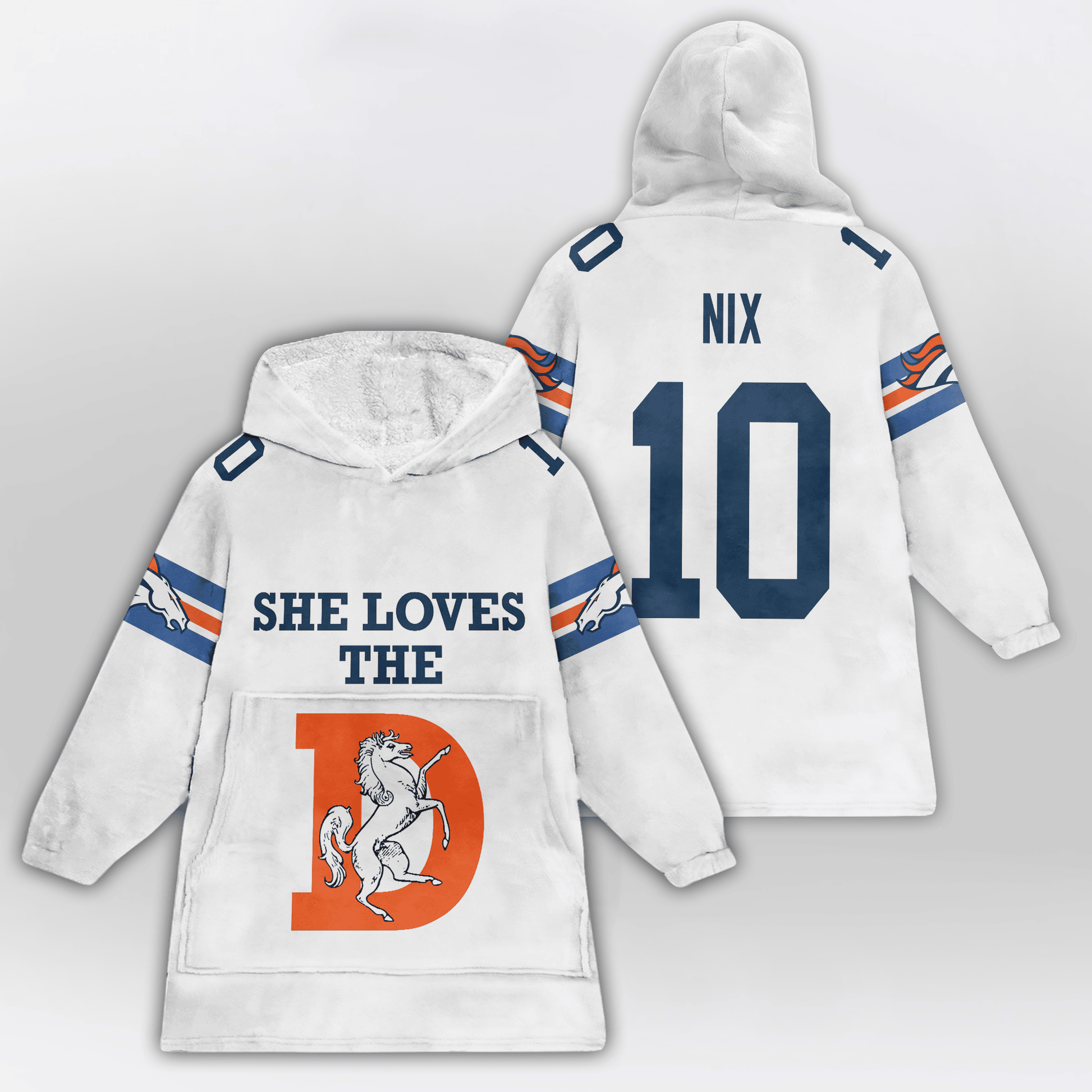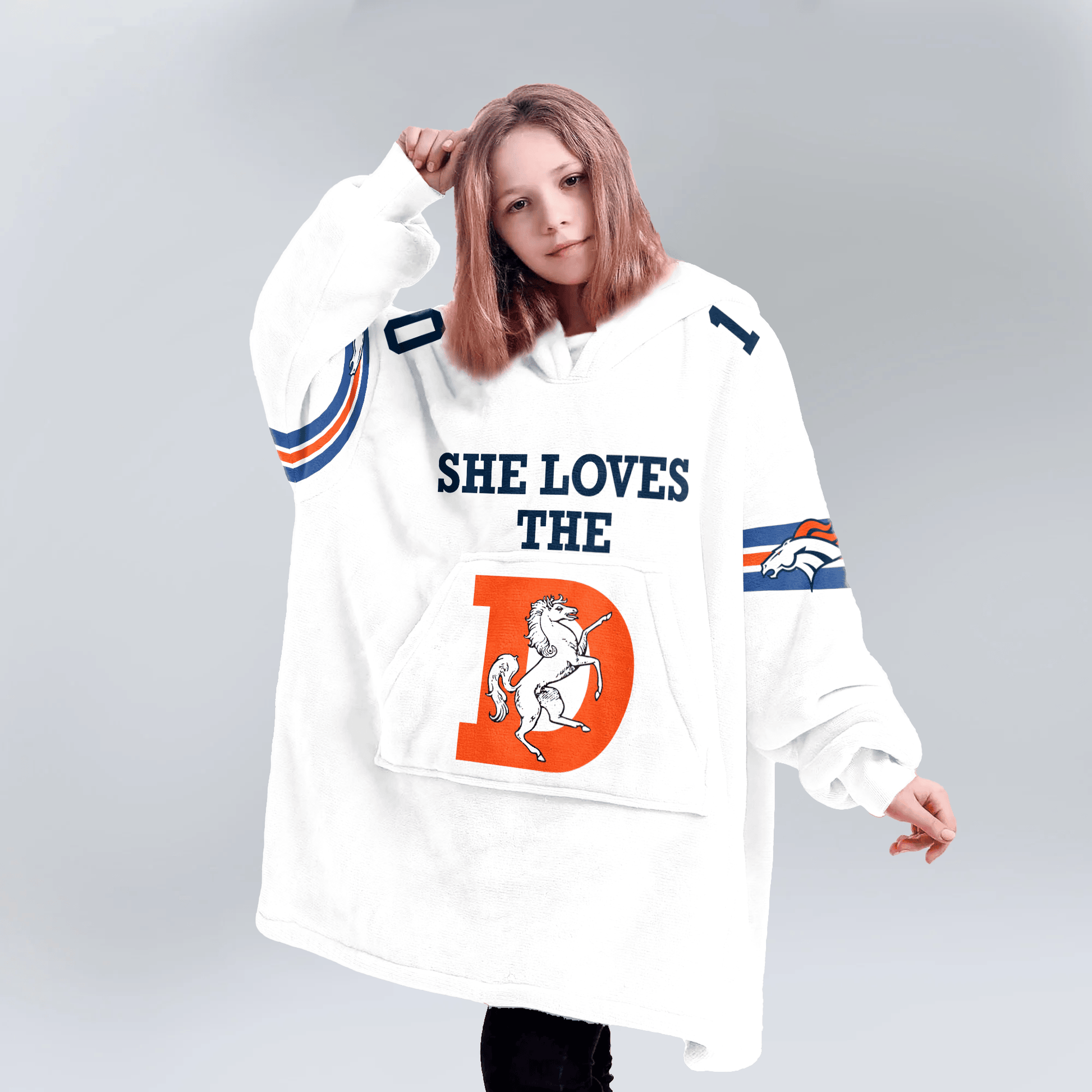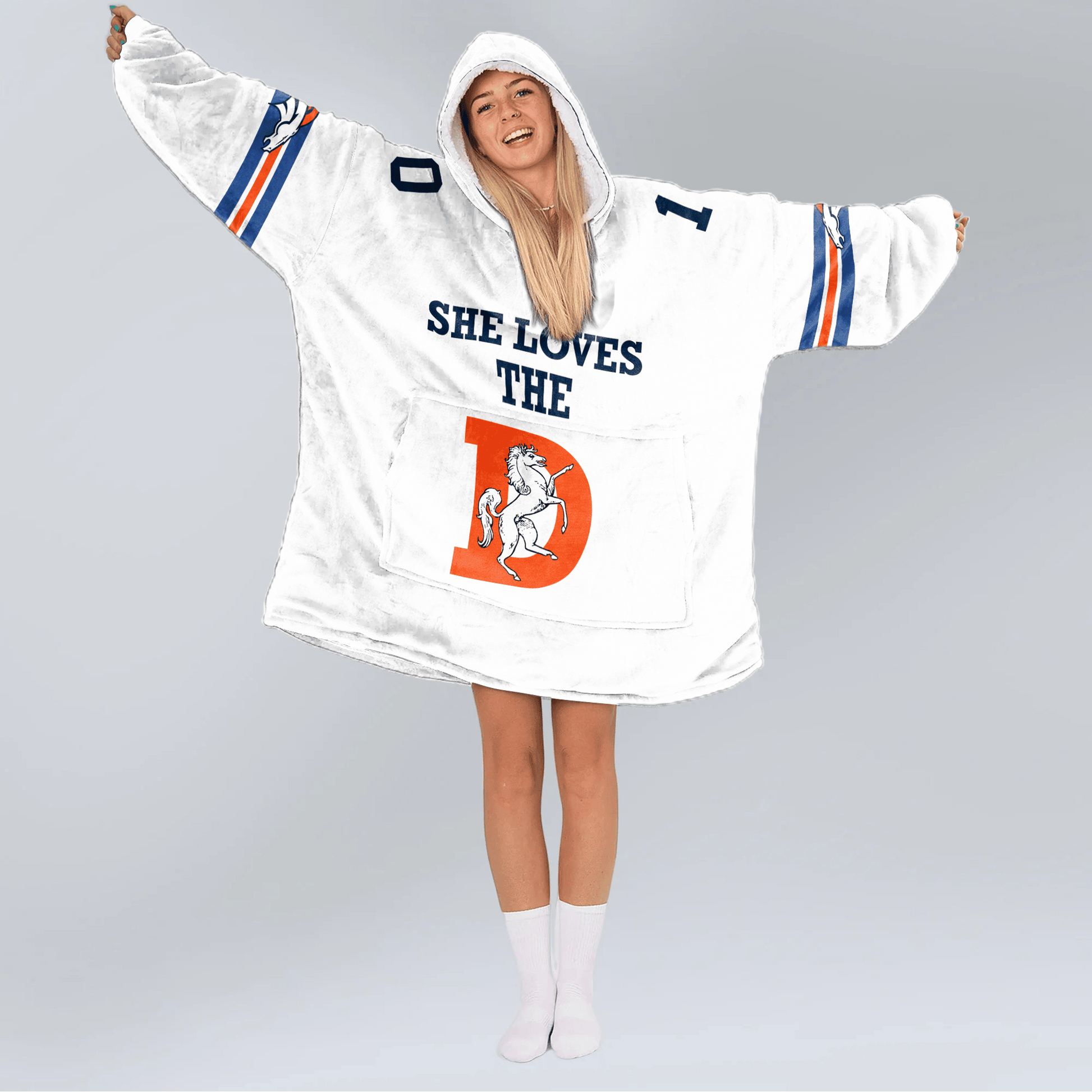 She Loves The D Denver Football Unisex Blanket Hoodie