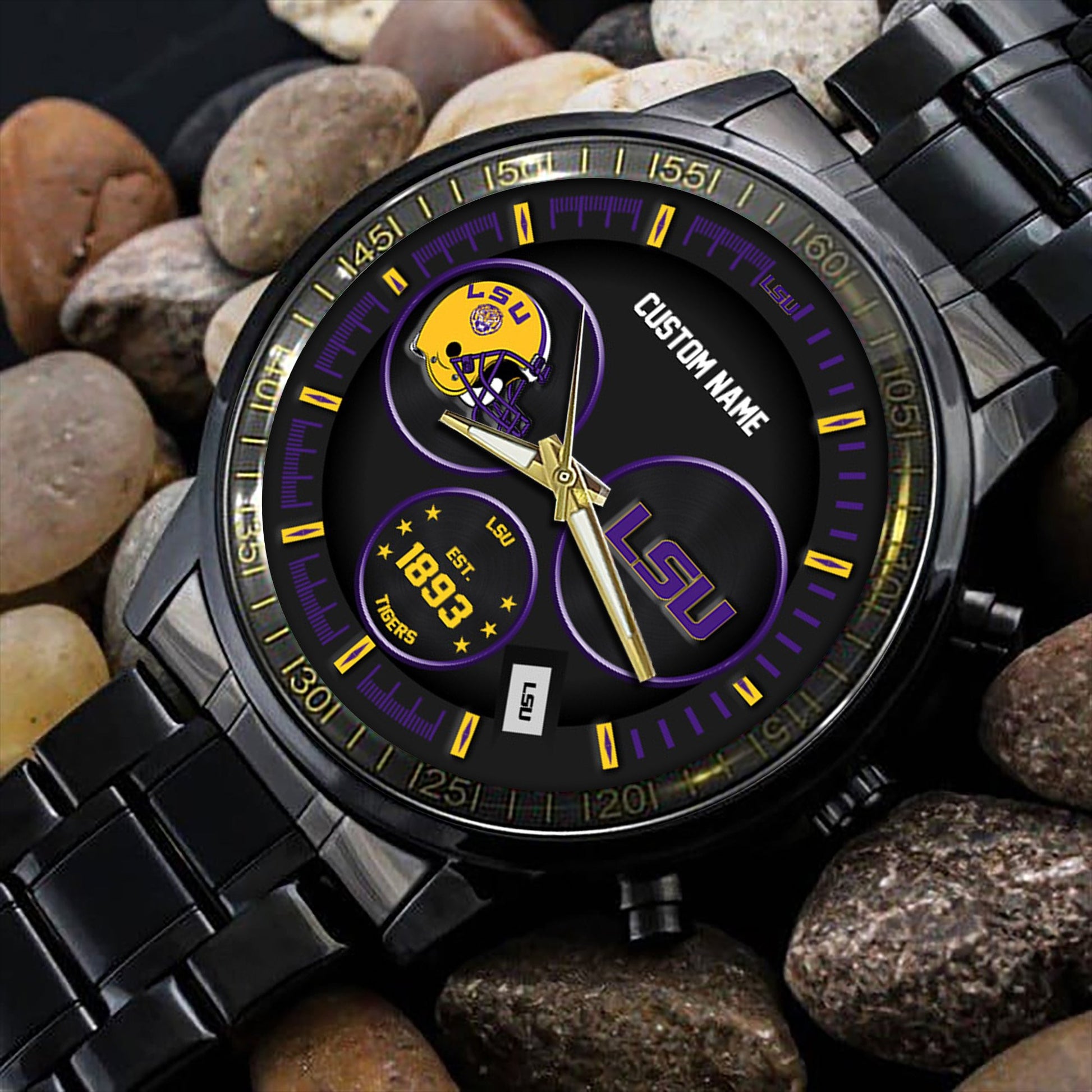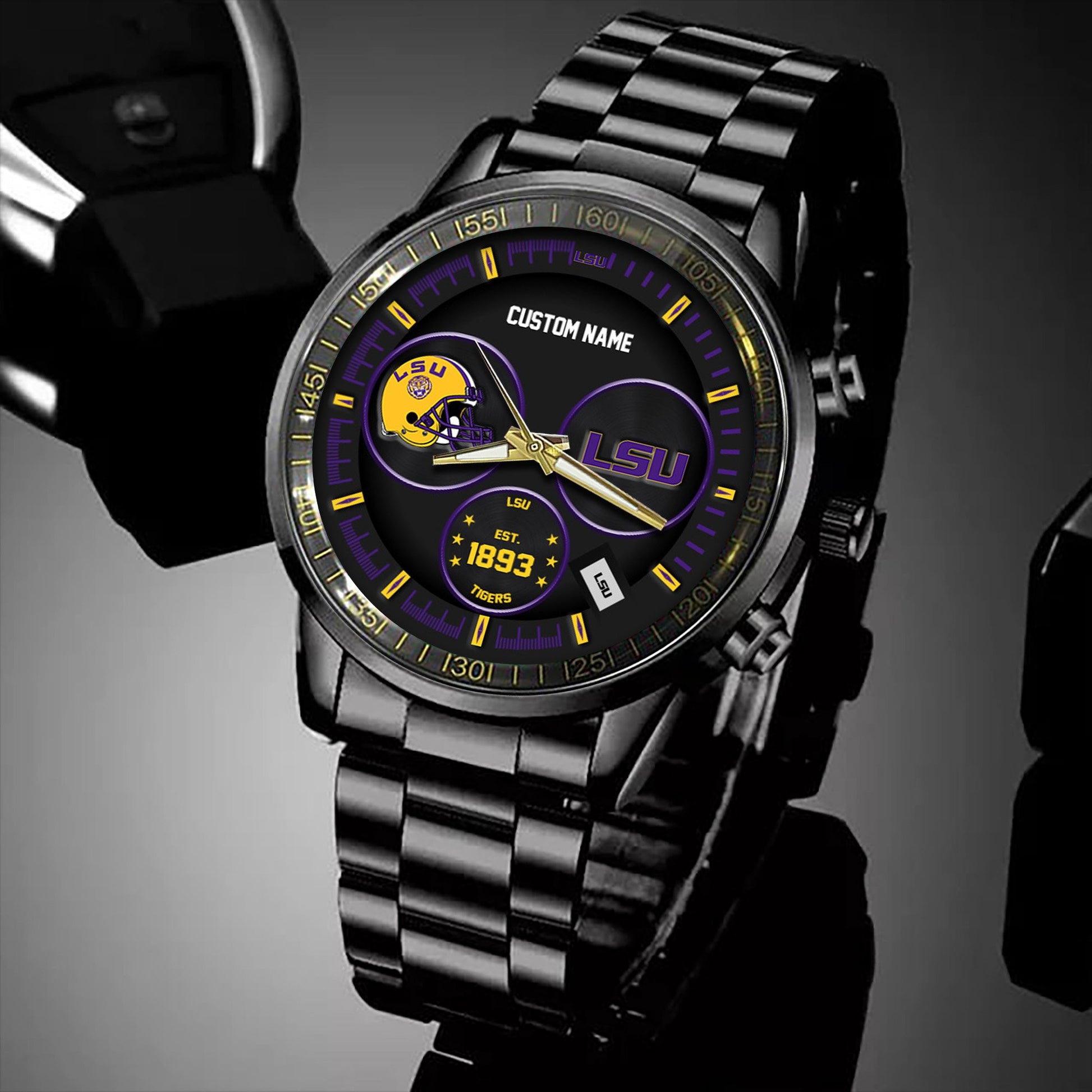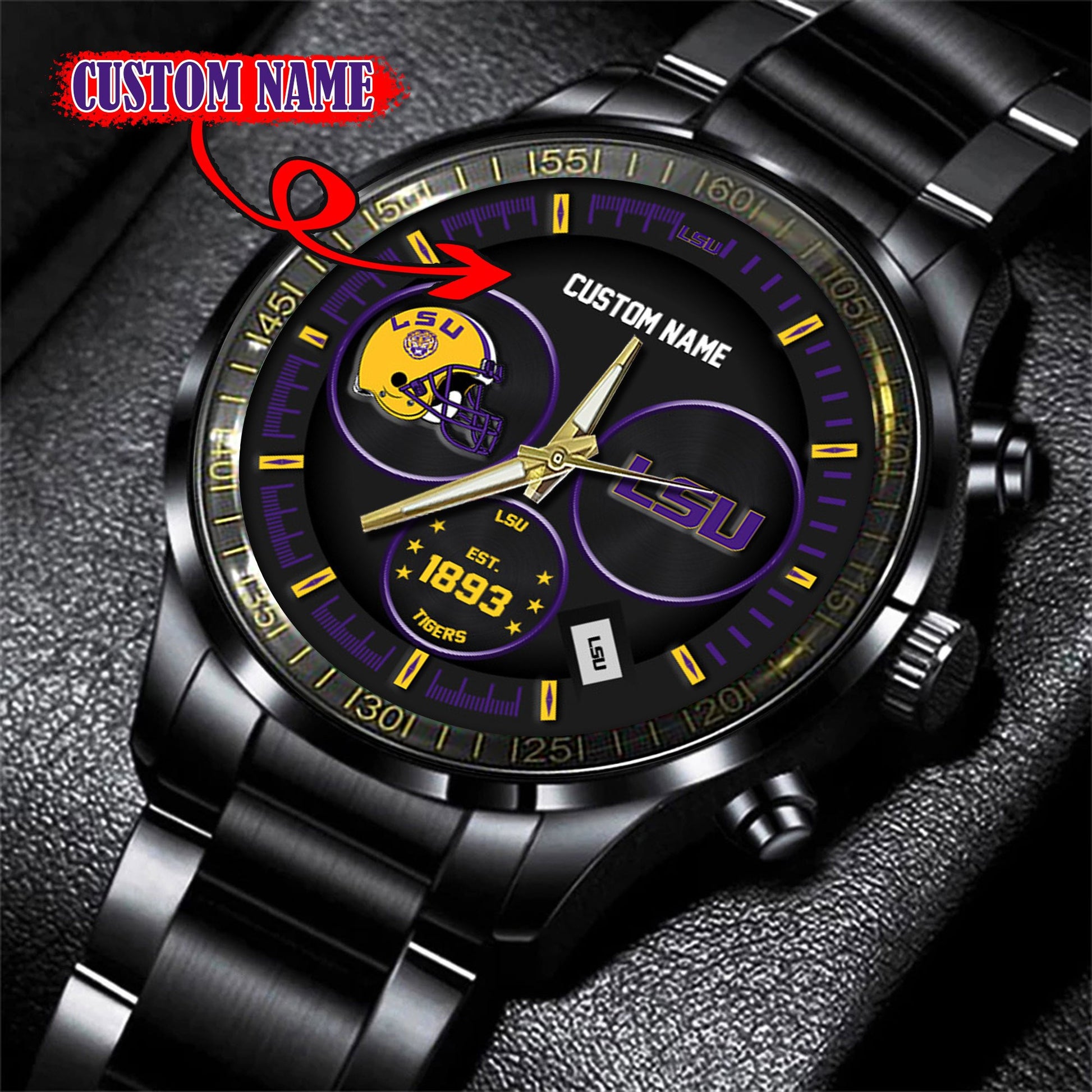 LSU TIGERS Black Stainless Steel Watch - Custom Name 58437