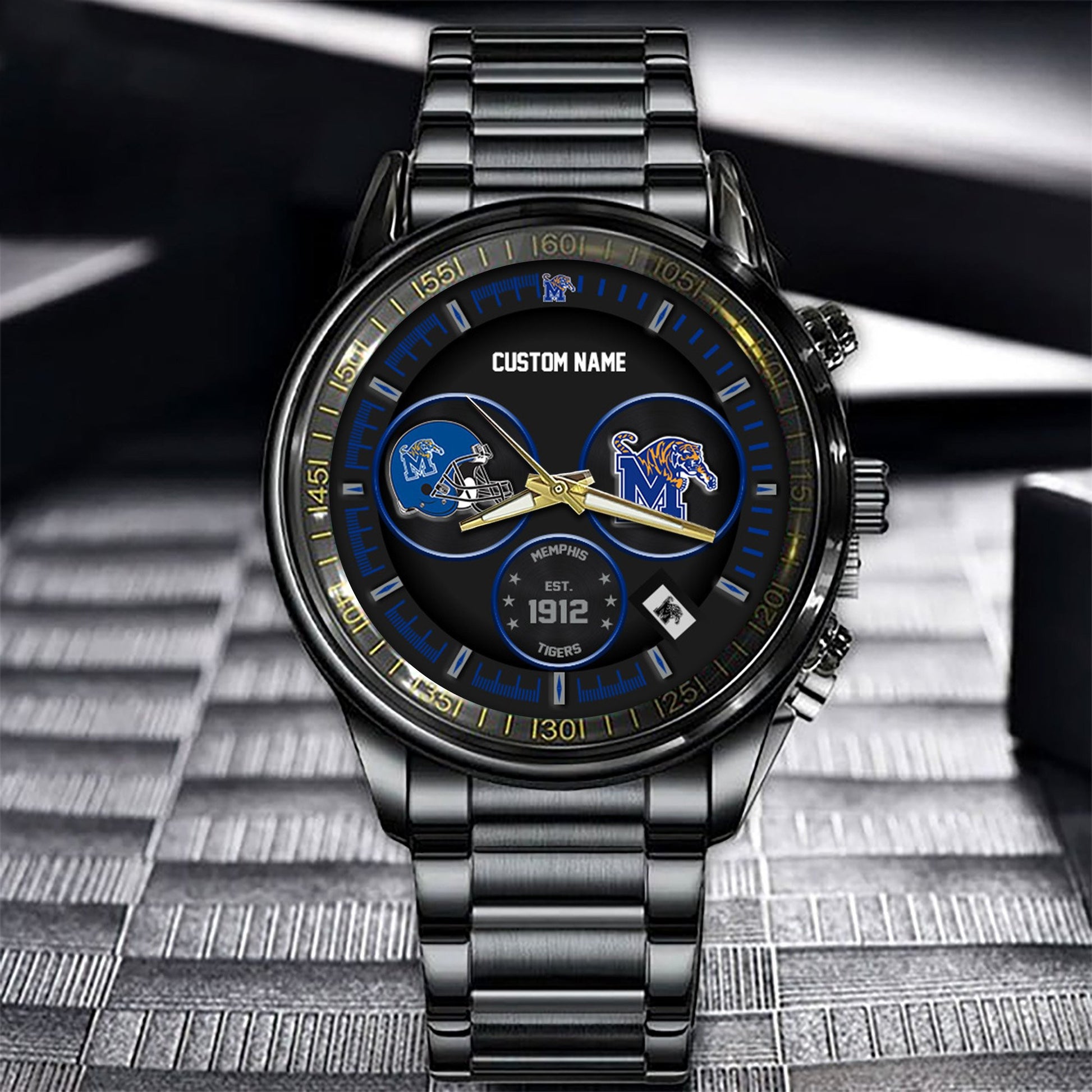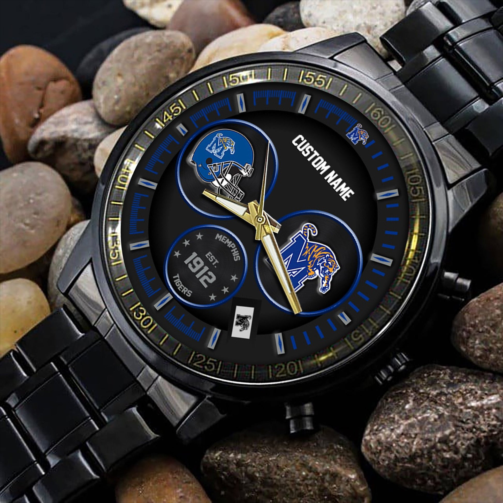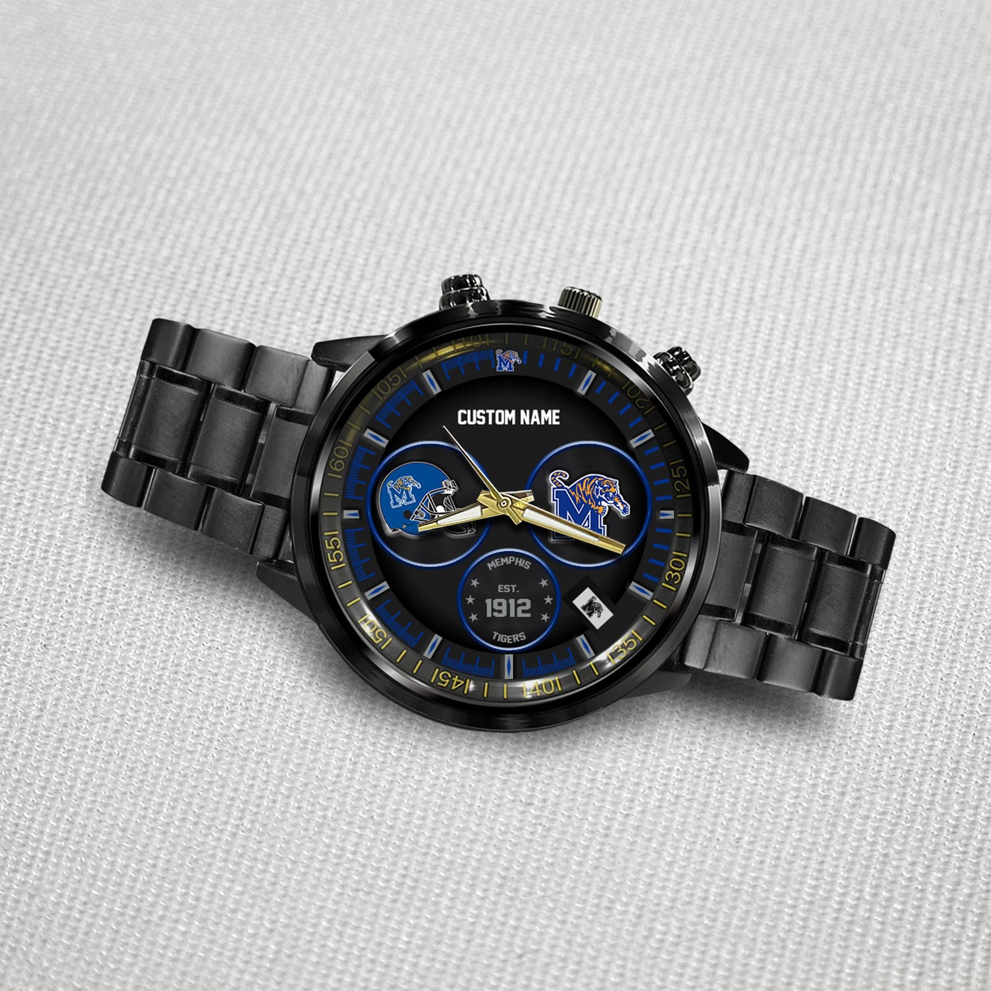 Memphis Tigers Black Stainless Steel Watch - Custom Name 58437