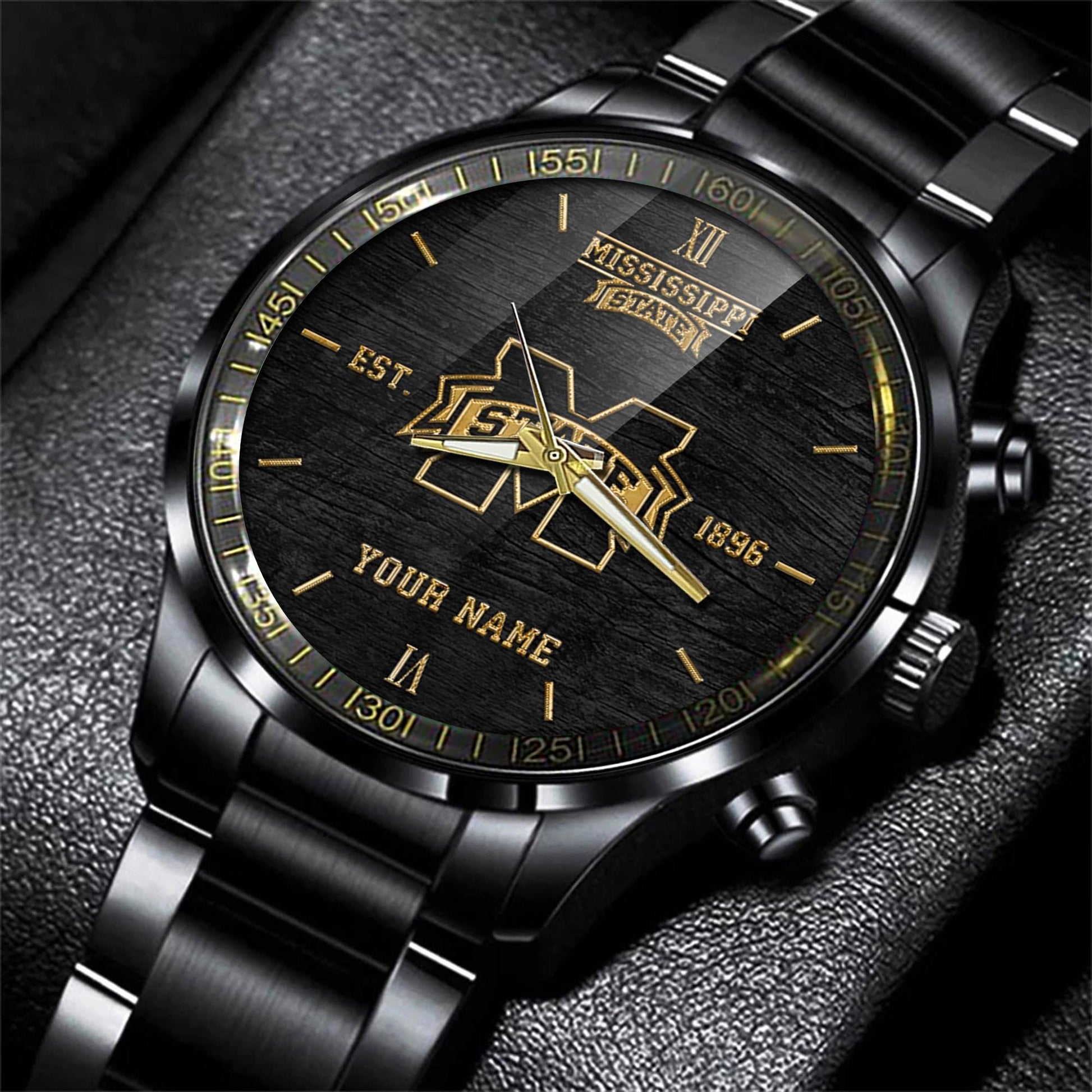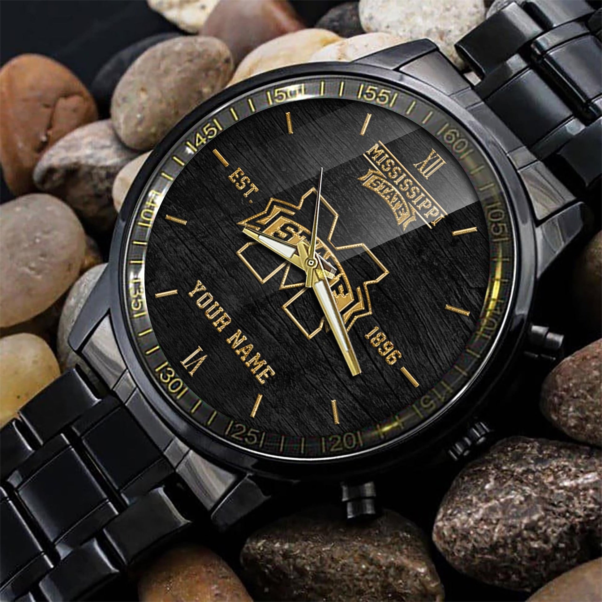 Mississippi State Bulldogs Black Fashion Watch Custom Your Name And Year, Sport Watch, Sport Gifts For Football Fans ETRG