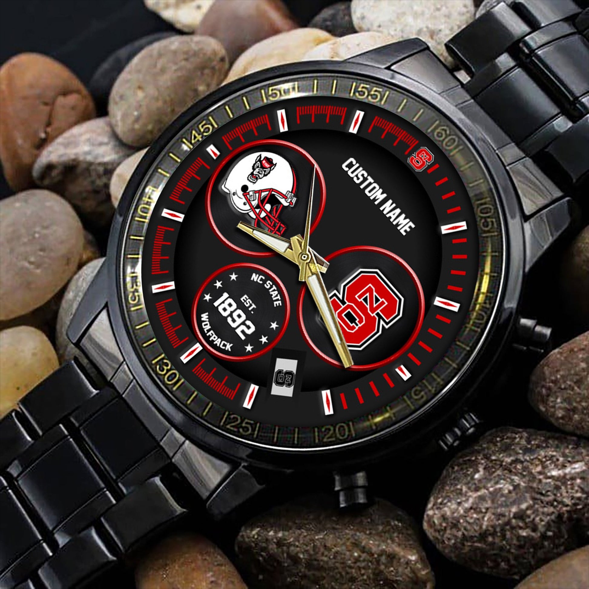 NC State Wolfpack Black Stainless Steel Watch - Custom Name 58437