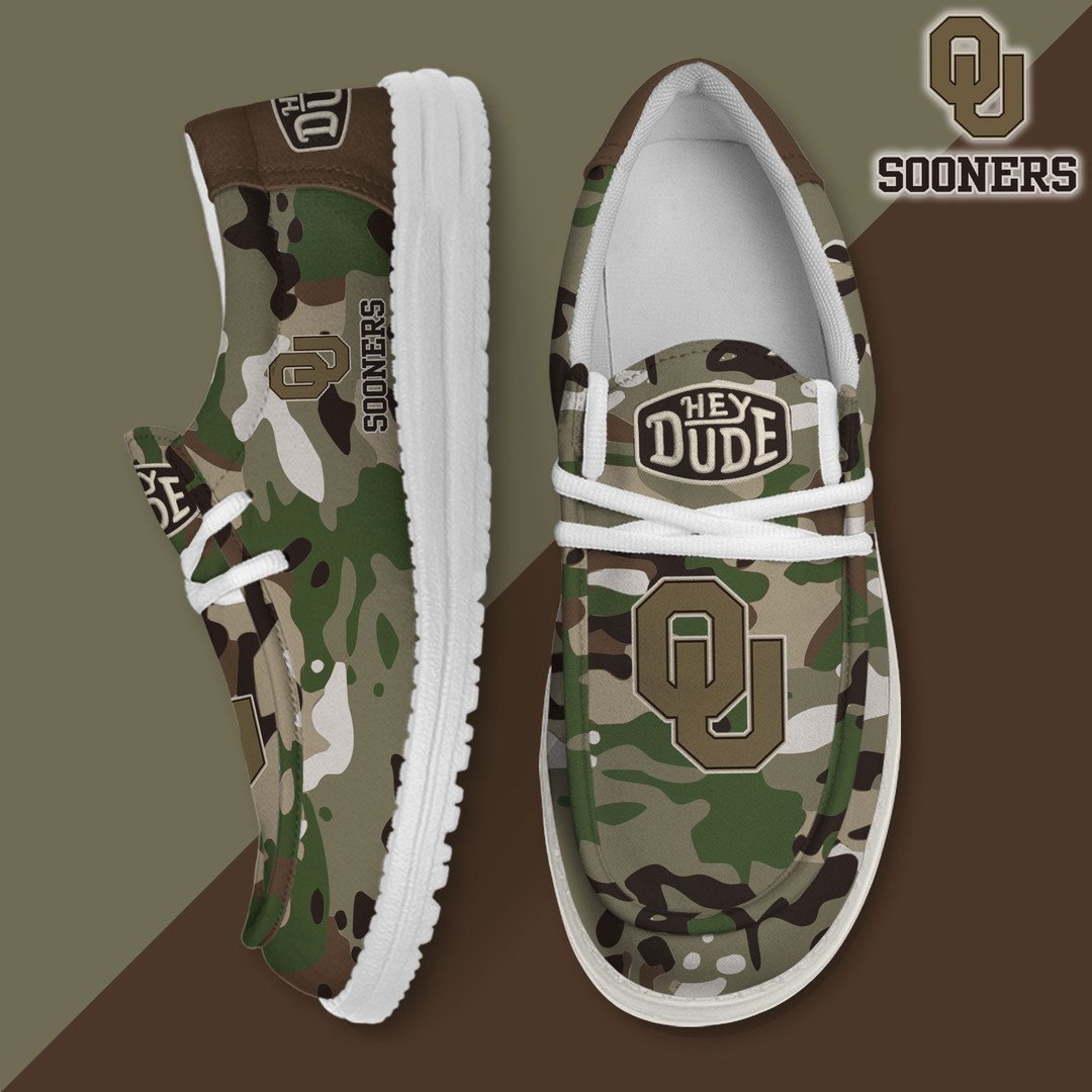 NCAA 10 Oklahoma Sooners Camouflage Football Hey Dude Canvas Loafer Shoes