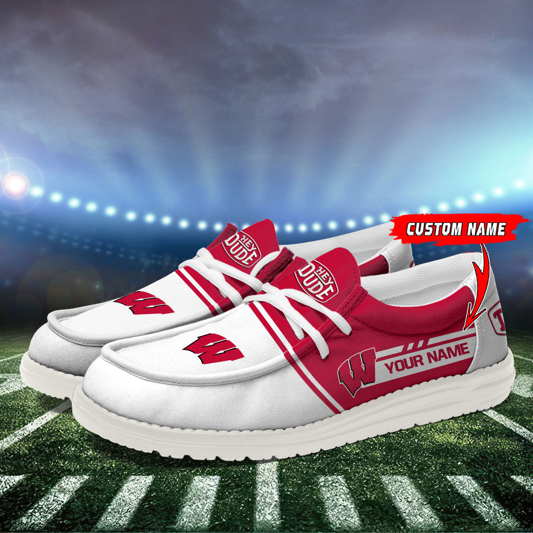 NCAA 37 Wisconsin Badgers Football Hey Dude Canvas Loafer Shoes-Custom Name