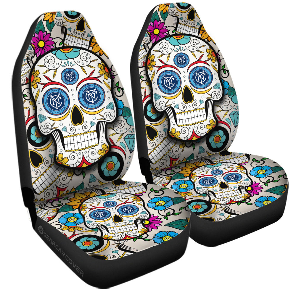 New York City FC Car Seat Covers Custom Sugar Skull Car Accessories