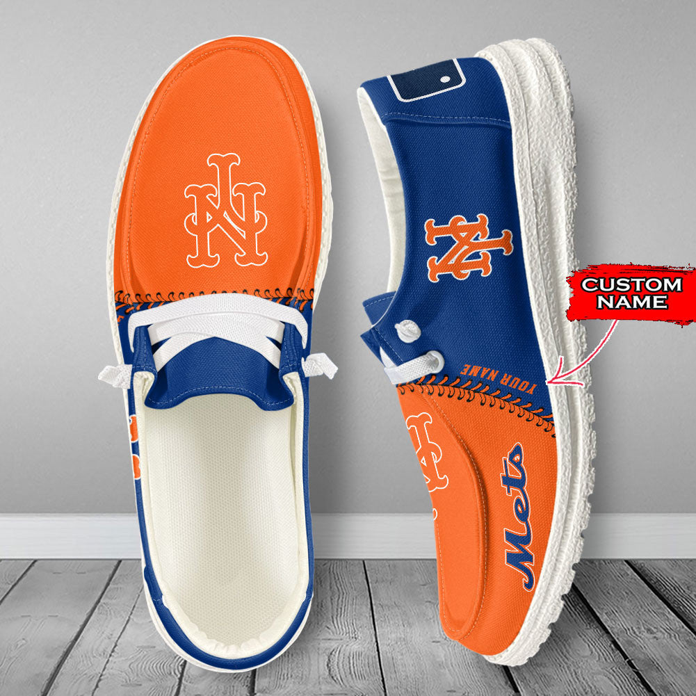 Nordmerch New York Mets MLB Personalized Hey Dude Sports Shoes – Custom Name Design Perfect Gift For Fans - NordMerch - MCK Sporting Sh