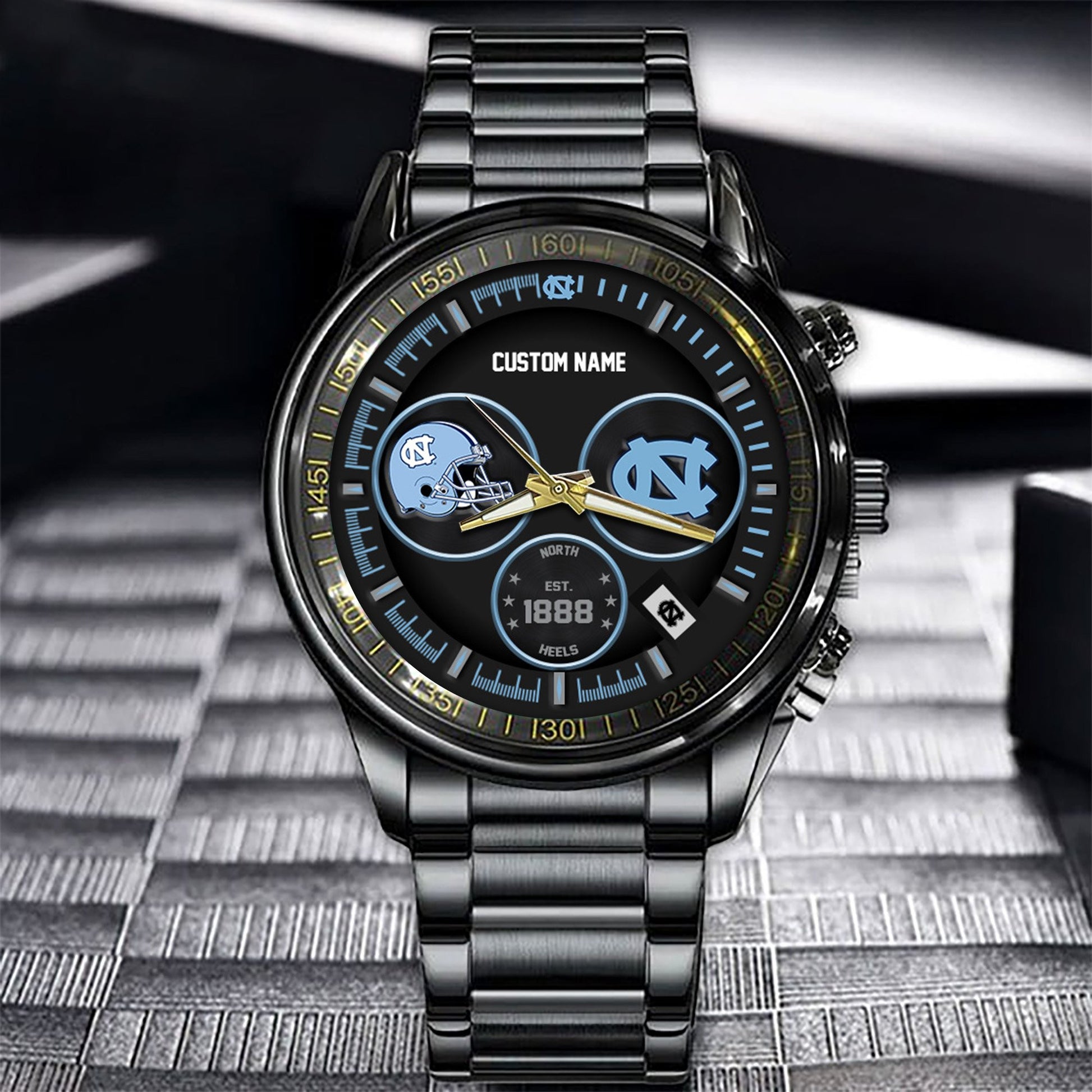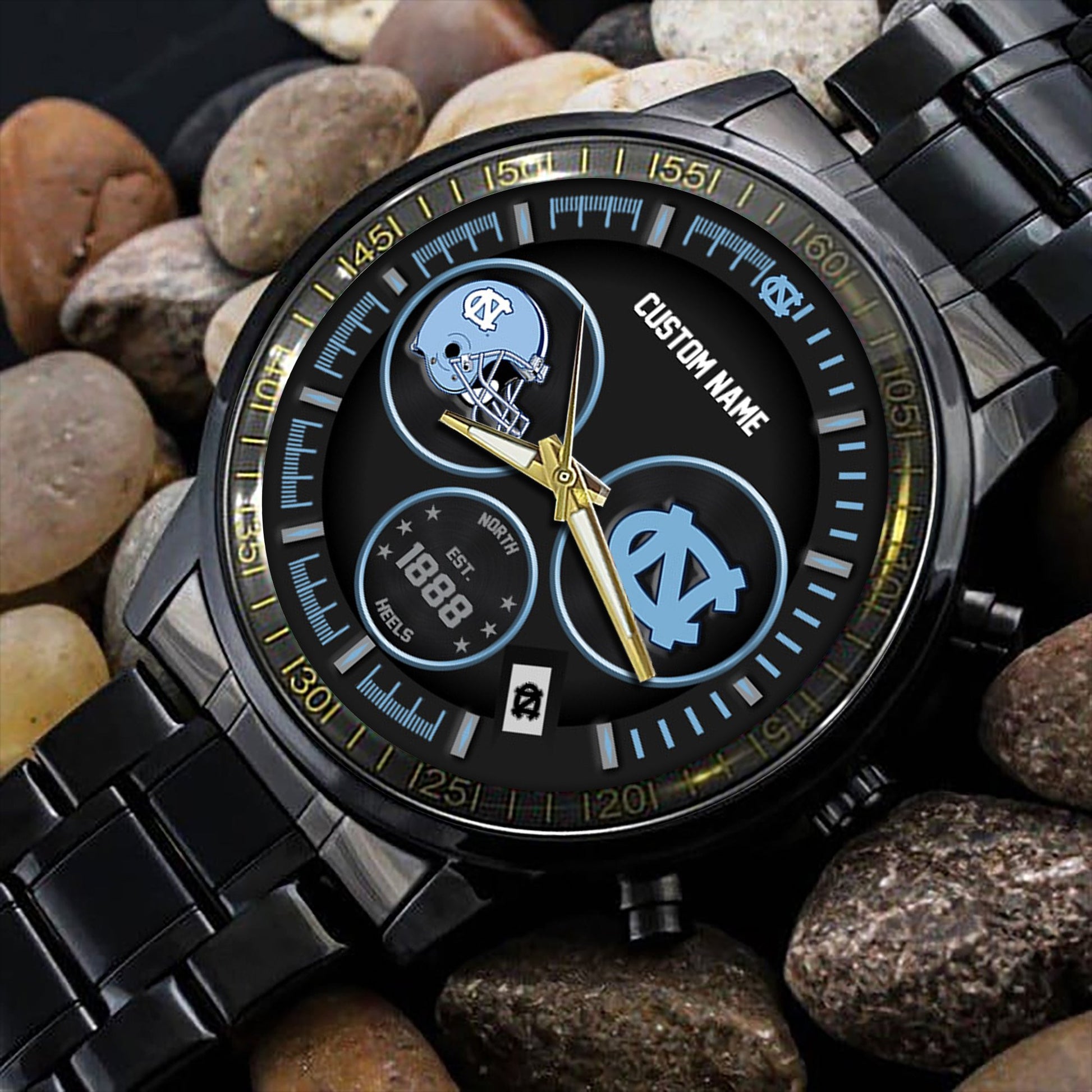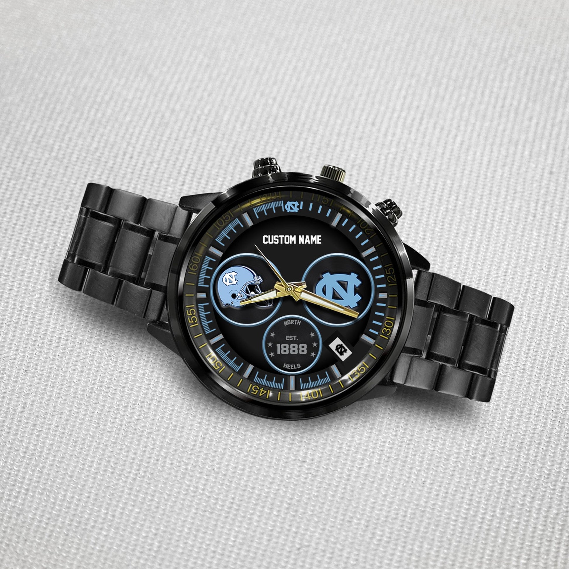 North Carolina Tar Heels Black Stainless Steel Watch - Custom Name 58437