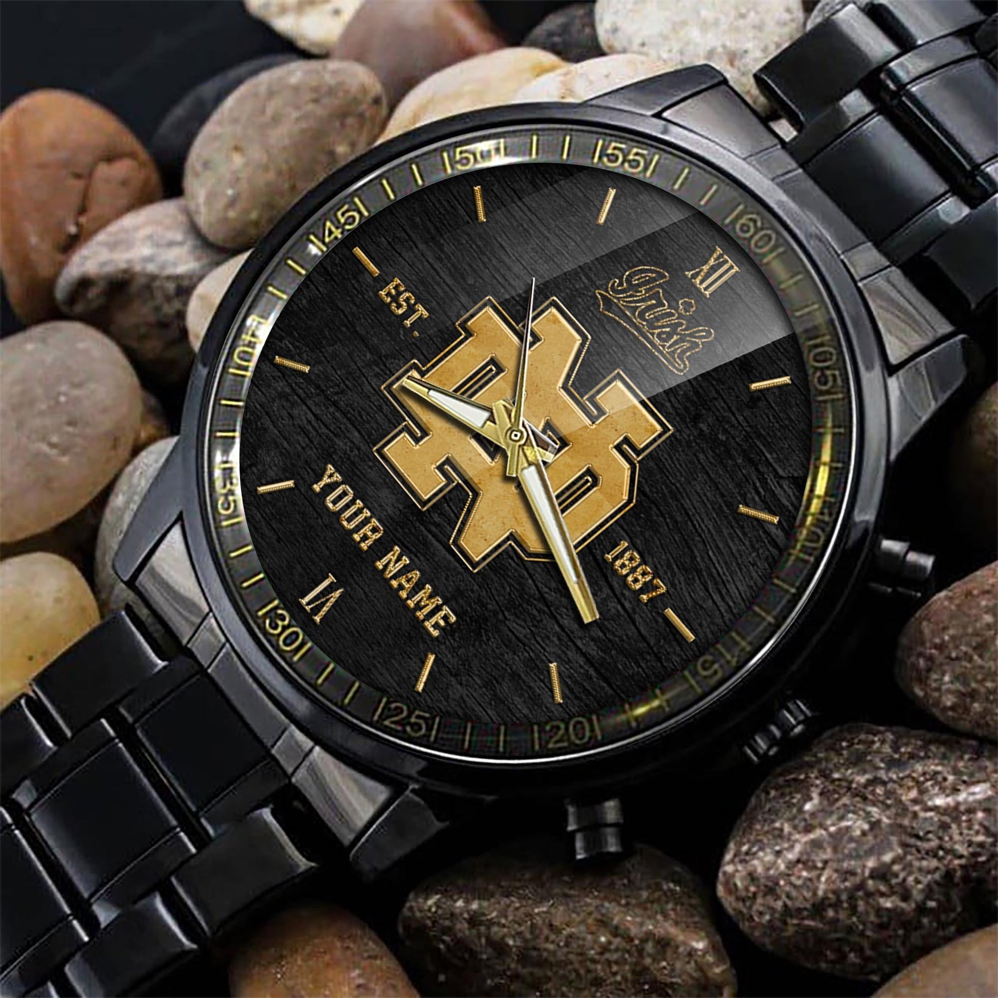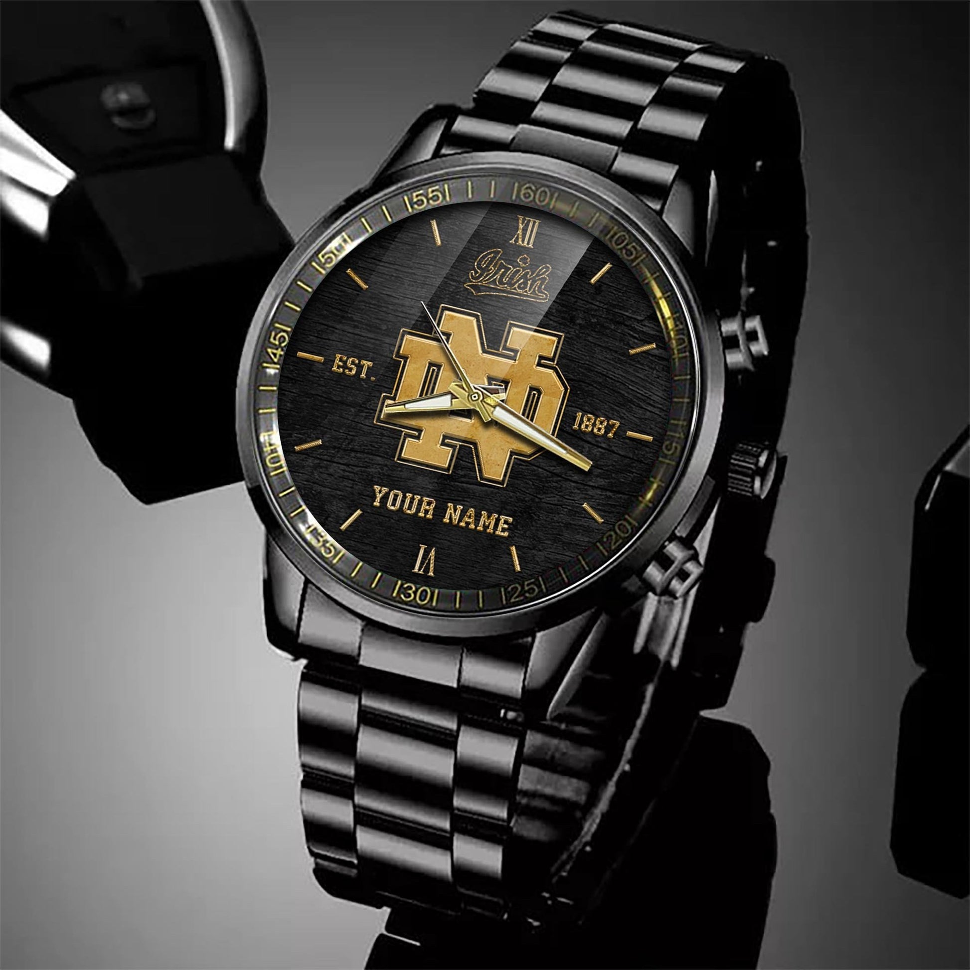 Notre Dame Fighting Irish Black Fashion Watch Custom Your Name And Year, Sport Watch, Sport Gifts For Football Fans ETRG