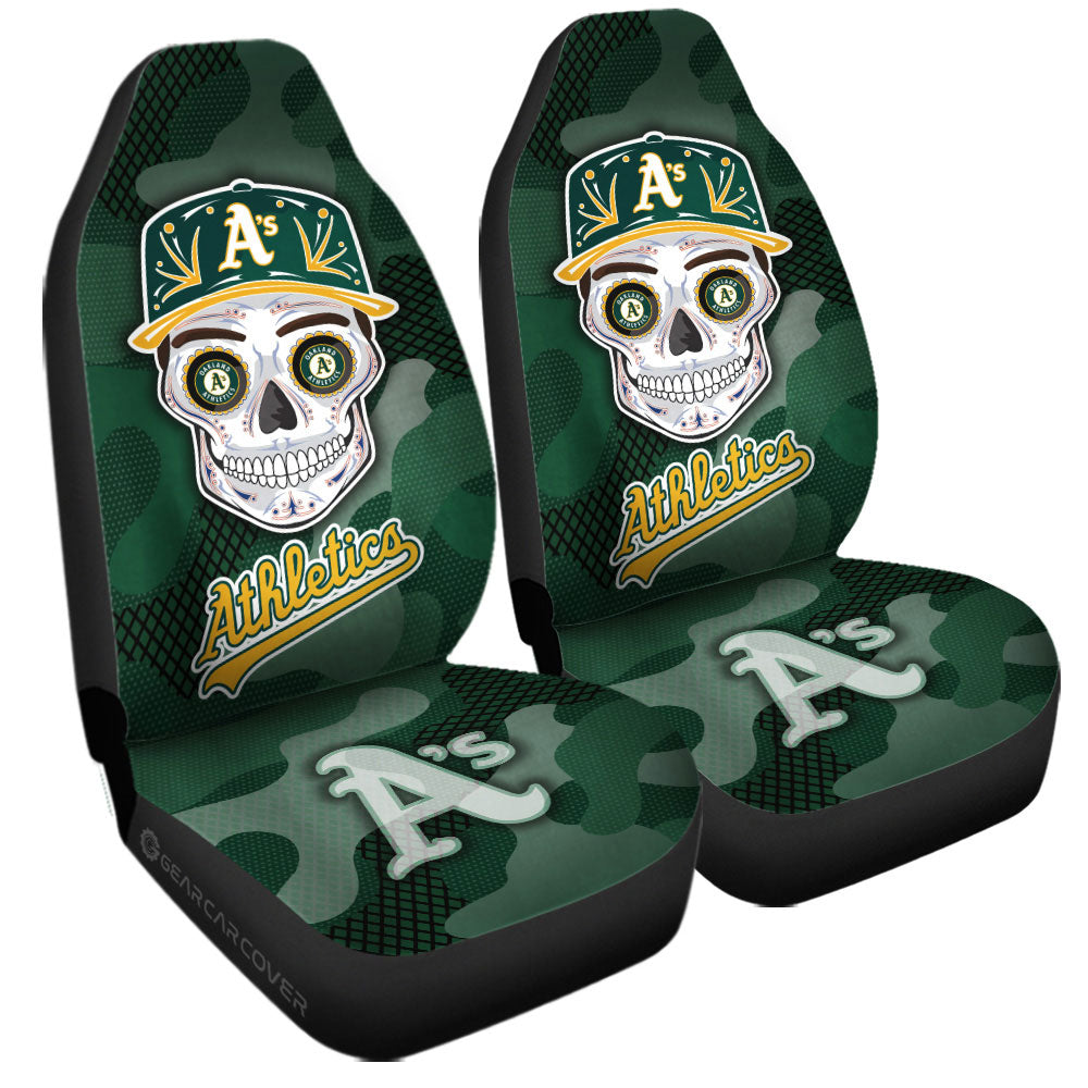 Oakland Athletics Car Seat Covers Skull Theme Collection