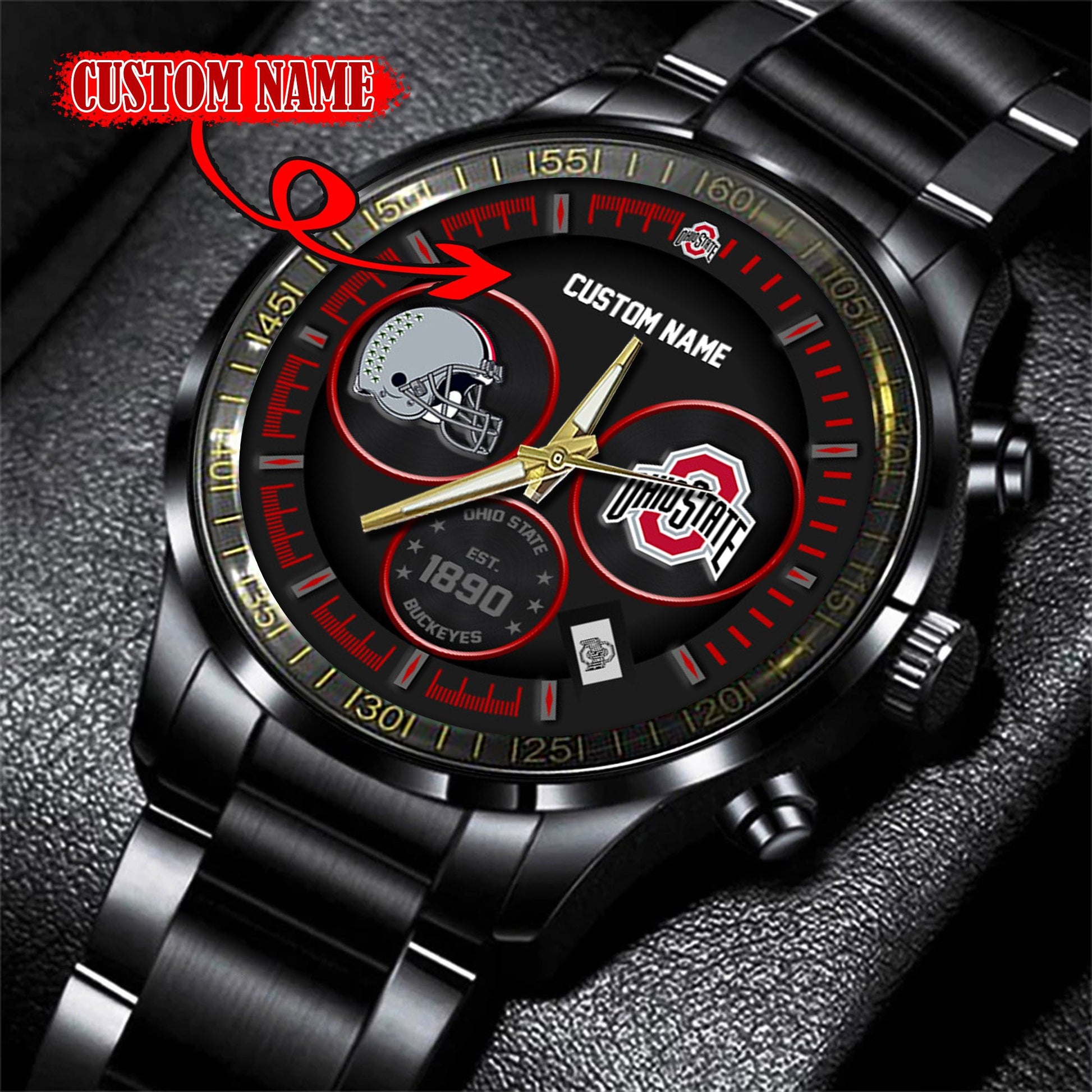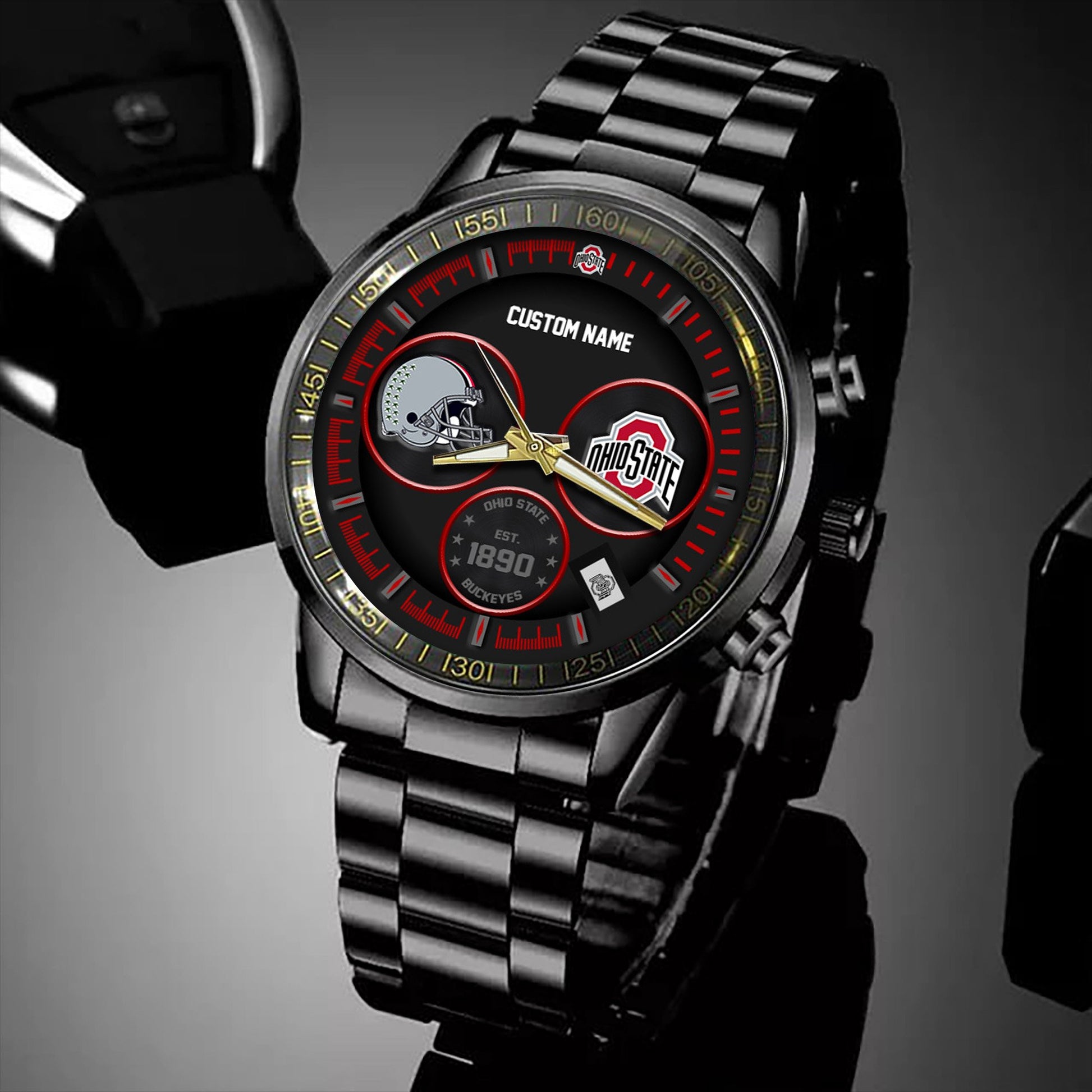 Ohio State Buckeyes Black Stainless Steel Watch - Custom Name 58437