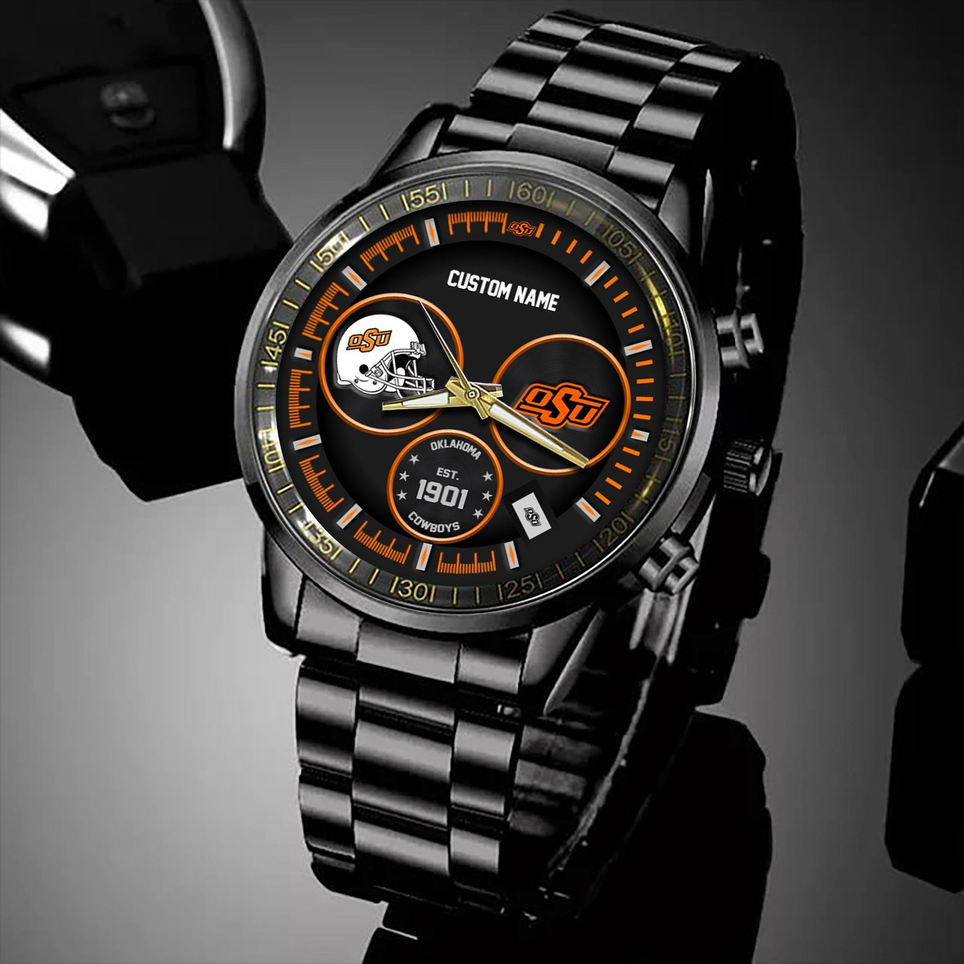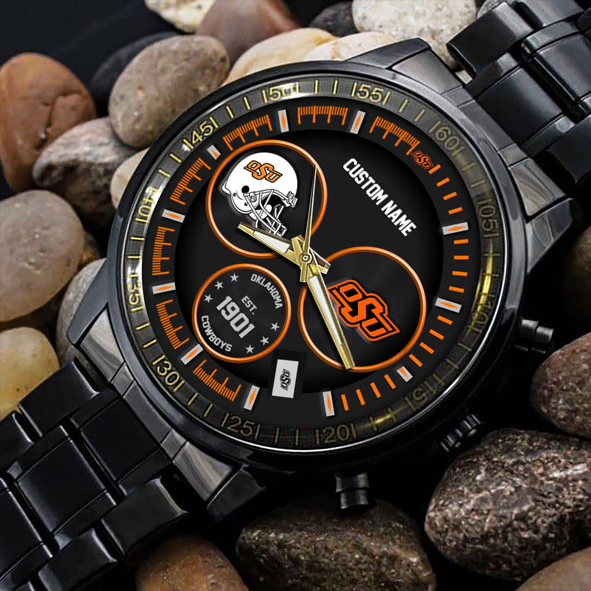 Oklahoma State Cowboys Black Stainless Steel Watch - Custom Name 58437