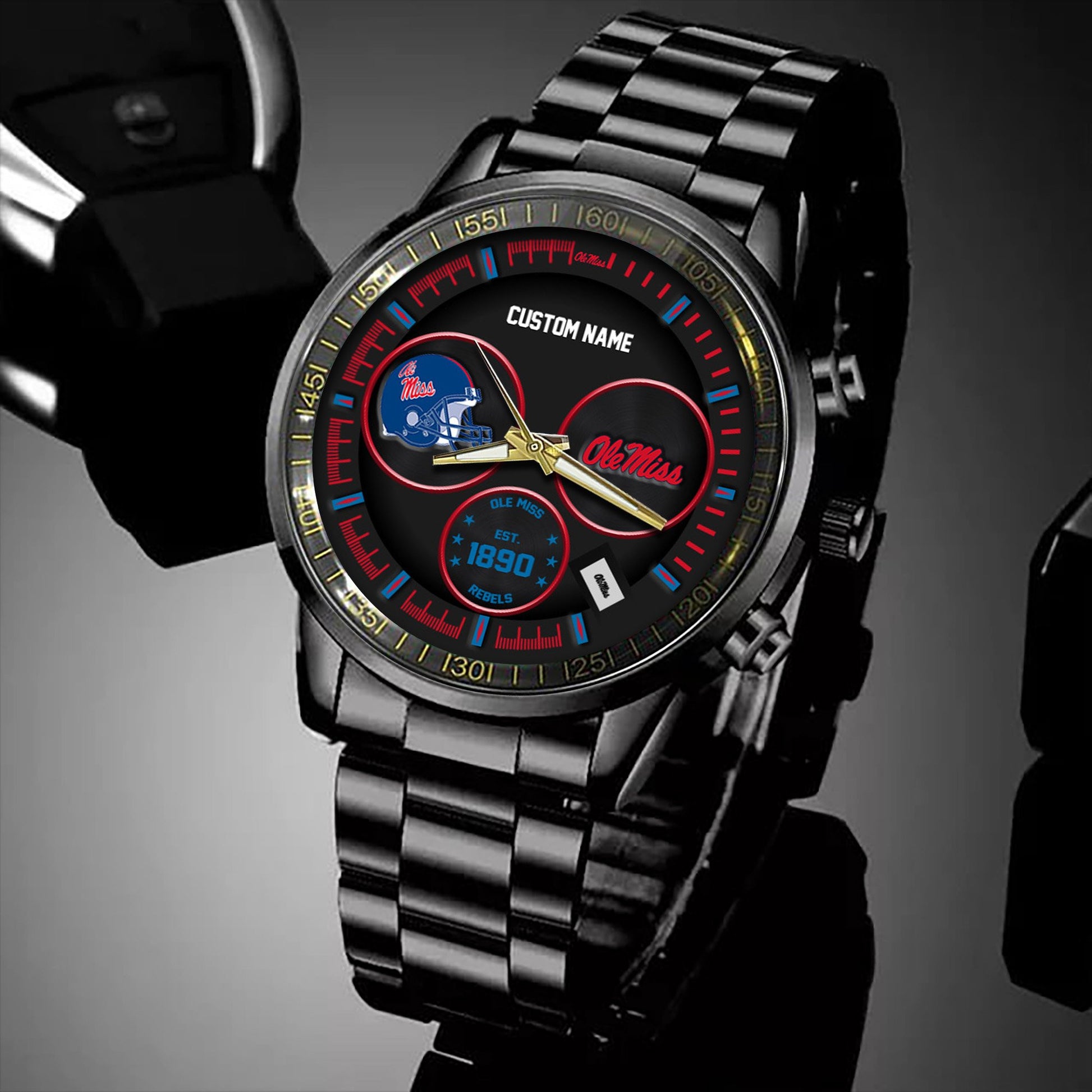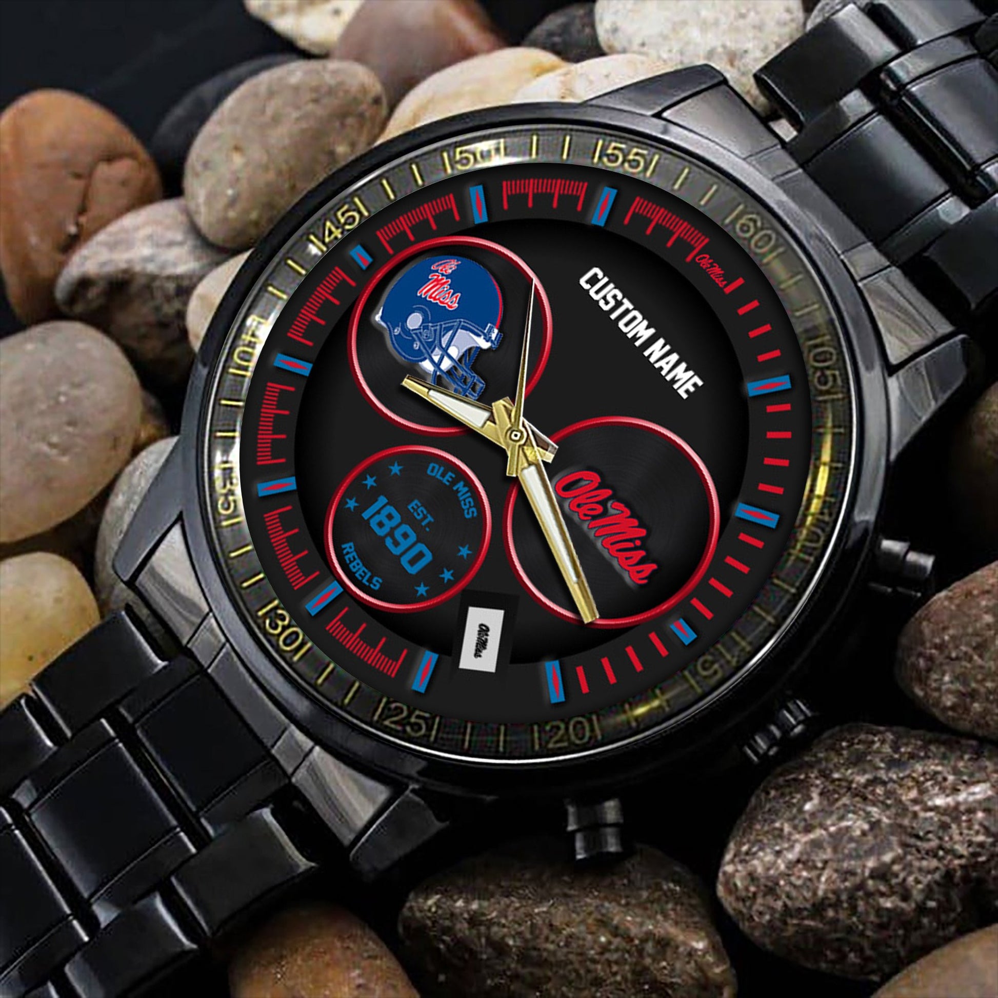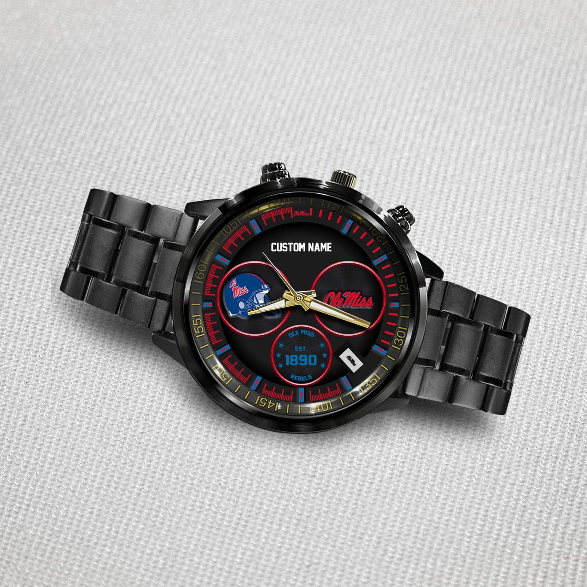 Ole Miss Rebels Black Stainless Steel Watch - Custom Name 58437