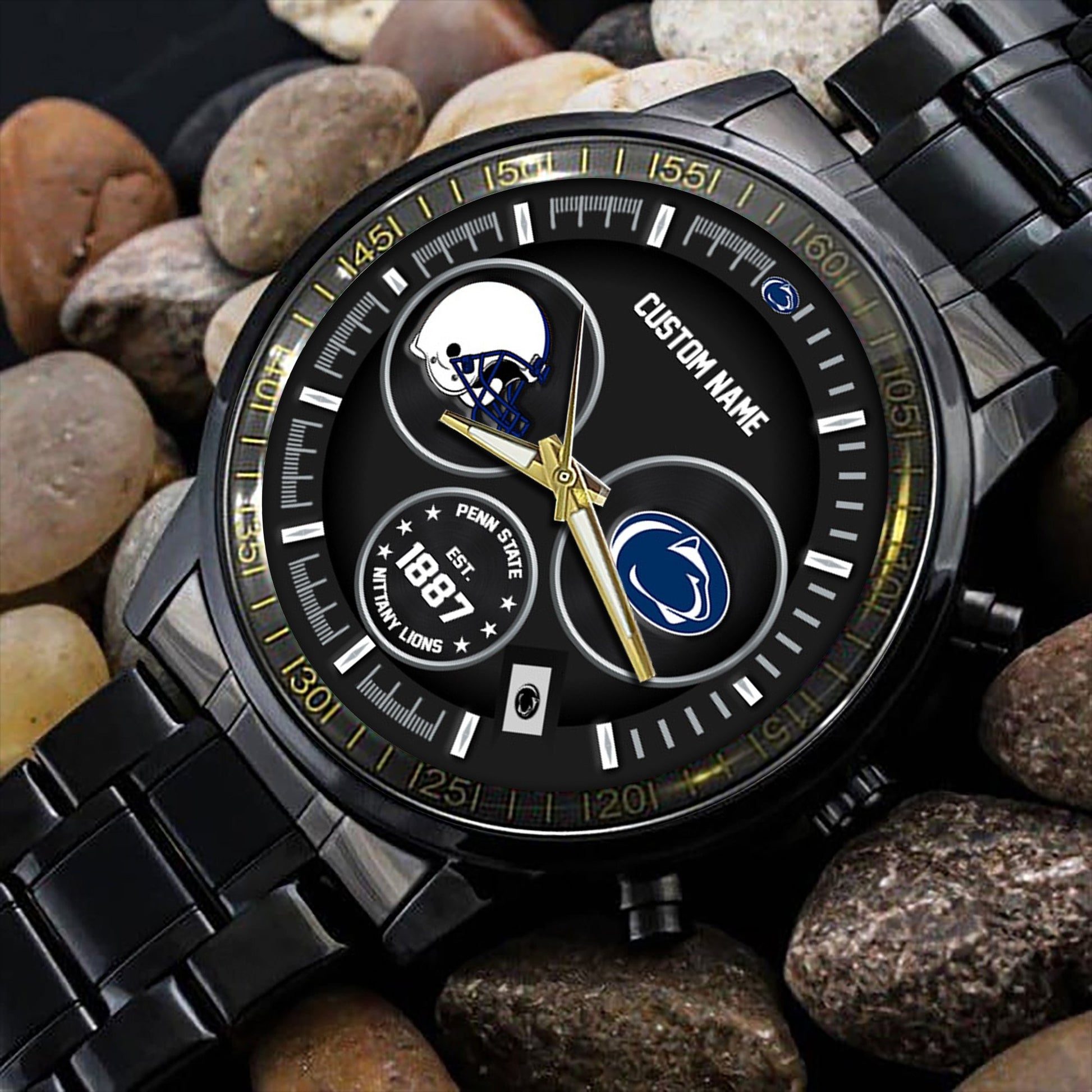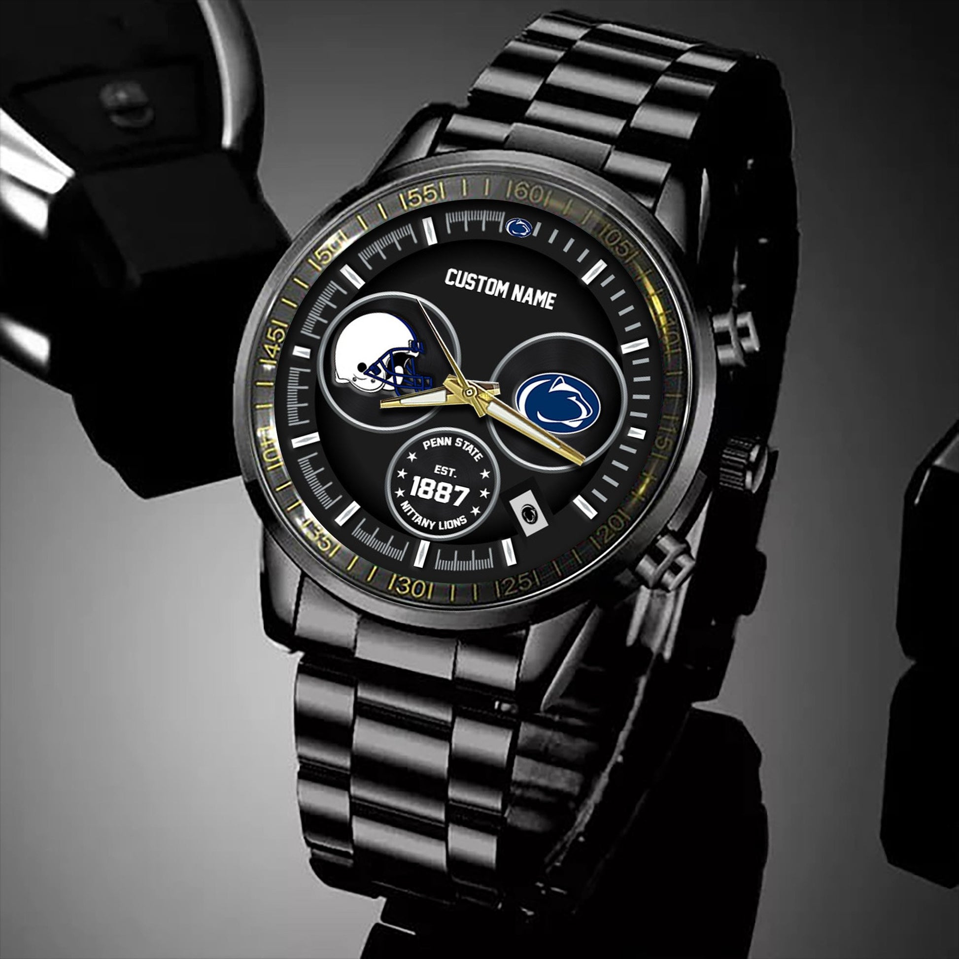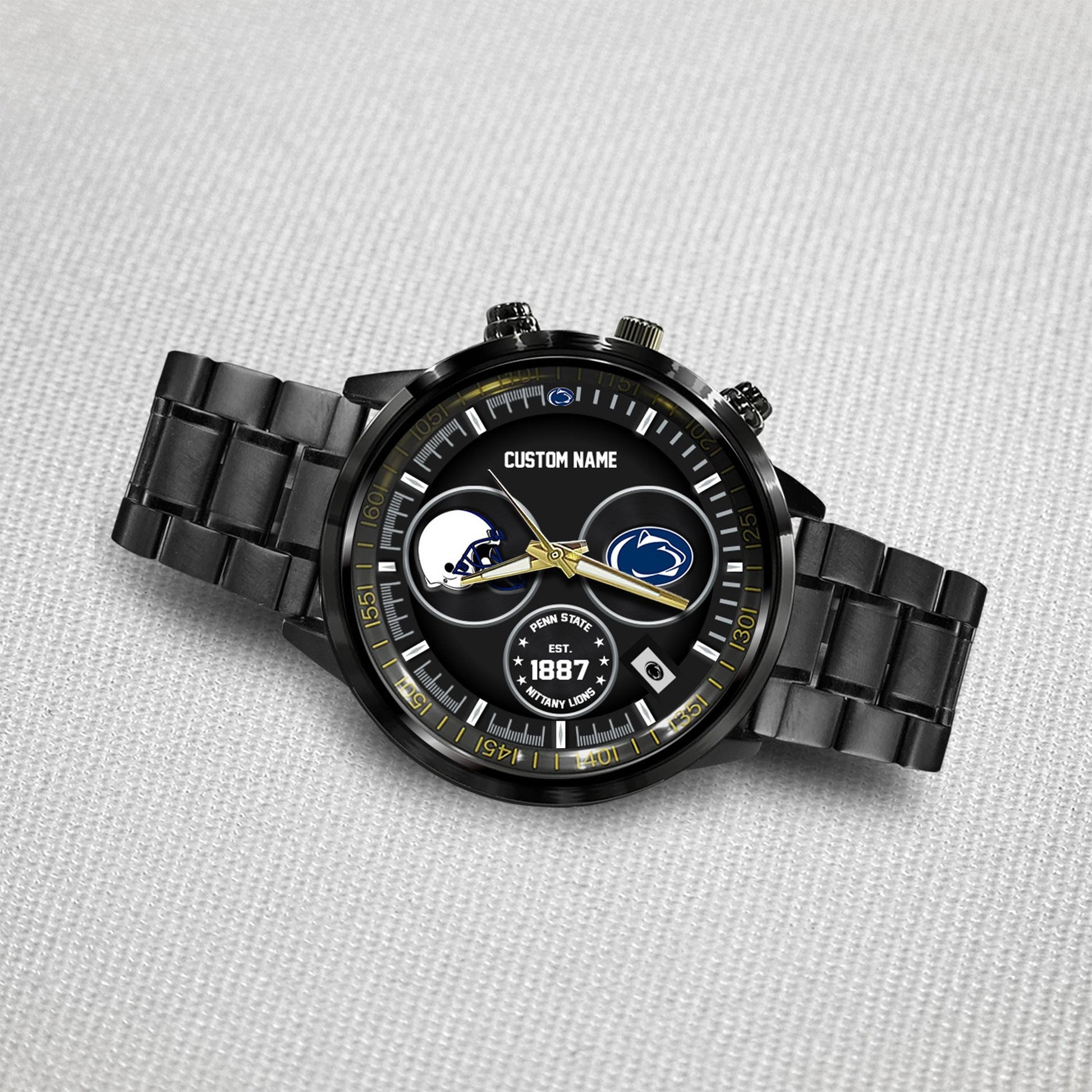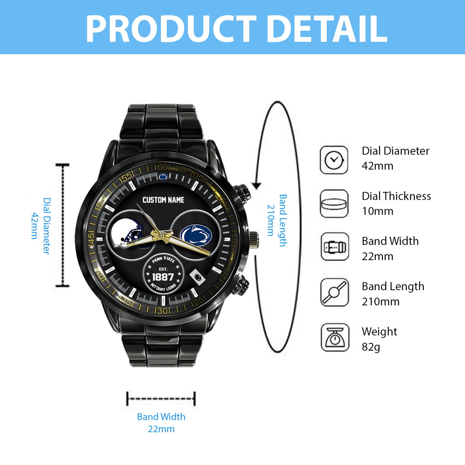 Penn State Nittany Lions Black Stainless Steel Watch - Custom Name 58437