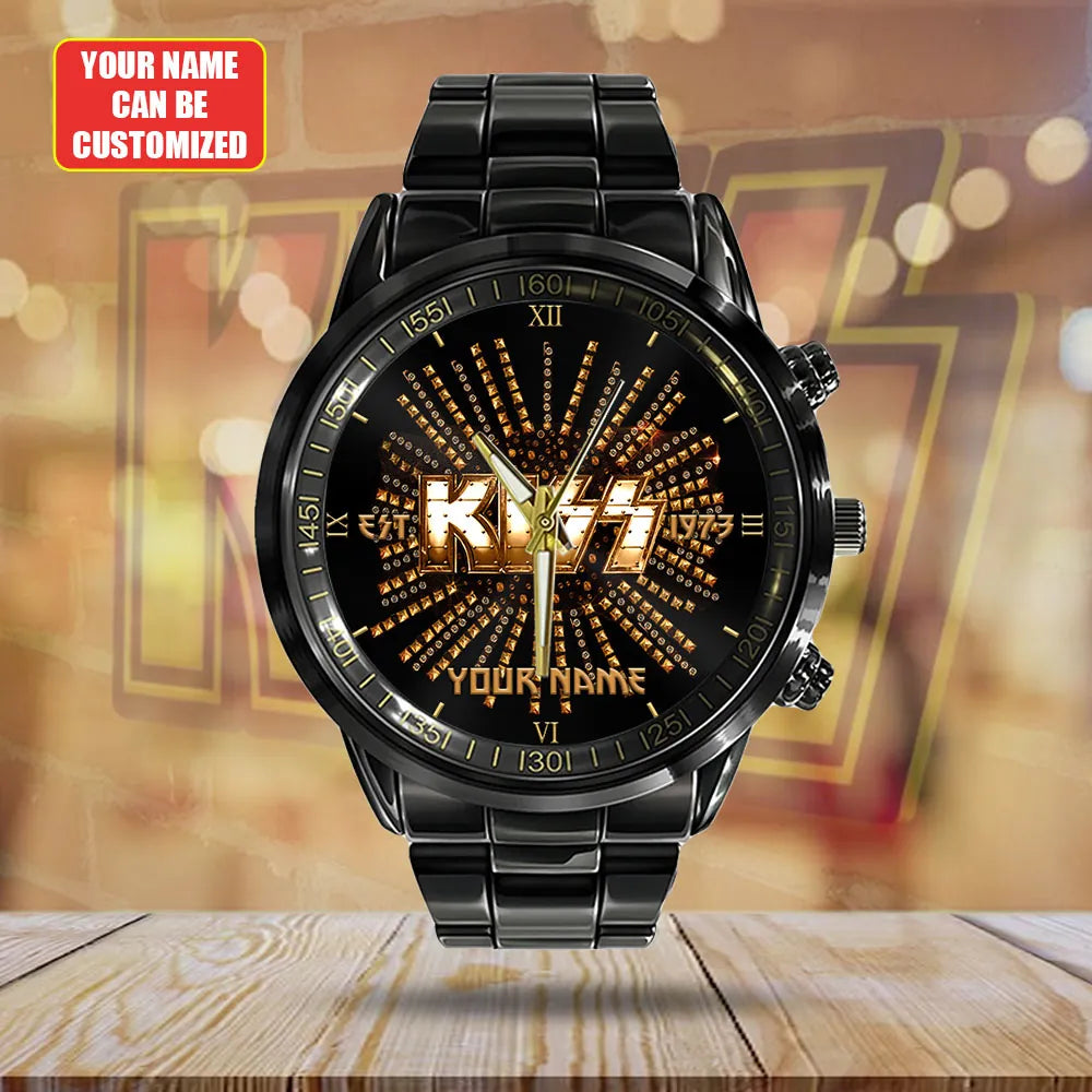 Personalized KISS Black Stainless Steel Watch – HUANNM 4879