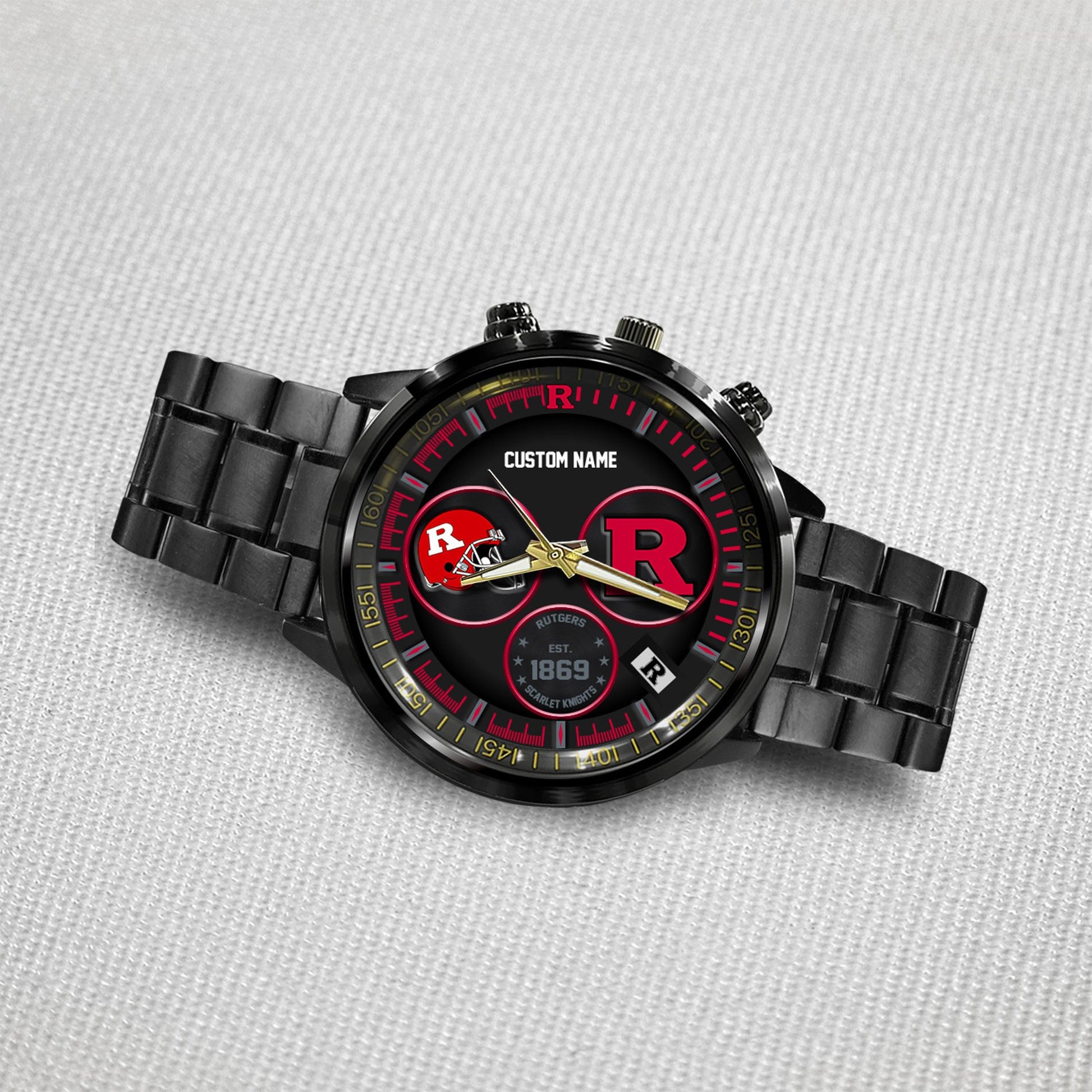 Rutgers Scarlet Knights Black Stainless Steel Watch - Custom Name 58437