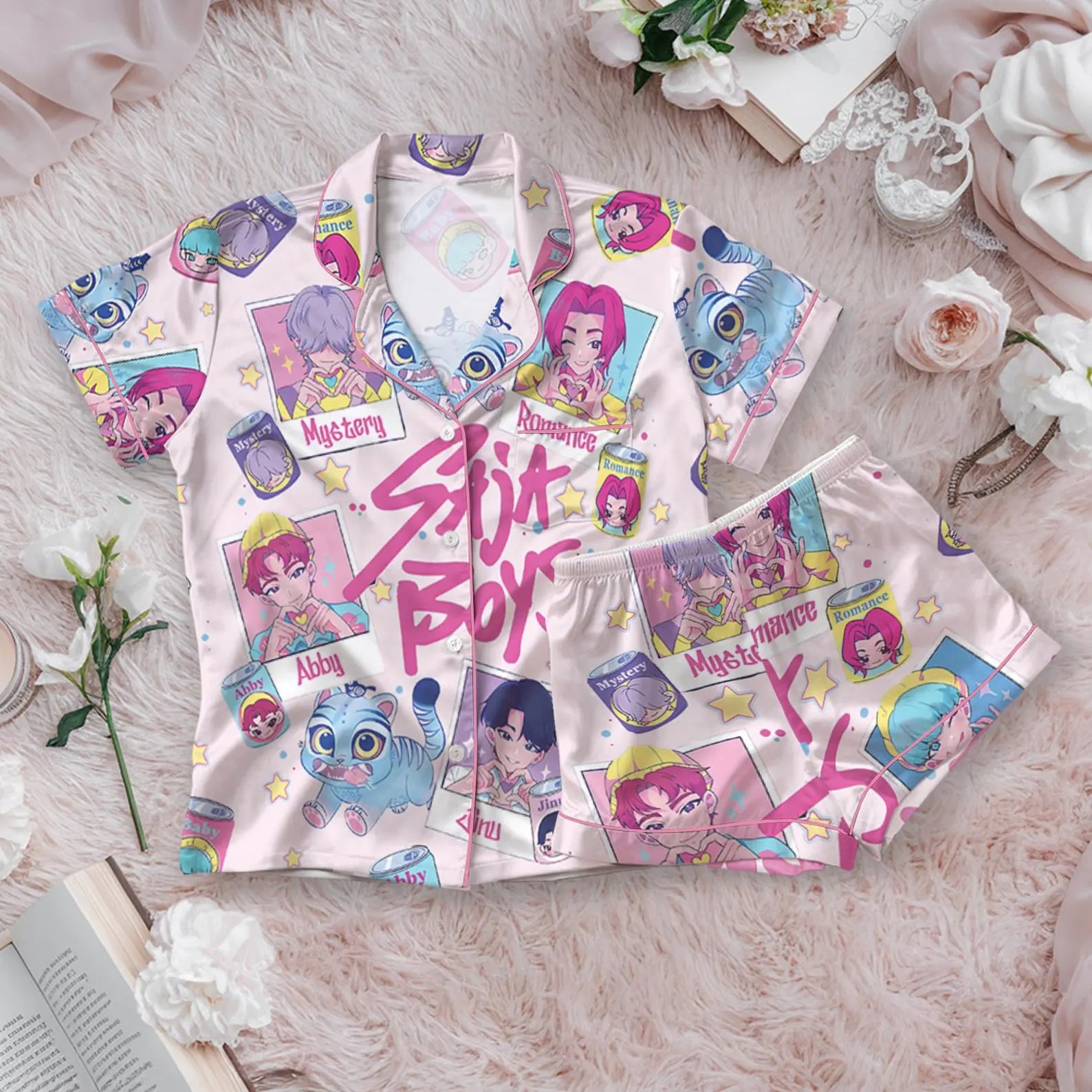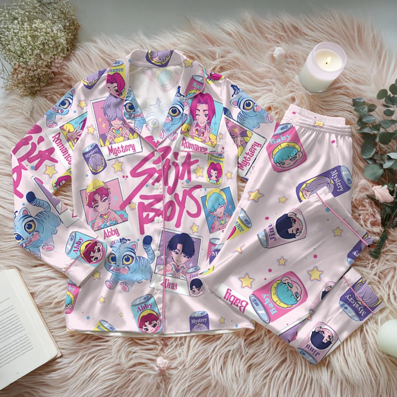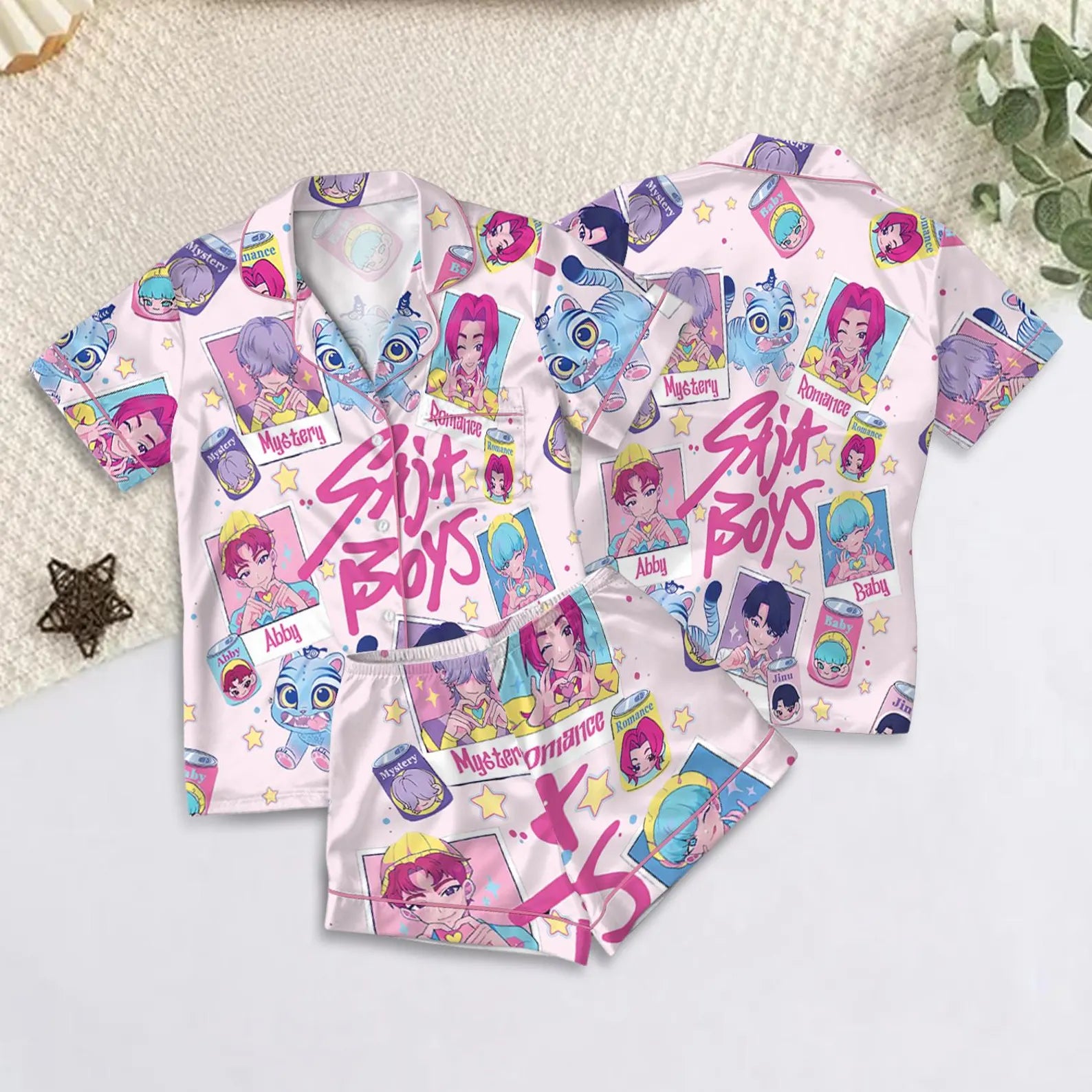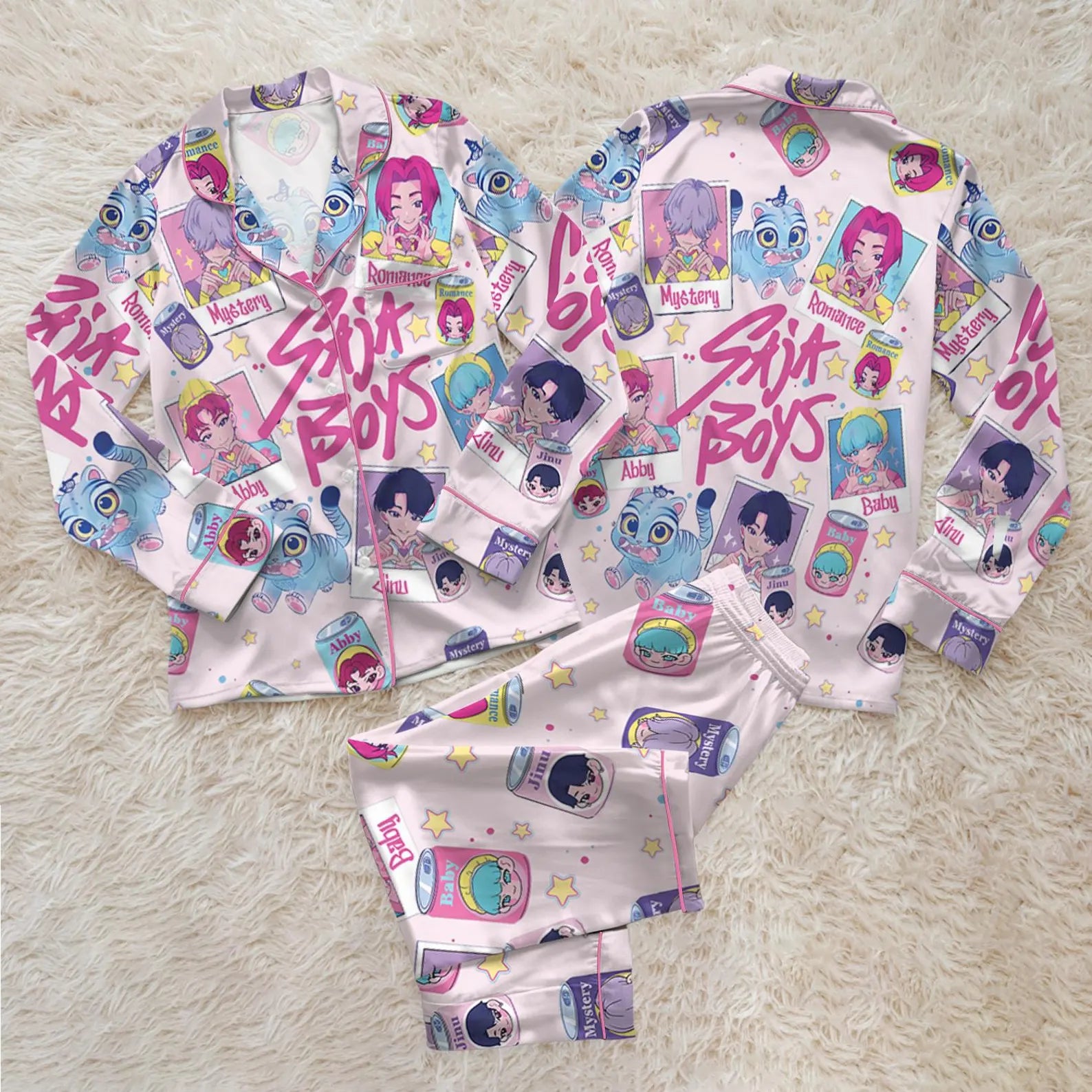 Saja Boys Soda Pop Satin Pajama Set, 100% You Little Soda Pop Sleepwear, KPDH Huntrix PJs, Kpop Movie Hunter Pajamas, Gift for Kpop Fans