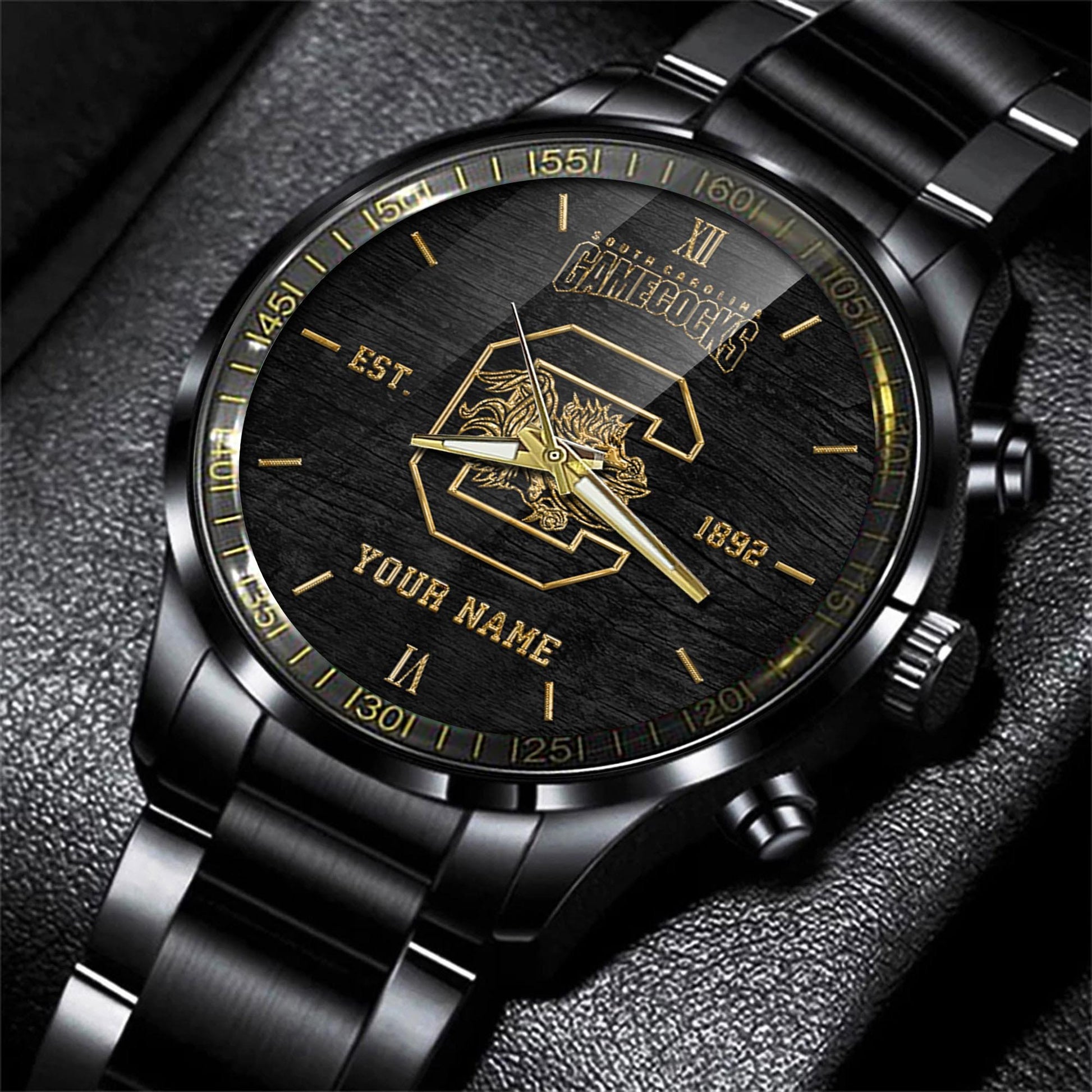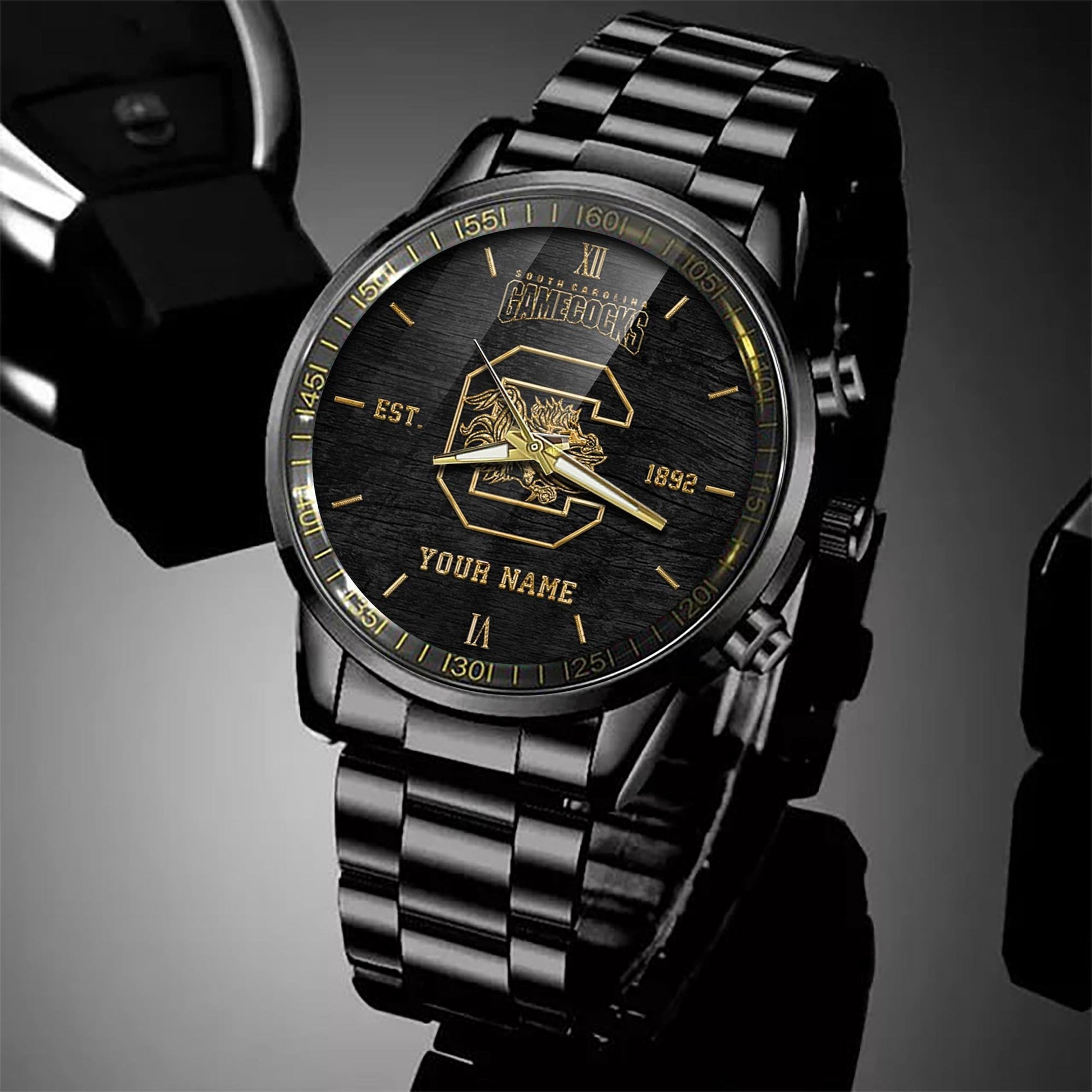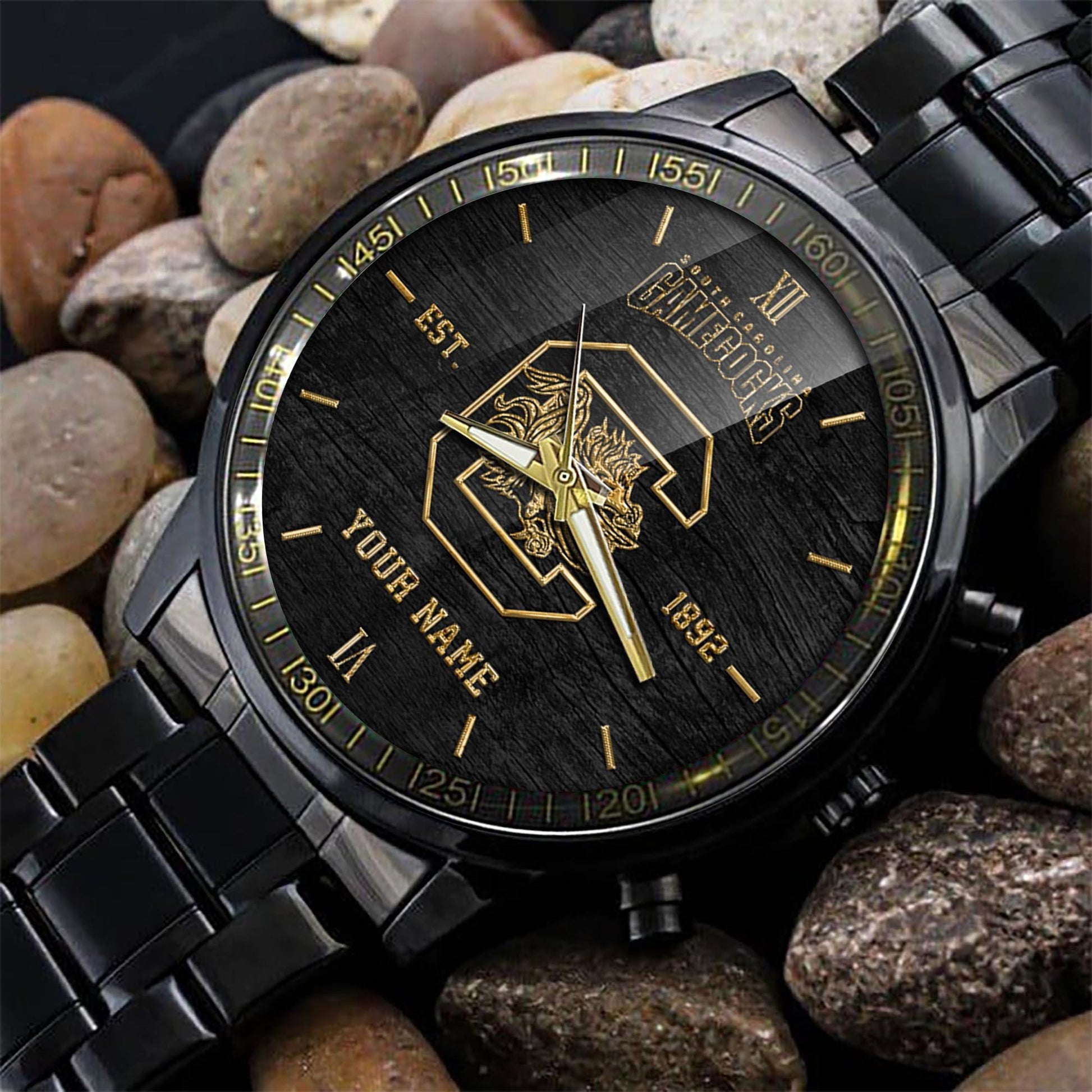 South Carolina Gamecocks Black Fashion Watch Custom Your Name And Year, Sport Watch, Sport Gifts For Football Fans ETRG