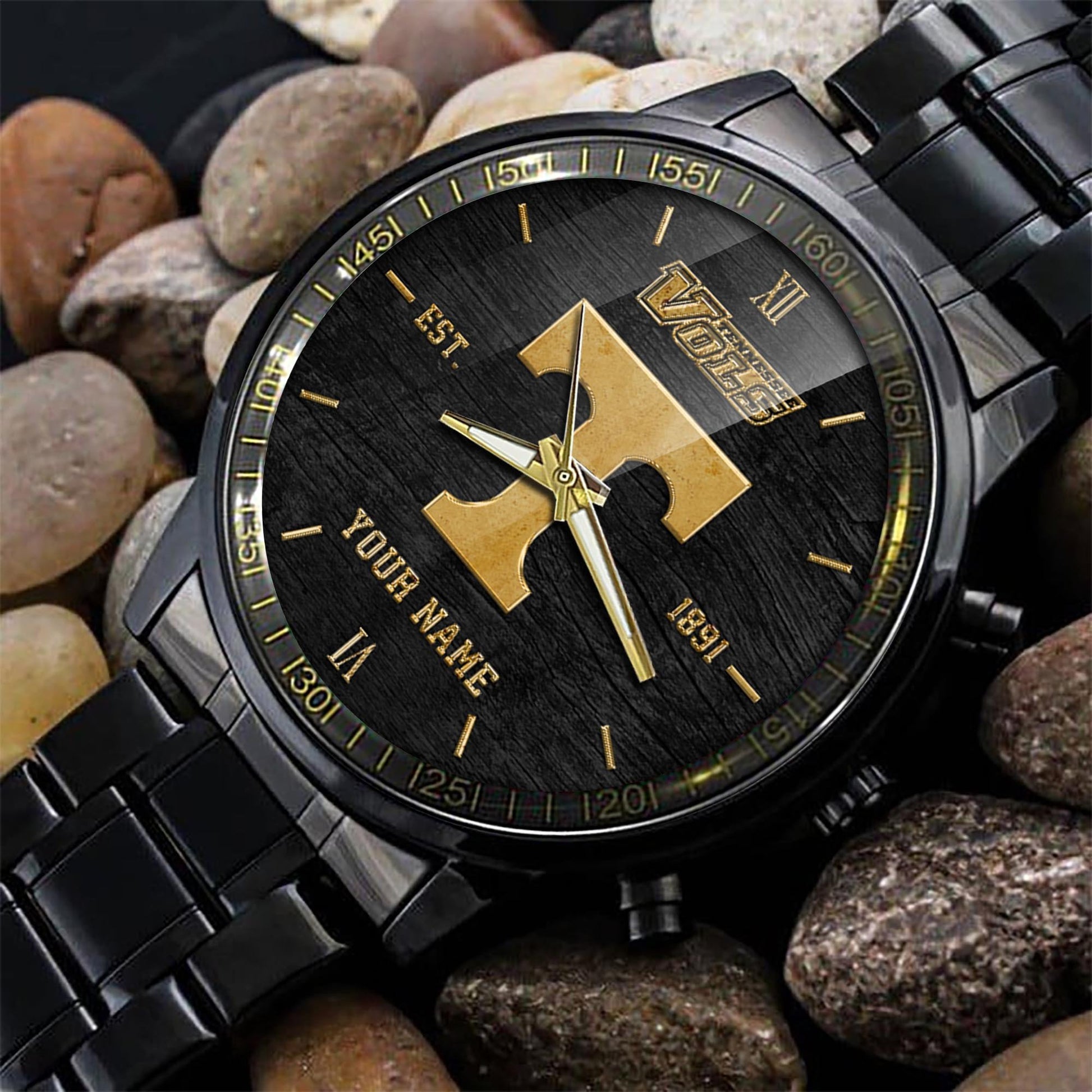 Tennessee Volunteers Black Fashion Watch Custom Your Name And Year, Sport Watch, Sport Gifts For Football Fans ETRG