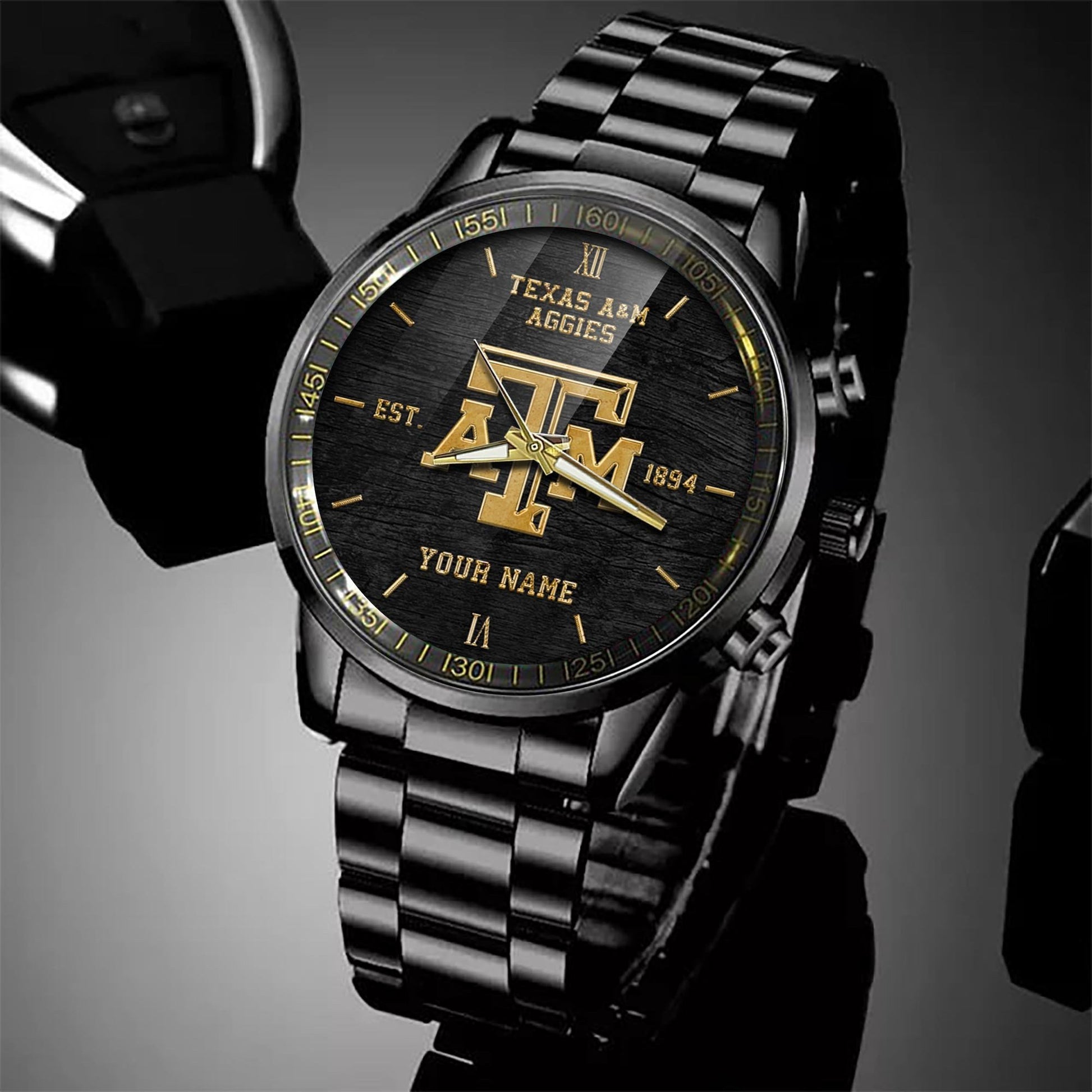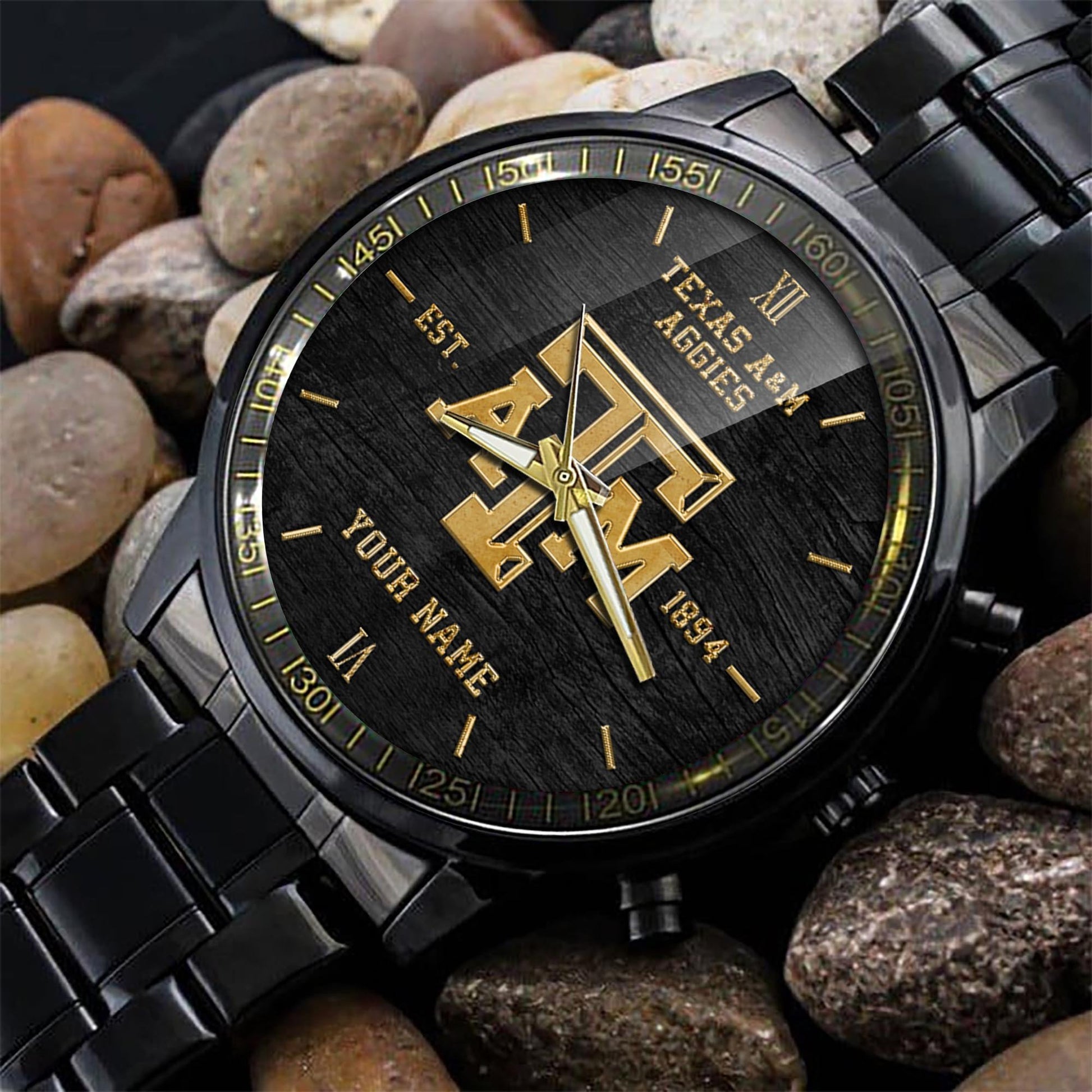 Texas A&M Aggies Black Fashion Watch Custom Your Name And Year, Sport Watch, Sport Gifts For Football Fans ETRG
