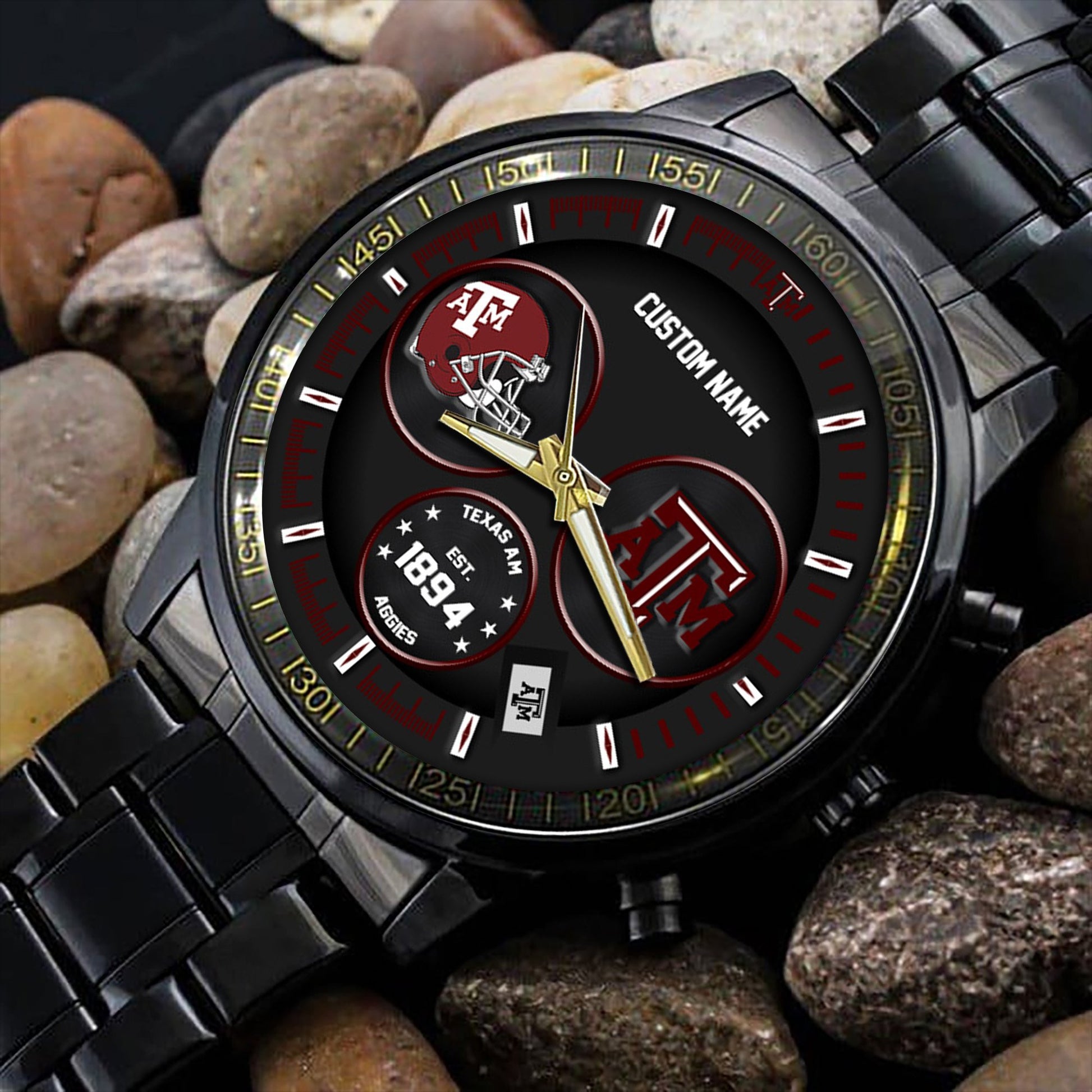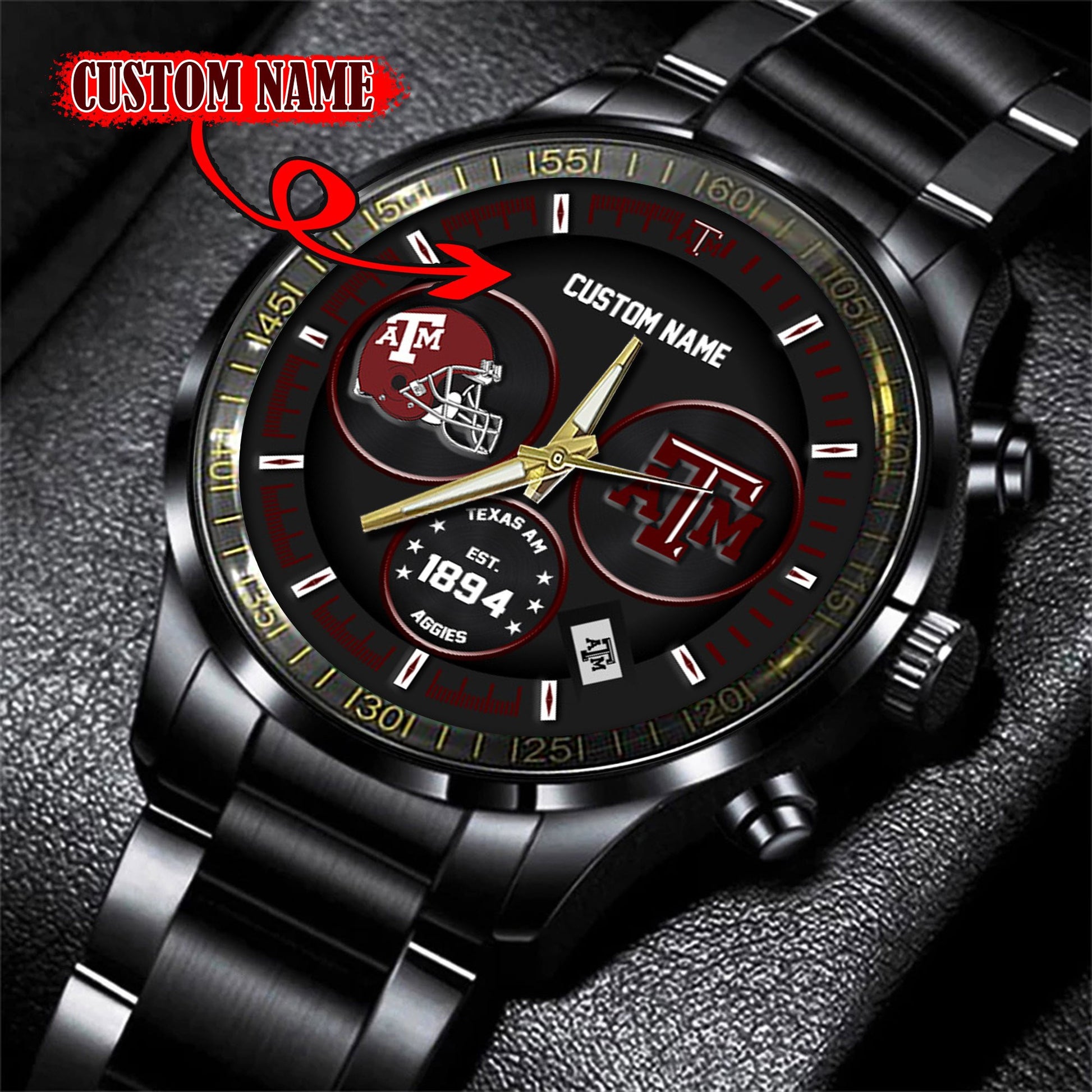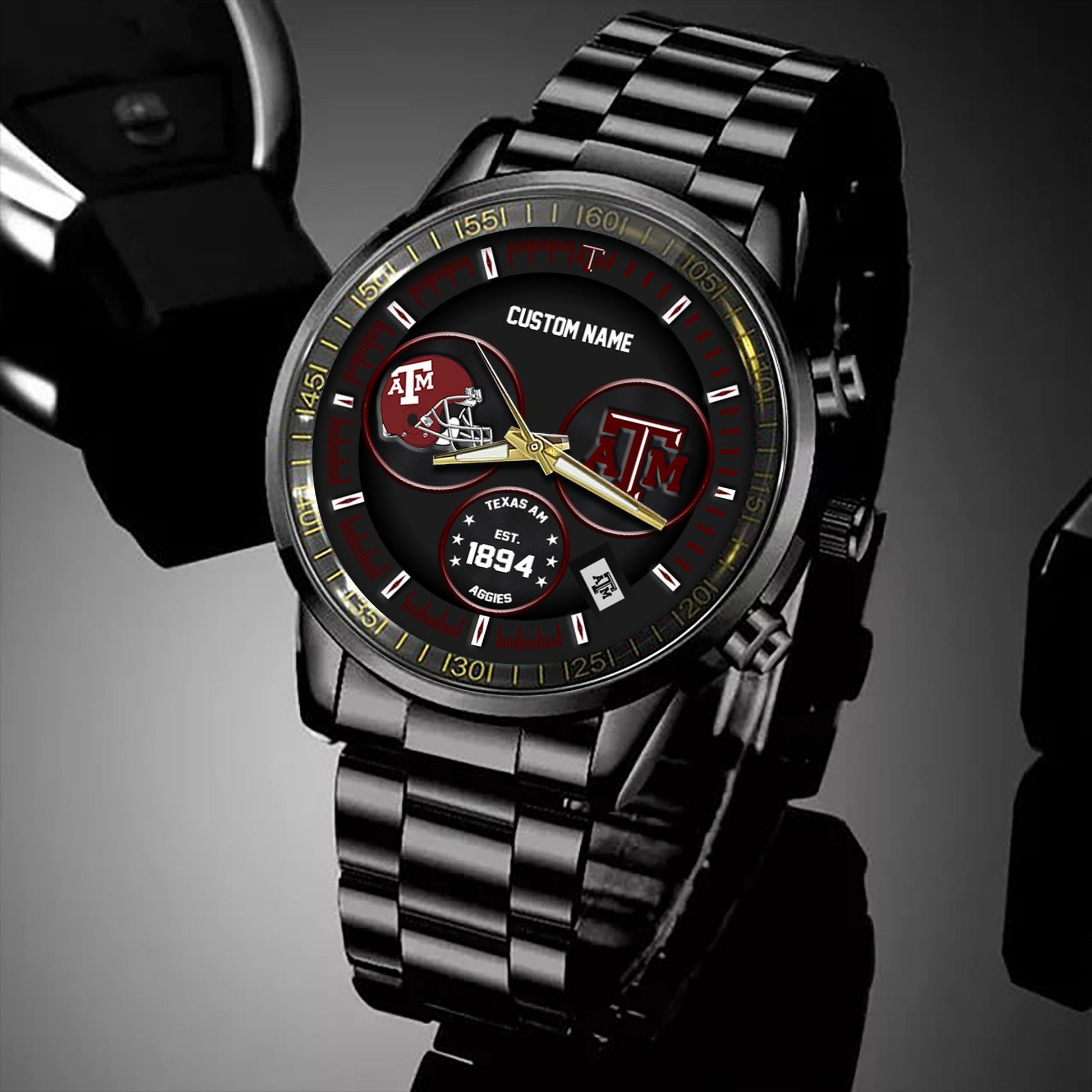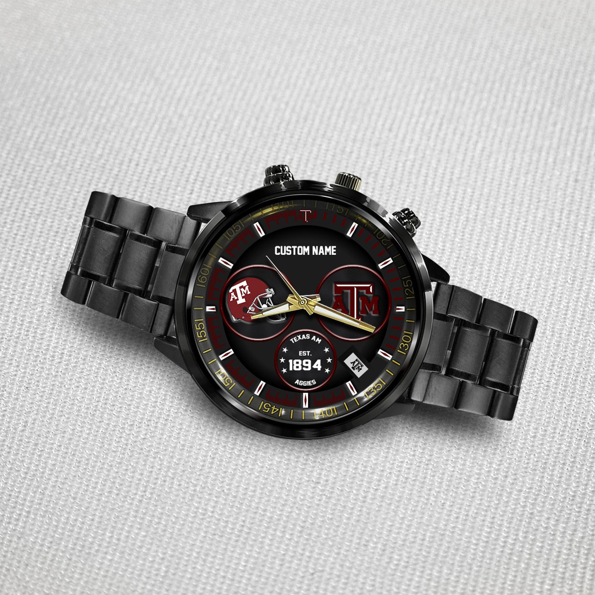 Texas A&M Aggies Black Stainless Steel Watch - Custom Name 58437