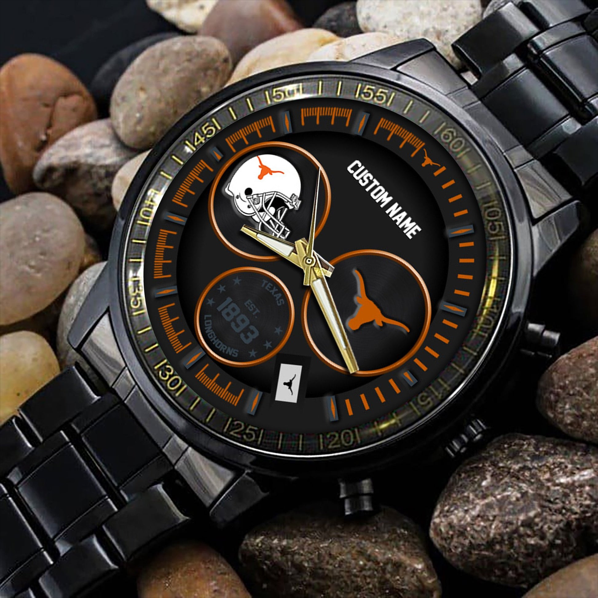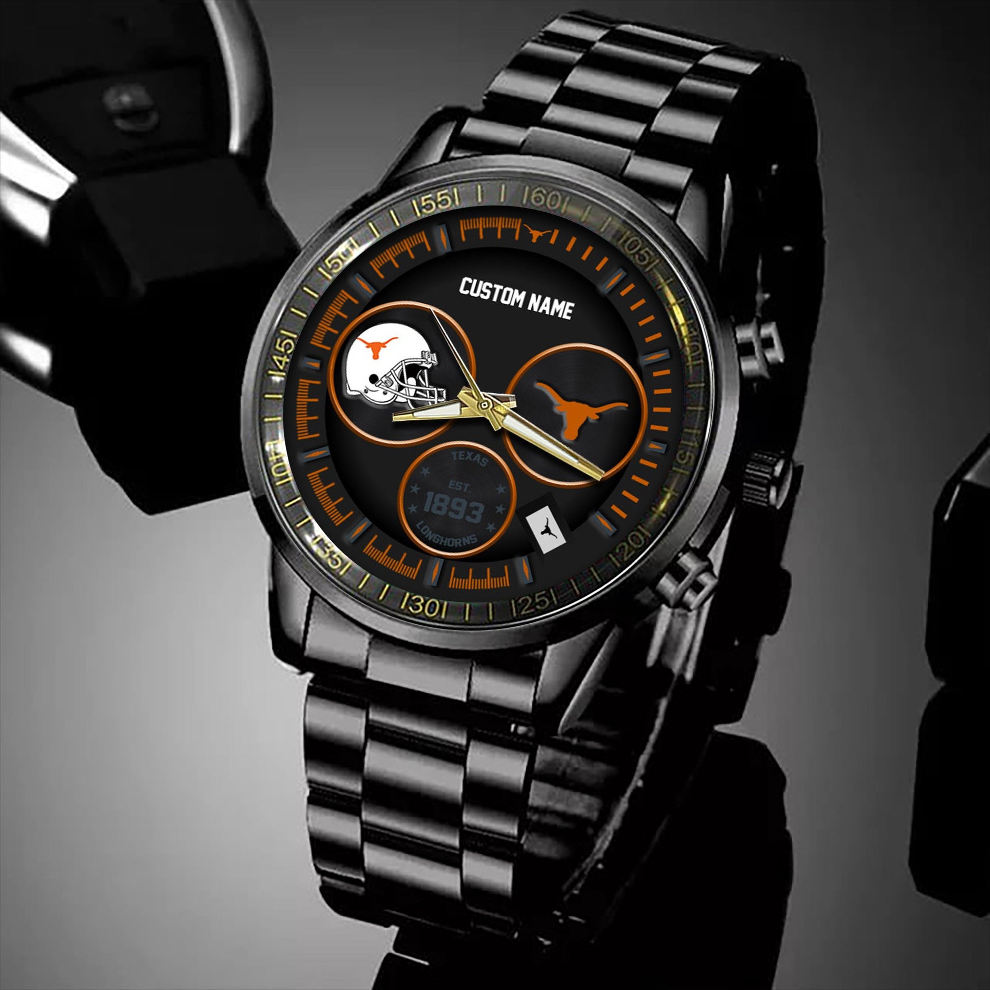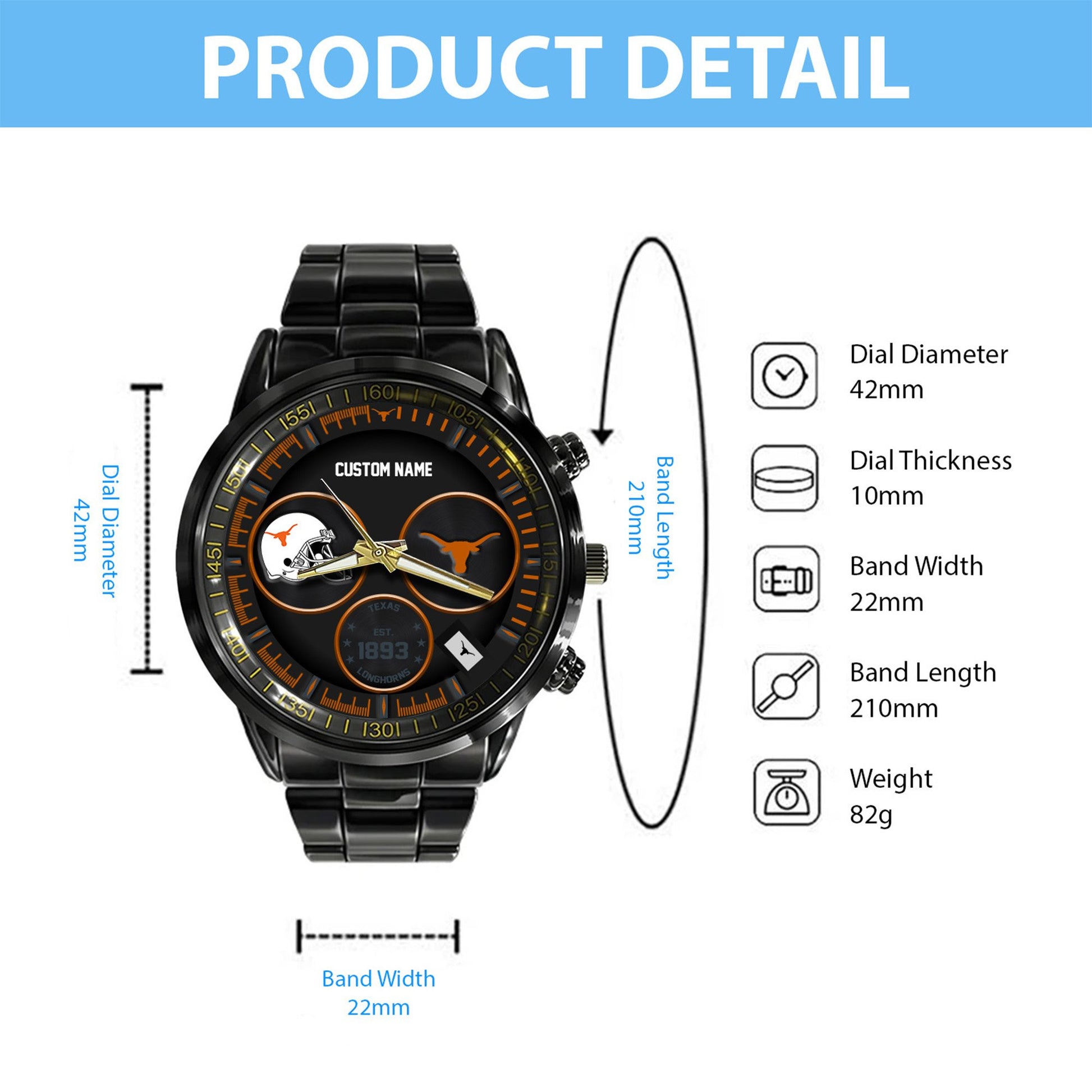 Texas Longhorns Black Stainless Steel Watch - Custom Name 58437