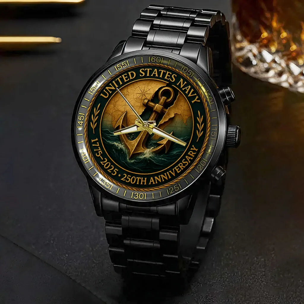 US Navy 250th Anniversary Black Stainless Steel Watch – HOATT13650