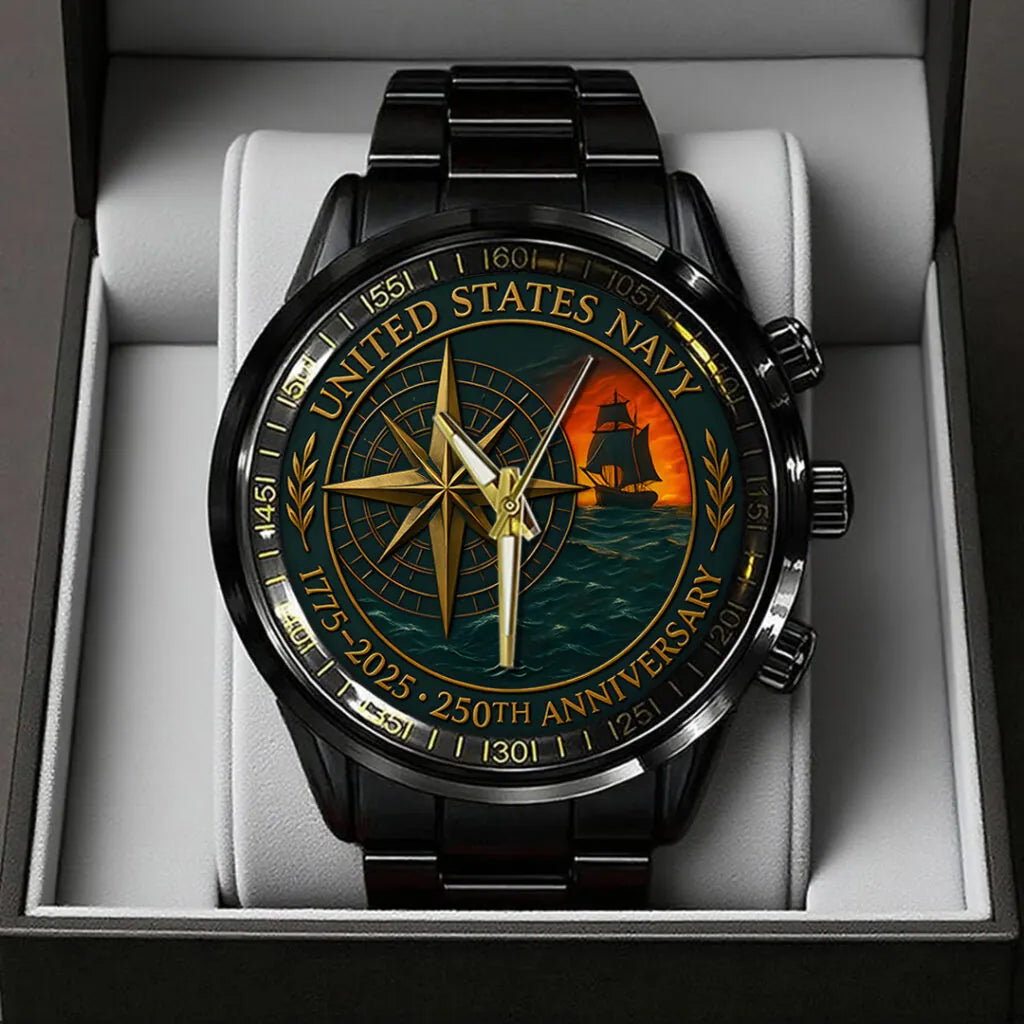 US Navy 250th Anniversary Black Stainless Steel Watch-PX1027
