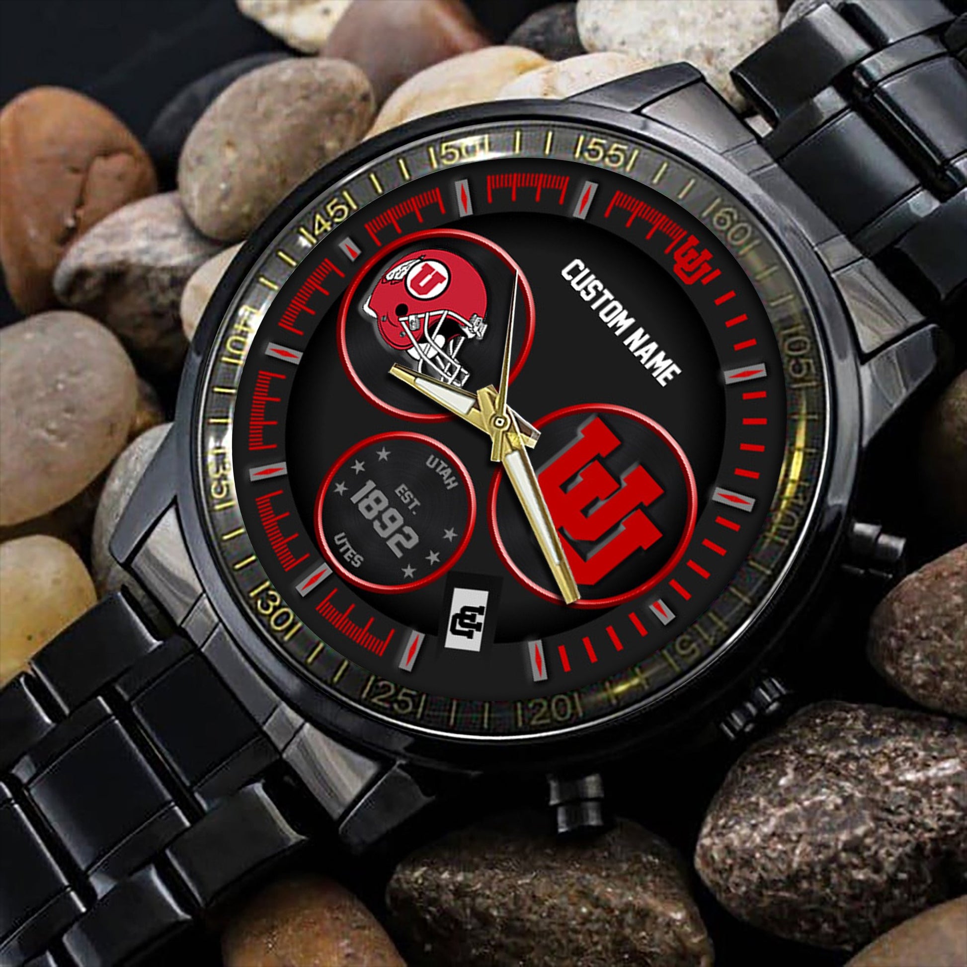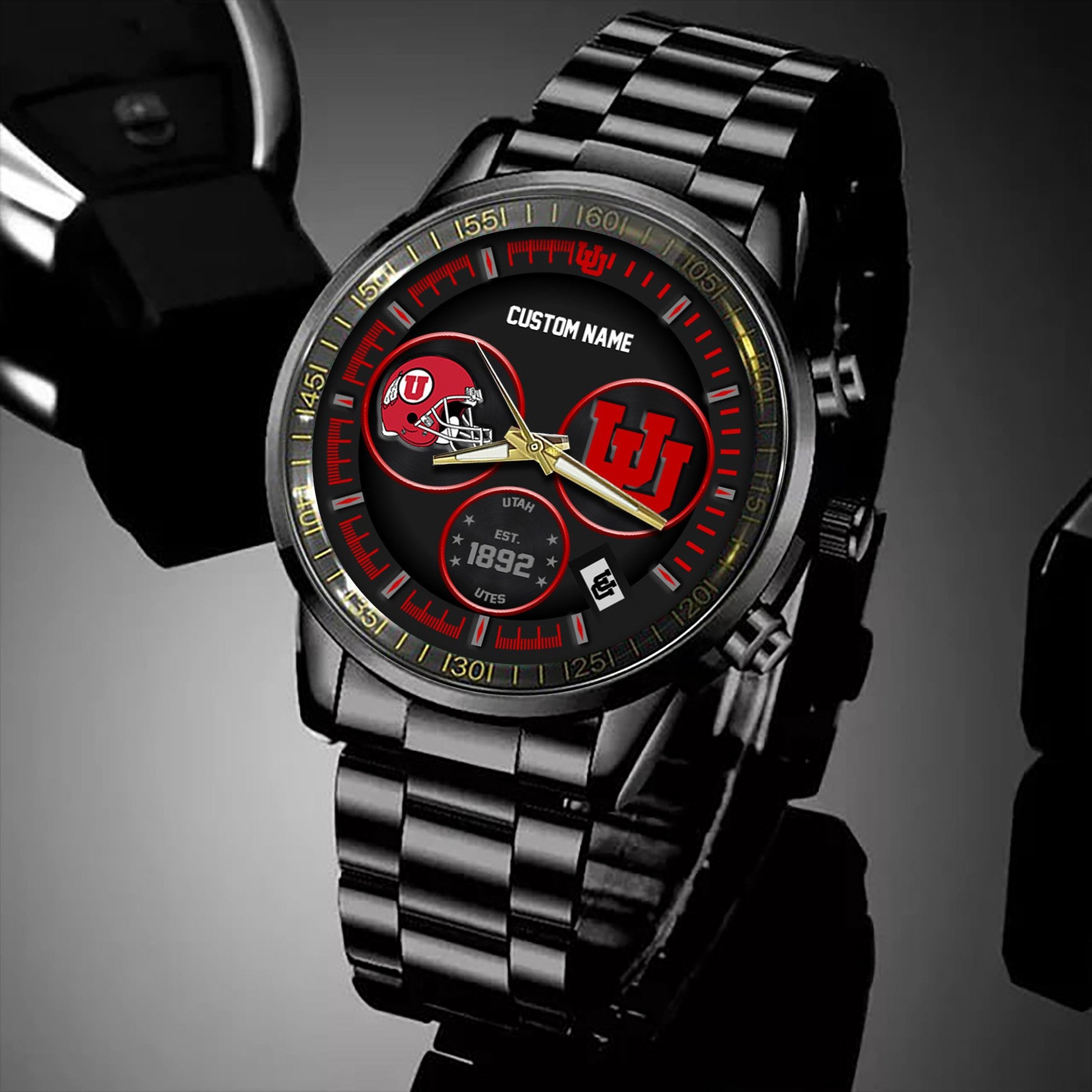 Utah Utes Black Stainless Steel Watch - Custom Name 58437