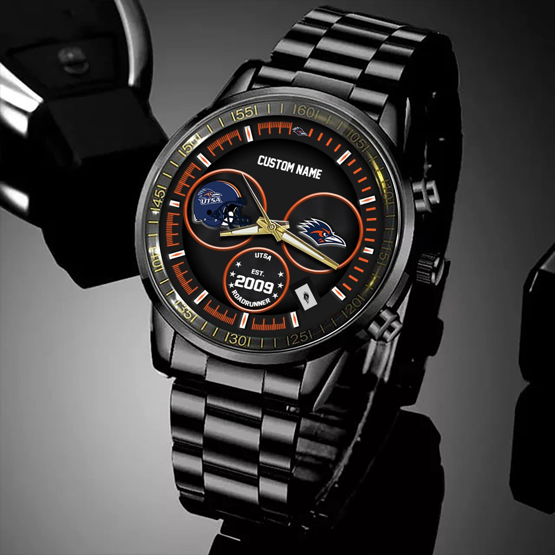 UTSA Roadrunners Black Stainless Steel Watch - Custom Name 58437