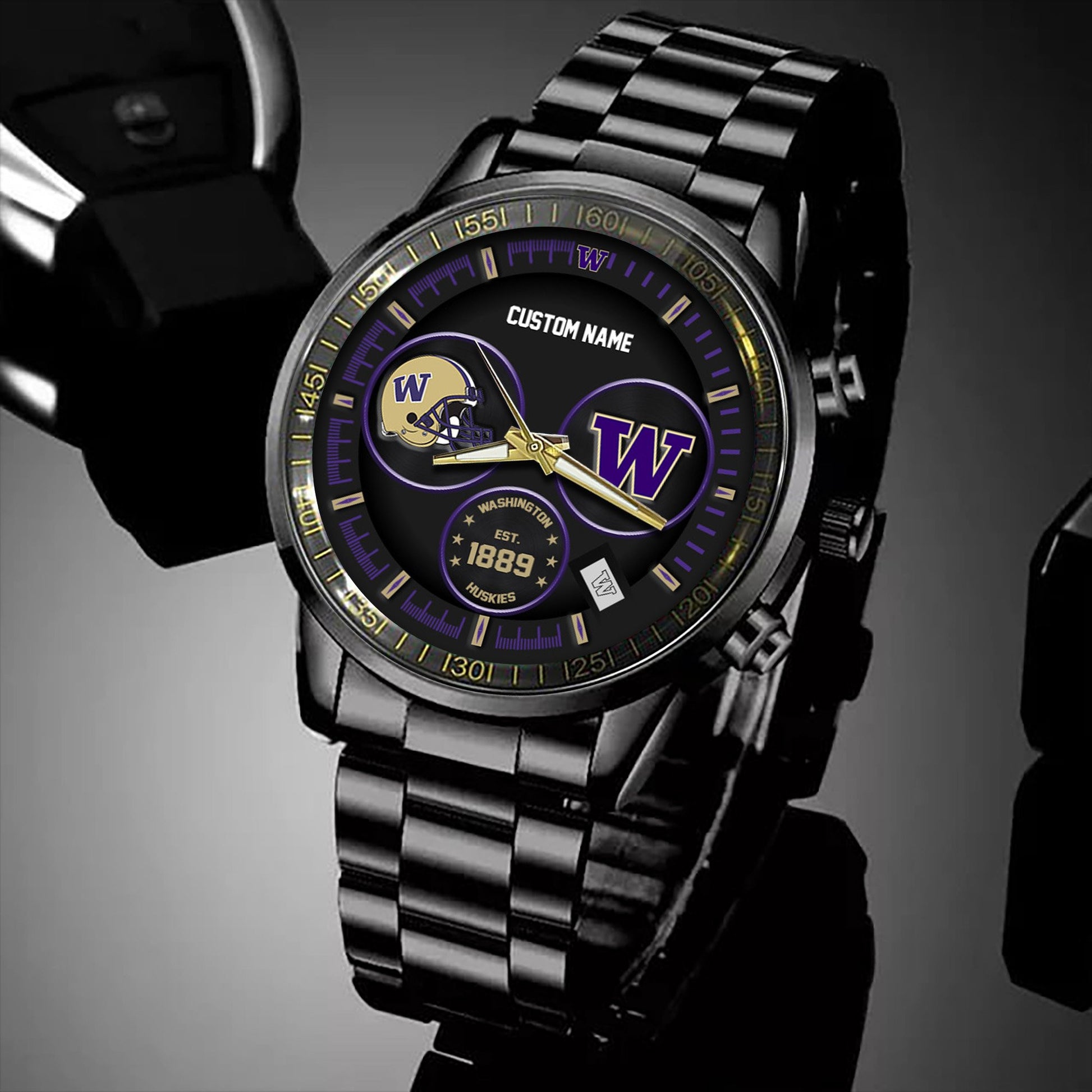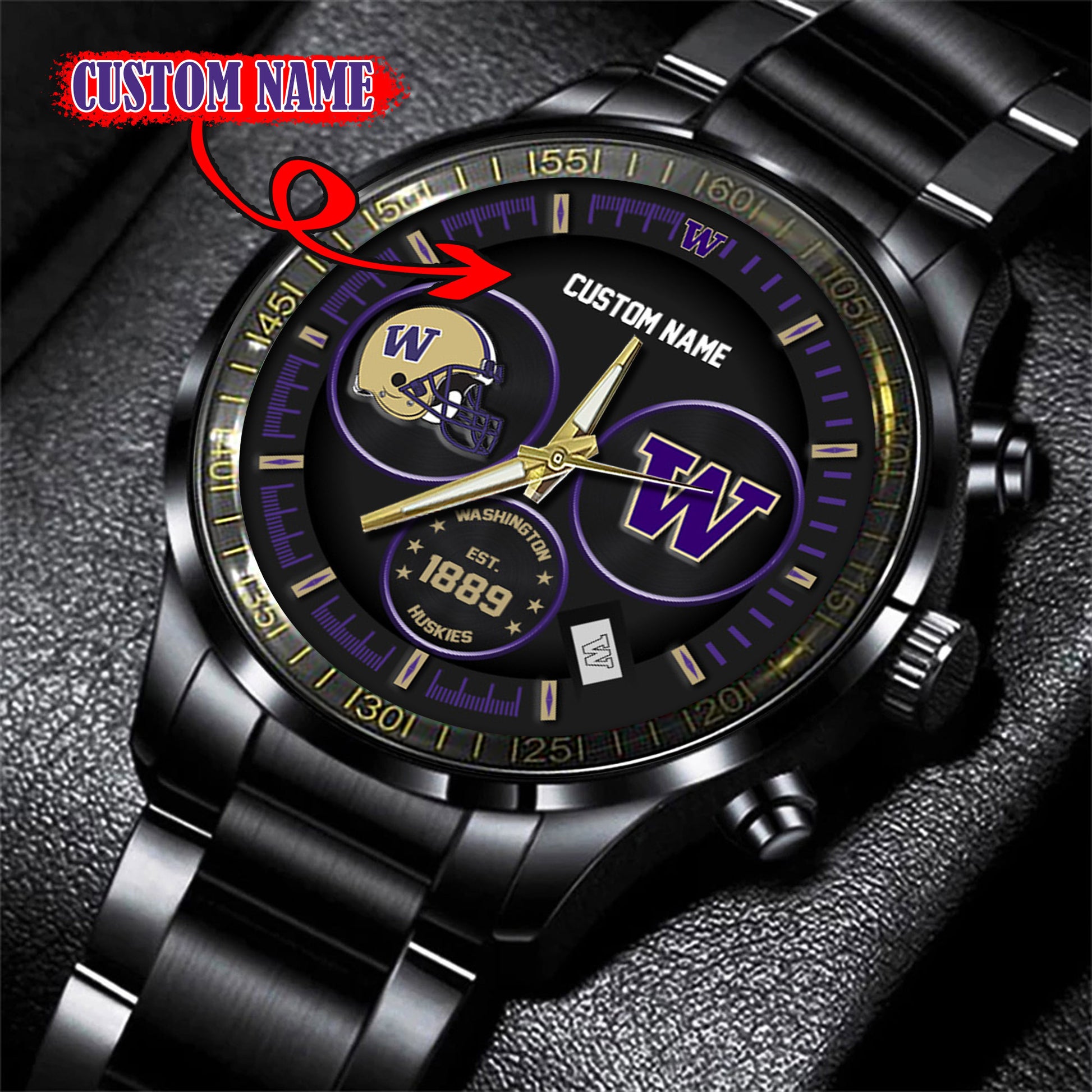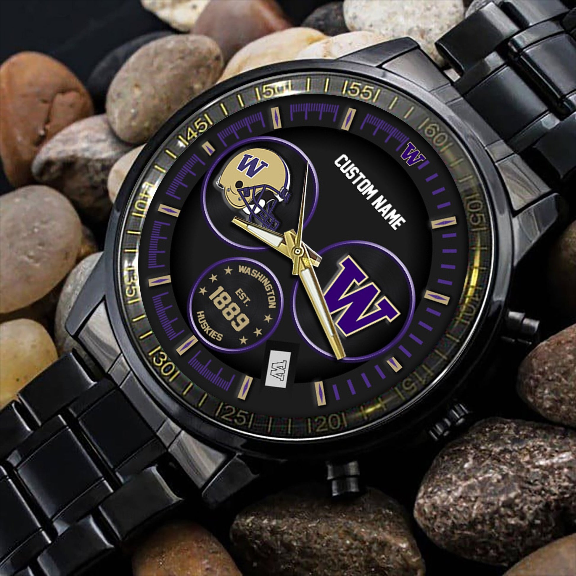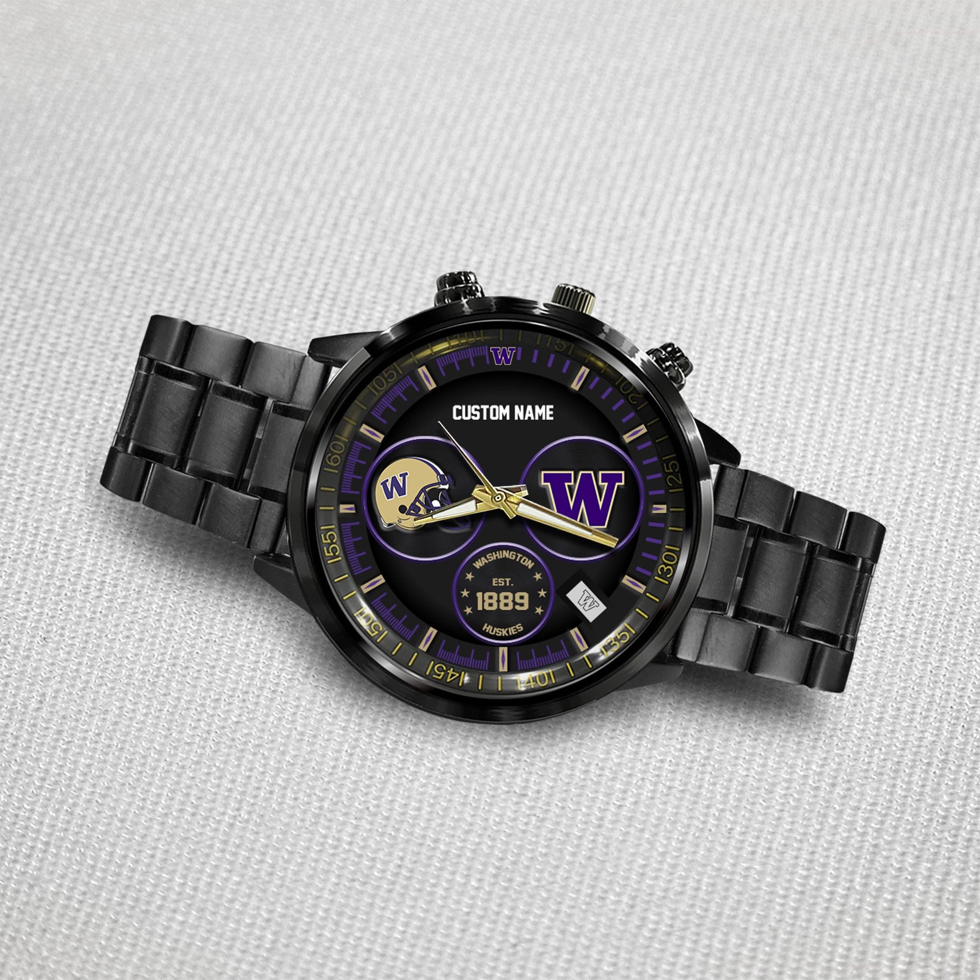 Washington Huskies Black Stainless Steel Watch - Custom Name 58437