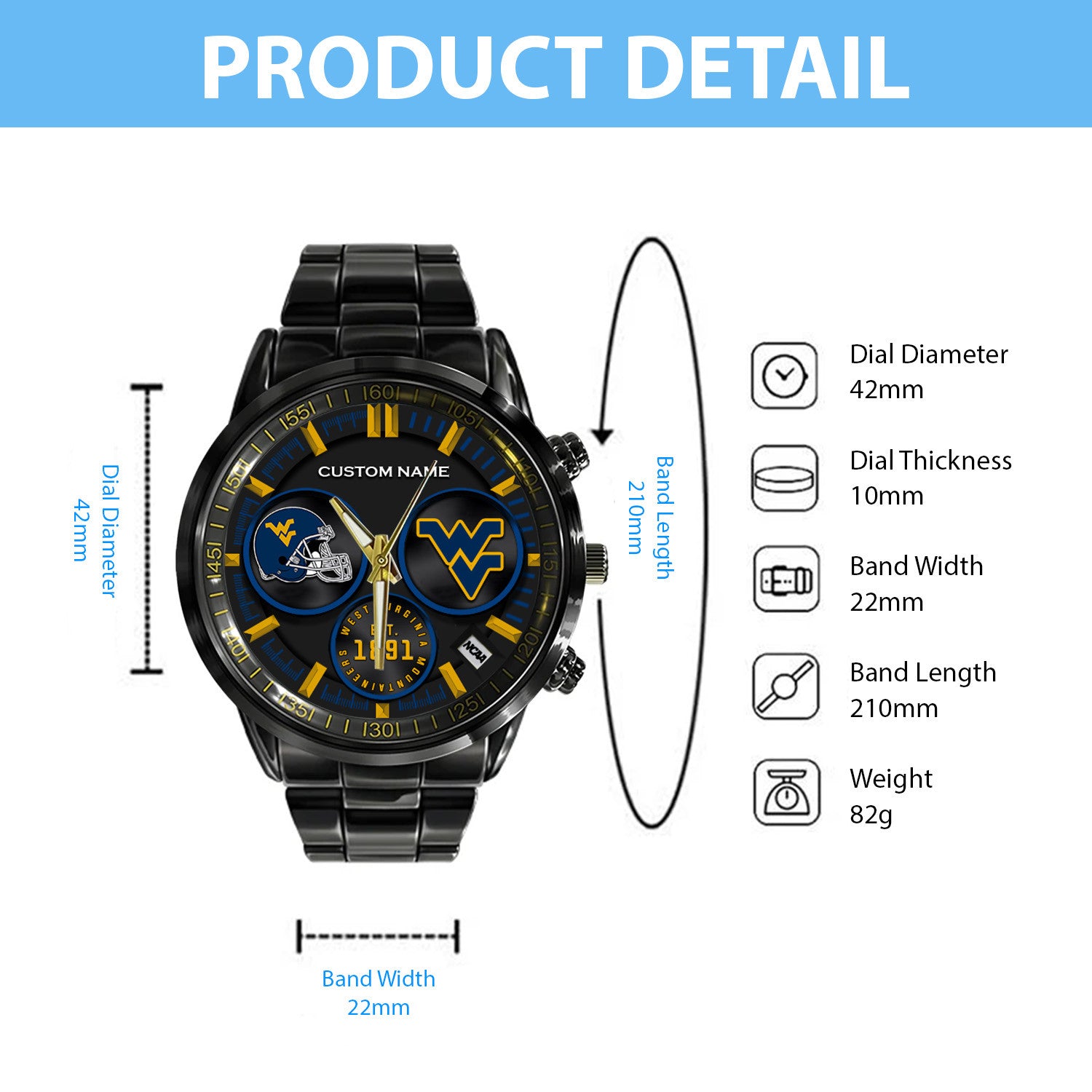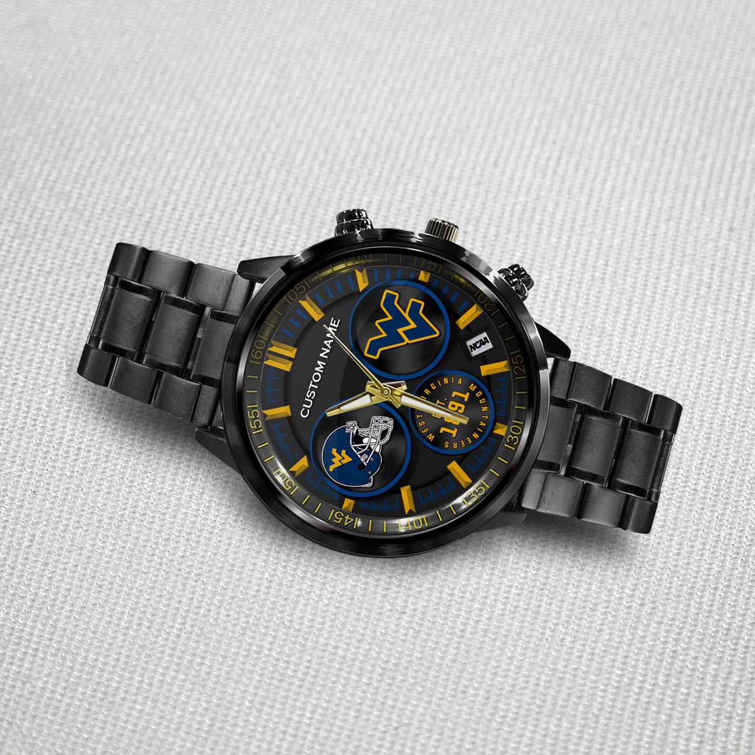 West Virginia Mountaineers - Black Stainless Steel Watch