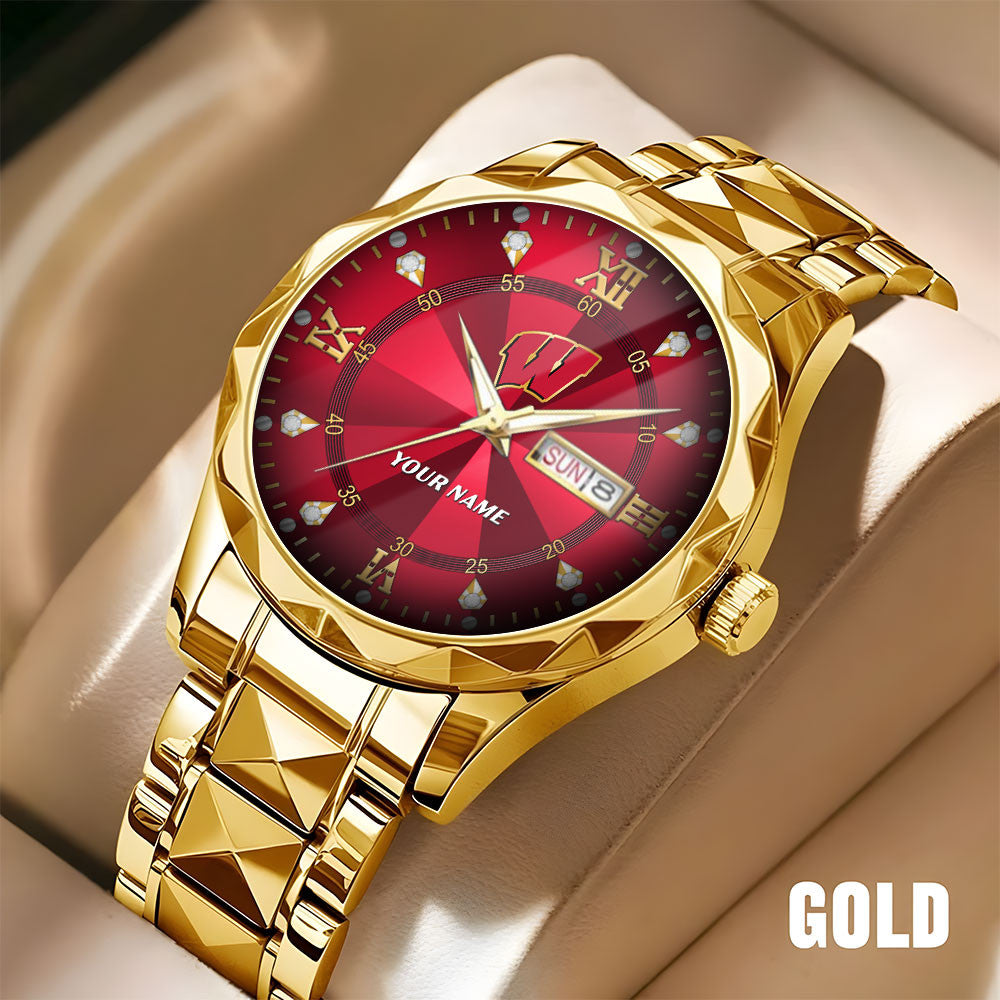 Wisconsin Badgers | Men Luxury Hand Watch Custom Any Name Gifts For Fan