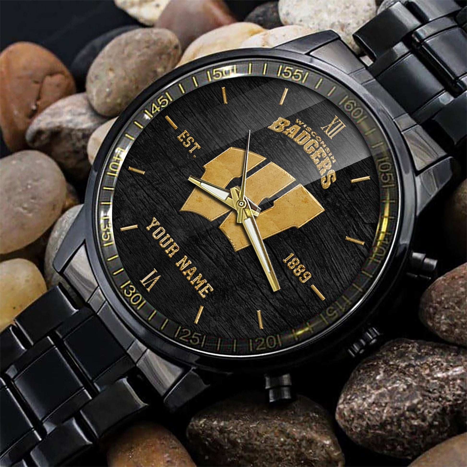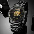 Wisconsin Badgers Black Fashion Watch Custom Your Name And Year, Sport Watch, Sport Gifts For Football Fans ETRG