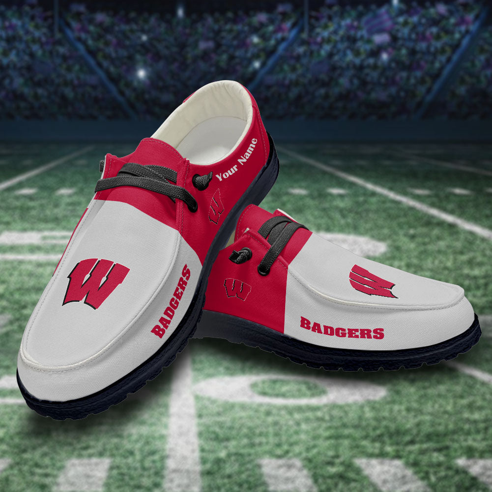 Wisconsin Badgers Hey Dude Shoes, NCAA Shoes – Custom name - Ingenious Gifts Your Whole Fami