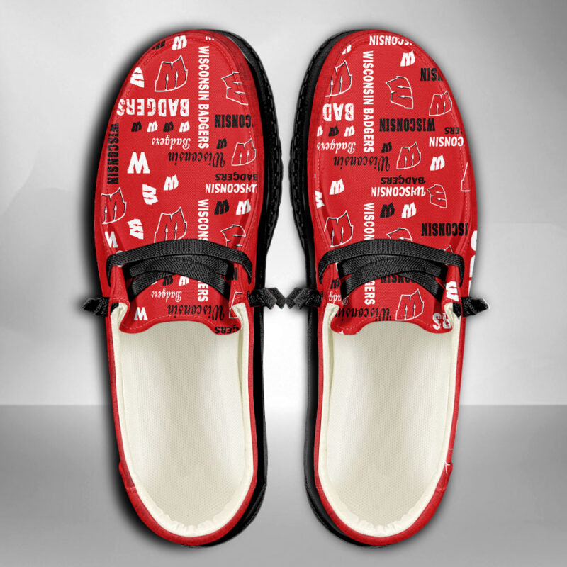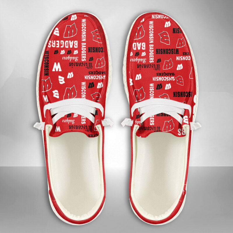 Wisconsin Badgers Hey Dude Shoes, NCAA Shoes -NCAA Pattern For All Teams Custom Name Shoes - Ingenious Gifts Your Whole Family