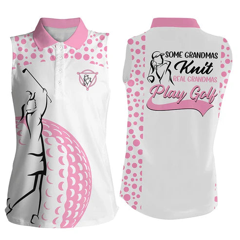 Women Sleeveless Polo Shirt Grandma Knit Real Grandmas Play Golf, Mothers Day Golf Gift For Grandma, Women Golf Shirts