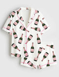 Women's Champagne Bottle Long Sleeve Satin Pajama Set